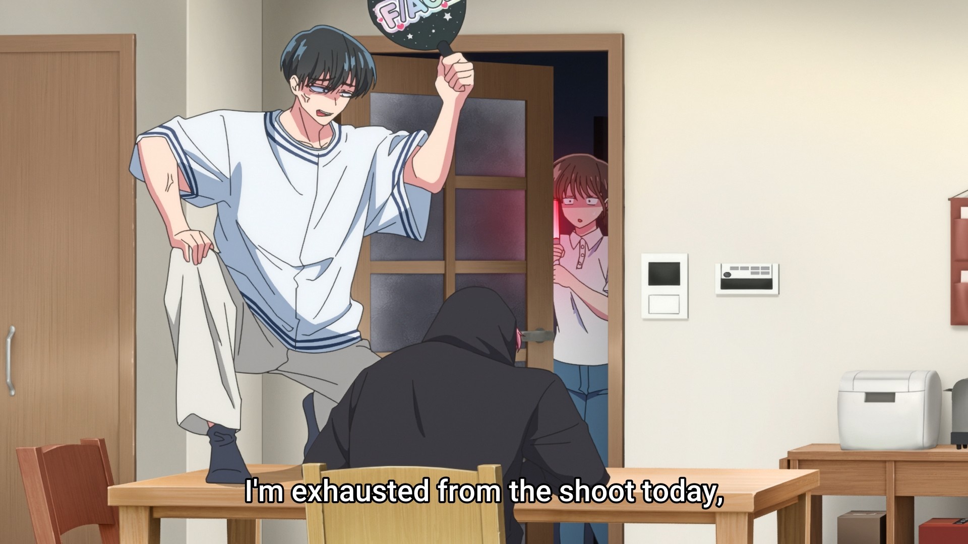 Ouri then literally kicks the door down, so he’s asking for it. Second chance to beat him up! Do it! C’mon, he’s manhandling your Tamon! But again, nothing happens. Their… manager? Handler? Well, that guy then shows up and makes Tamon and Ouri work together on a script. Afterwards, Utage has one more confrontation with the asshole in the elevator, but she only gives him a few stern words. Unsurprisingly, they’re nowhere near enough to correct Ouri’s abhorrent behavior. In fact, Utage seems more outraged by the fact that they’re looking to choose a new center for F/ACE’s next project. This is so pathetic. This is why jerkasses like Ouri continue to to be jerkasses, because who’s gonna hold them accountable? Nobody. Not their manager, and not even a supposedly devoted fan like Utage. We let spoiled assholes ruin the precious world we live in, and as a result, we deserve everything they do to us.