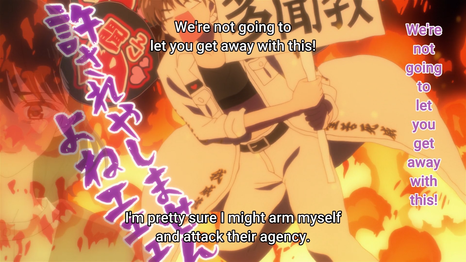 Once again, Ouri bursts into Tamon’s apartment just to be an asshole. This time, he even demands that Utage switch her allegiance over to him if he becomes the true center of F/ACE. This is gross, because he obviously doesn’t actually want her for her; he just wants to steal her away from Tamon. But people love their NTR. This is anecdotal, but I remember a vtuber being surprised that overseas fans didn’t like NTR as much as Japanese fans.