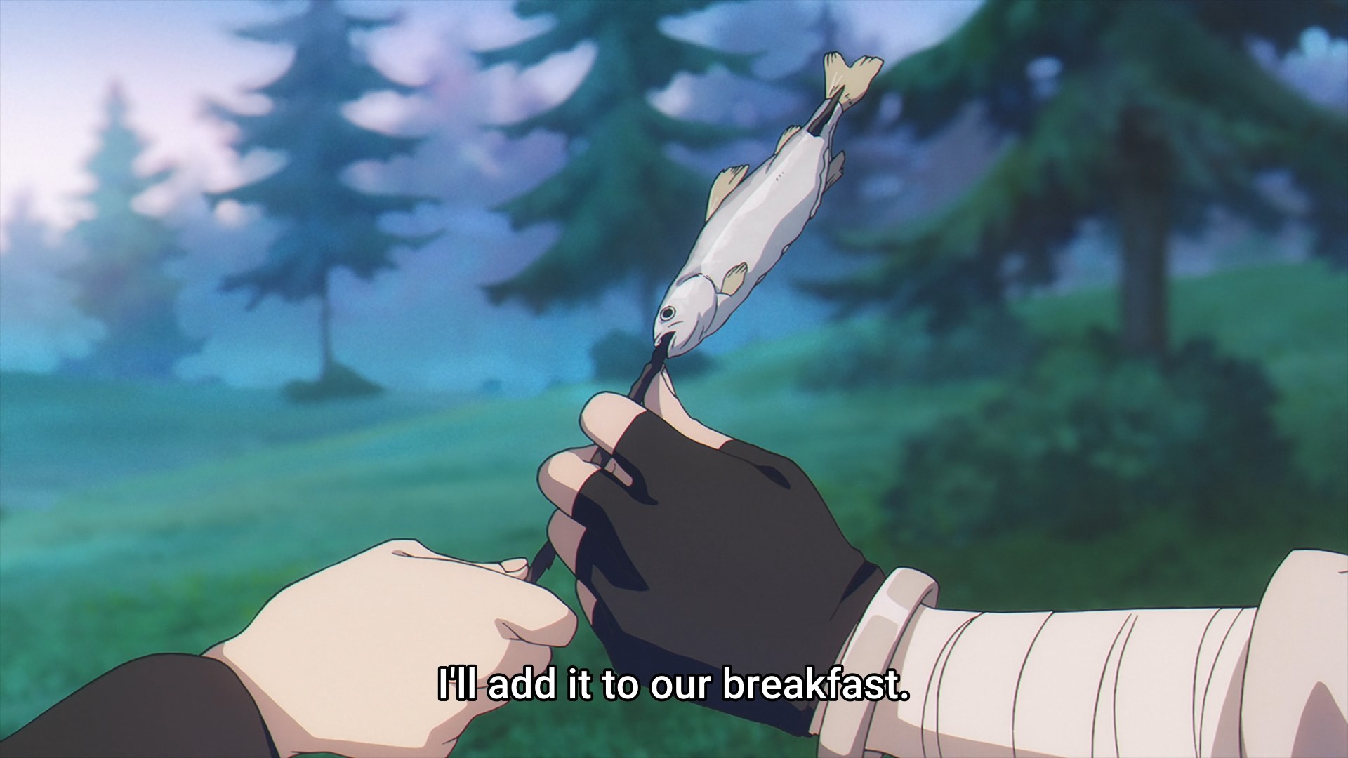 Eventually, the three of them emerge from the cave system unscathed. After a quick stop to rest and sup, they’re back on their journey. An unfortunate but ultimately harmless incident, however, has the the elf musing aloud, “Are things a bit awkward right now?” Frieren once again jumps from thought to thought. One moment, she’s wondering whether or not Fern and Stark are a good match, maybe reflecting a but on herself and Himmel. In another moment, she tells Stark to voice his displeasure if he has any since she feels as though she strong-armed him into the party. At first glance, it’s a bit strange to be saying this now. They’ve been journeying together for how long now? Over a year? Why didn’t she ask him this earlier? But the show also just reminded us that Frieren can have a tough time reading the room, so her trying to understand his feelings is a sign that she’s made considerable progress.