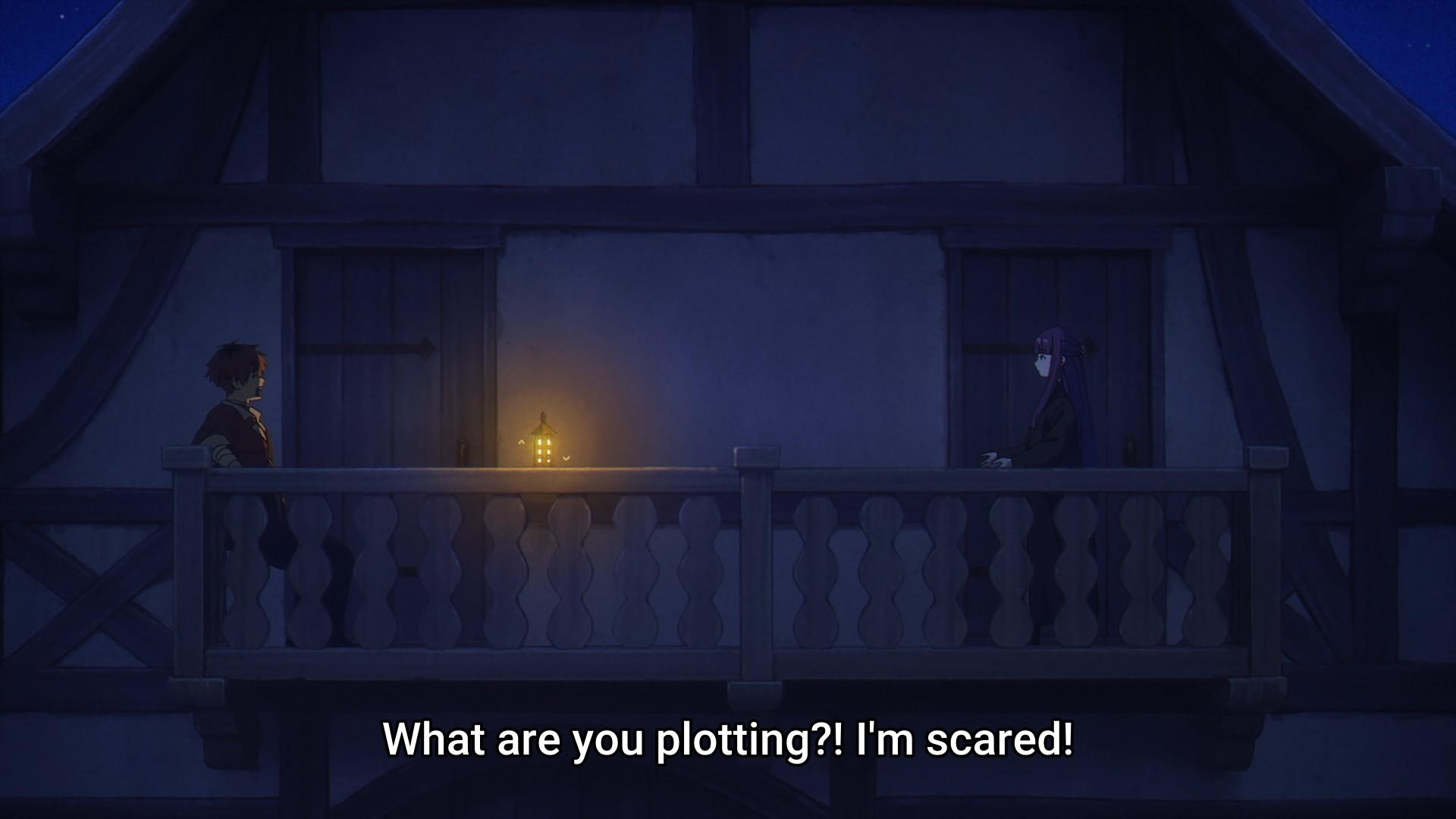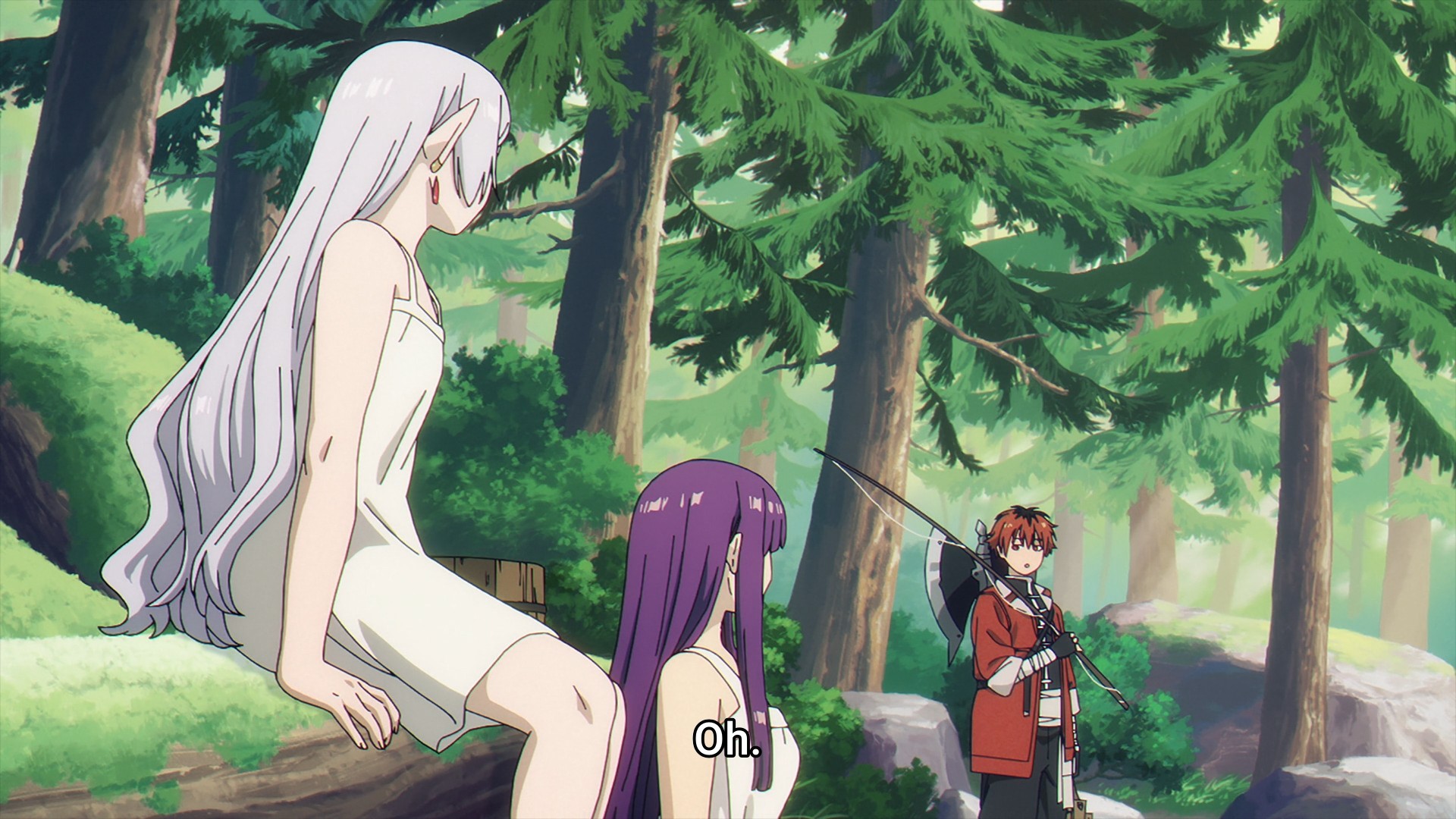 Nevertheless, this talk somehow segues into an offer Wirbel had made to Stark. Before Stark can reassure his party — unlike Frieren, he gets interrupted a lot in this episode for some odd reason — the trio comes across an inn on the road, and who should find there but yet another trio of familiar faces. What a coincidence, right? And lo and behold, Wirbel had asked Stark to accompany him to the frontlines where they need tough warriors in their countless skirmishes against demonkind. In other words, meat shields. Stark already turned Wirbel down before, so he doesn’t hesitate to turn him down again. After all, he’s a coward, isn’t he? I don’t think he would want to be fighting demons on the the regular. But hey, I’m not shaming him, because I wouldn’t want to be fighting anyone period. Not only that, c’mon, there’s no way Stark would ditch Fern and Frieren. I put Fern first deliberately. He might be dense, but he obviously likes her. He might not be able to put his feelings into words, but he’s not abandoning her.