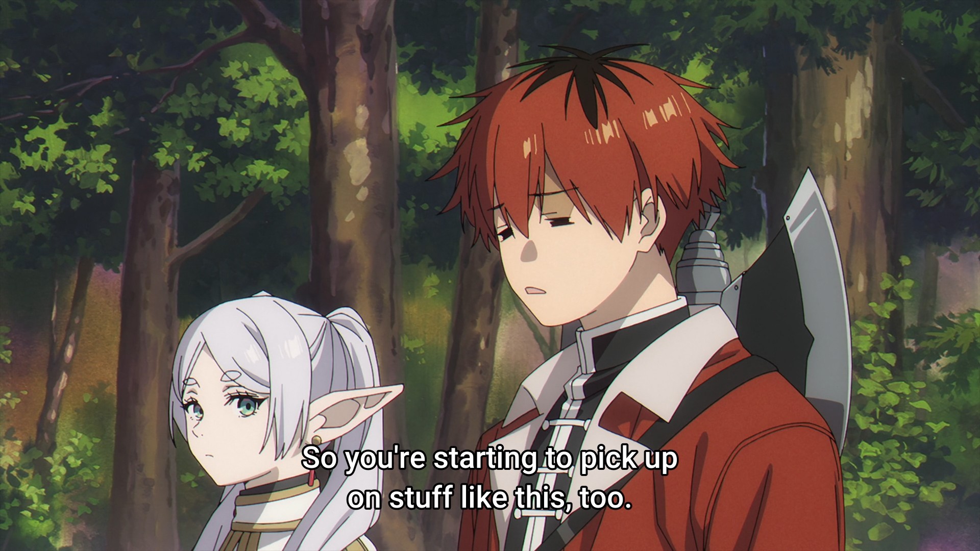 - Watching Frieren and Fern have a one-on-one while bathing, I thought to myself, Please don’t have Stark accidentally walk in on them. It’s just such a low-hanging fruit. Sure enough, Stark accidentally walks in on them. Well, at least the girls aren’t naked, I suppose. Still, this is probably the only thing I dislike about this episode.