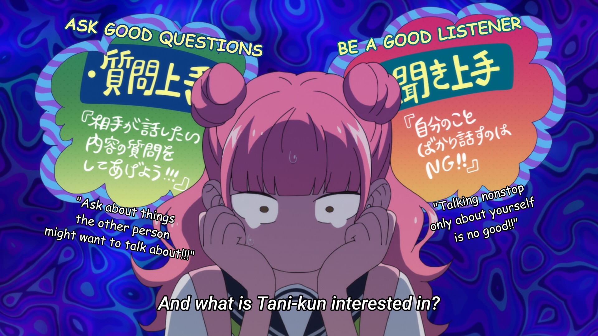 Speaking of which, I don’t think I’d enjoy the movie these kids are watching. It’s really getting to Suzuki, though. Afterwards, Tani wonders if Suzuki actually watched the movie, because she doesn’t remember details like the names of the characters and the location they’re in. But unlike him, she actually notices details that are arguably way more meaningful. I think she watched it “better” than he did. Still, this goes to show that they’re “polar opposites,” and as long as he keeps an open mind to her perspective, he can continue growing as a person.