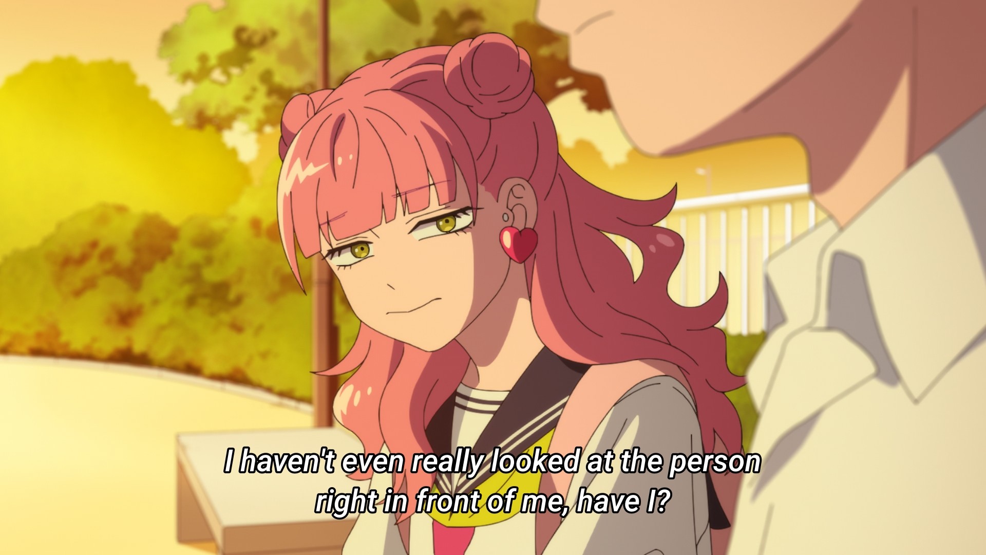 - Okay, this is a bit early, but whatever. She did just say she wanted to love the person she loves so moments ago. Some kids jump the gun. I’m glad we’re not dragging things out, but we also don’t need to rush every storyline. Just get to know each other first, y’know. Like you don’t even know what toppings she likes on her burger yet.
