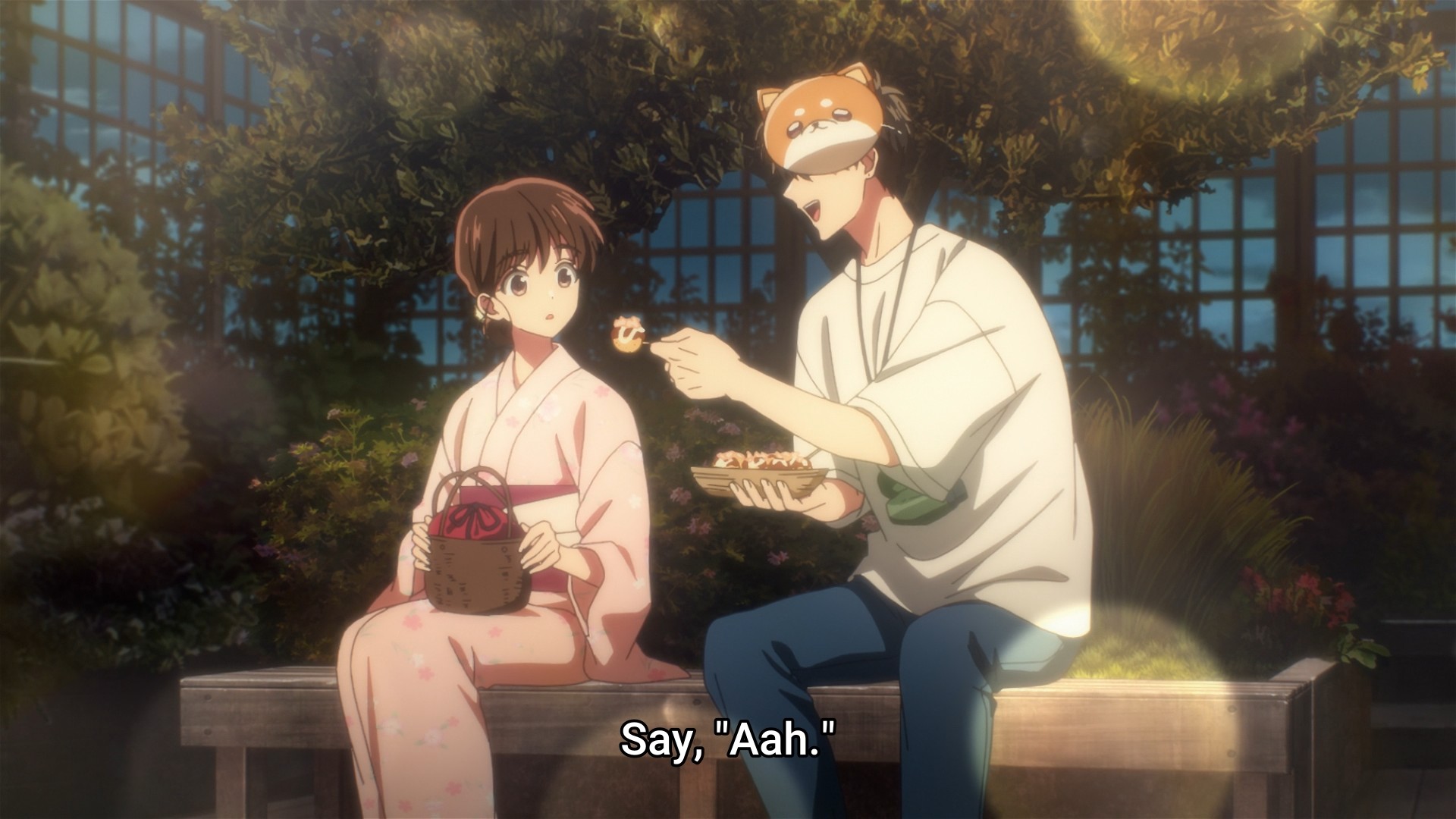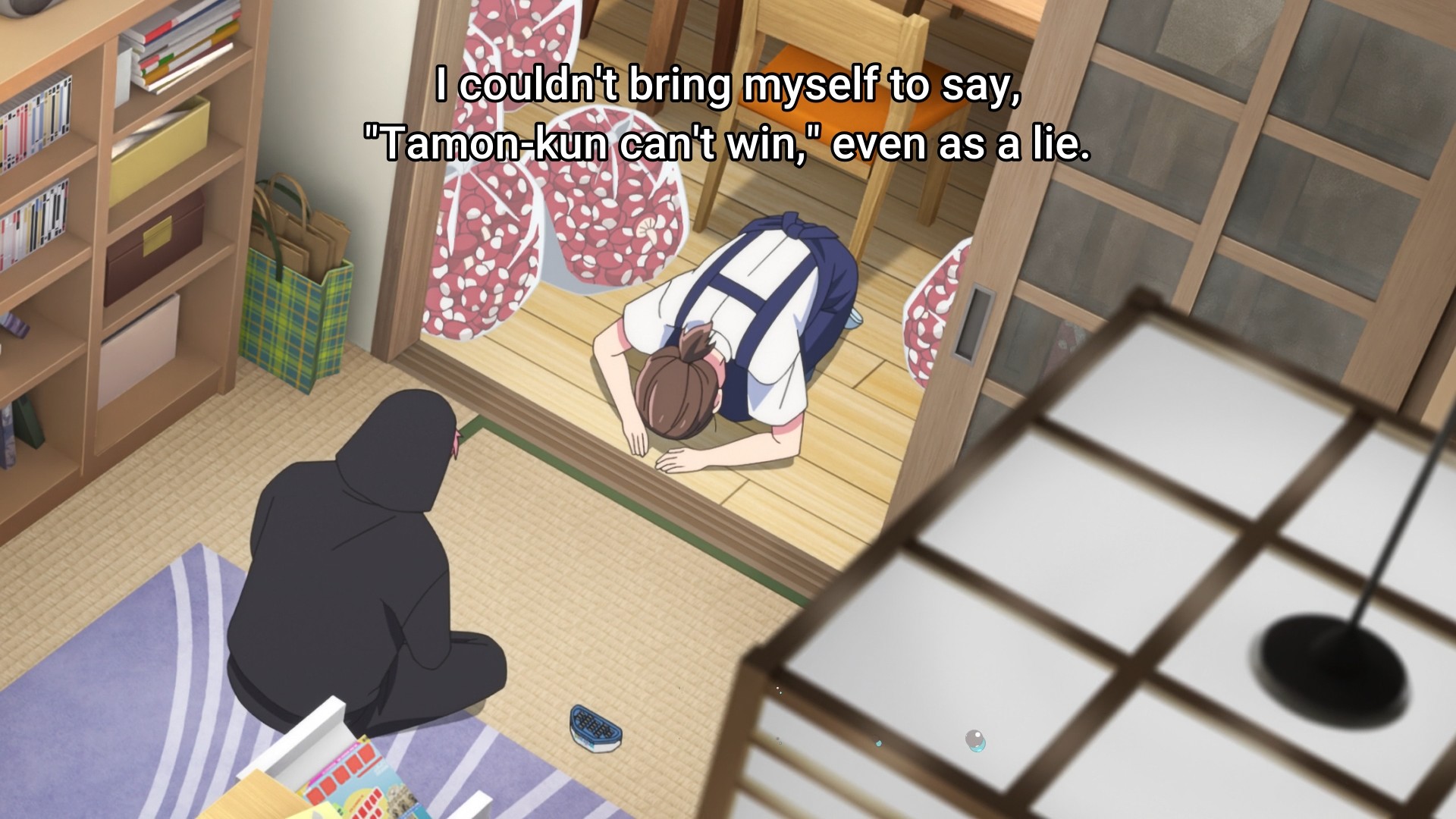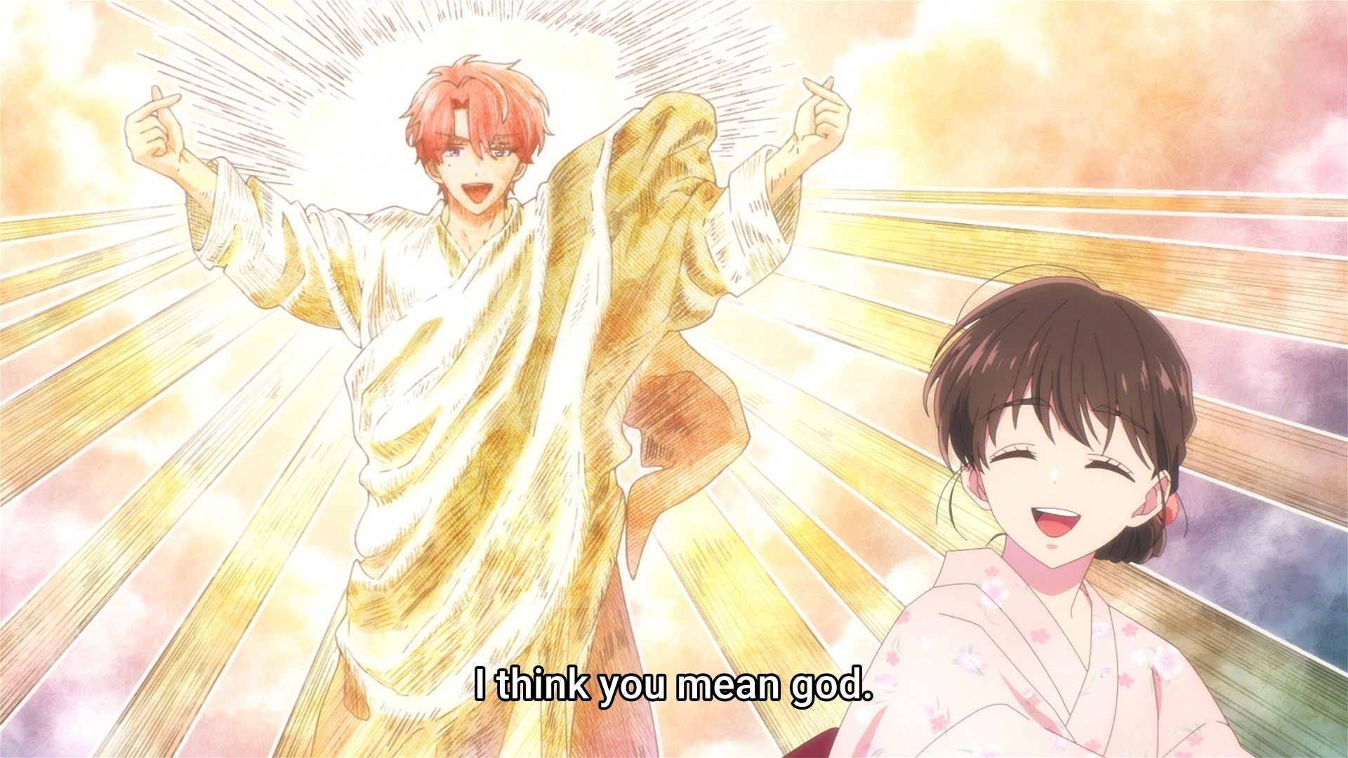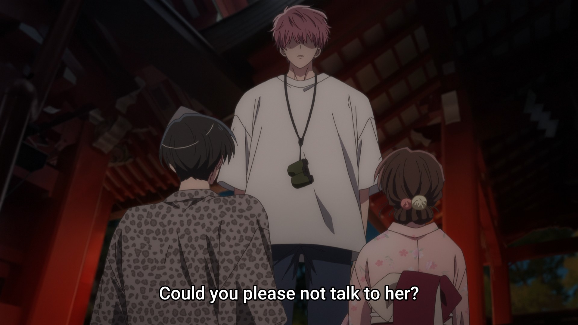 When the fireworks go off, Tamon can’t help but stare at Utage instead. It’s a common trope in romantic anime. You find the person even more beautiful than the fireworks, so you look at them the entire time. You see it in Kaguya: Love is War, you see it in My Dress-Up Darling. It’s almost like Tamon’s falling for Utage right there and then. But she immediately shoots him down, because y’know, her boundaries as a fan. Again, we’re only on episode four. We’re not rushing this. We’re gonna drag this baby out, woo! But also again, Utage is so exhausting.