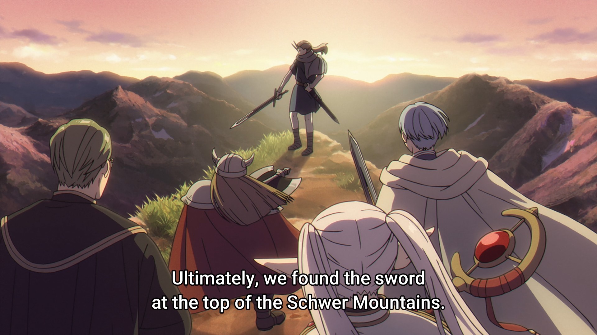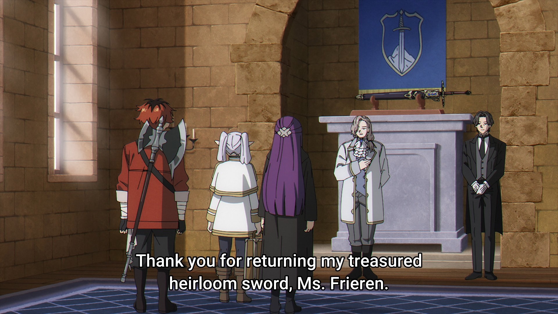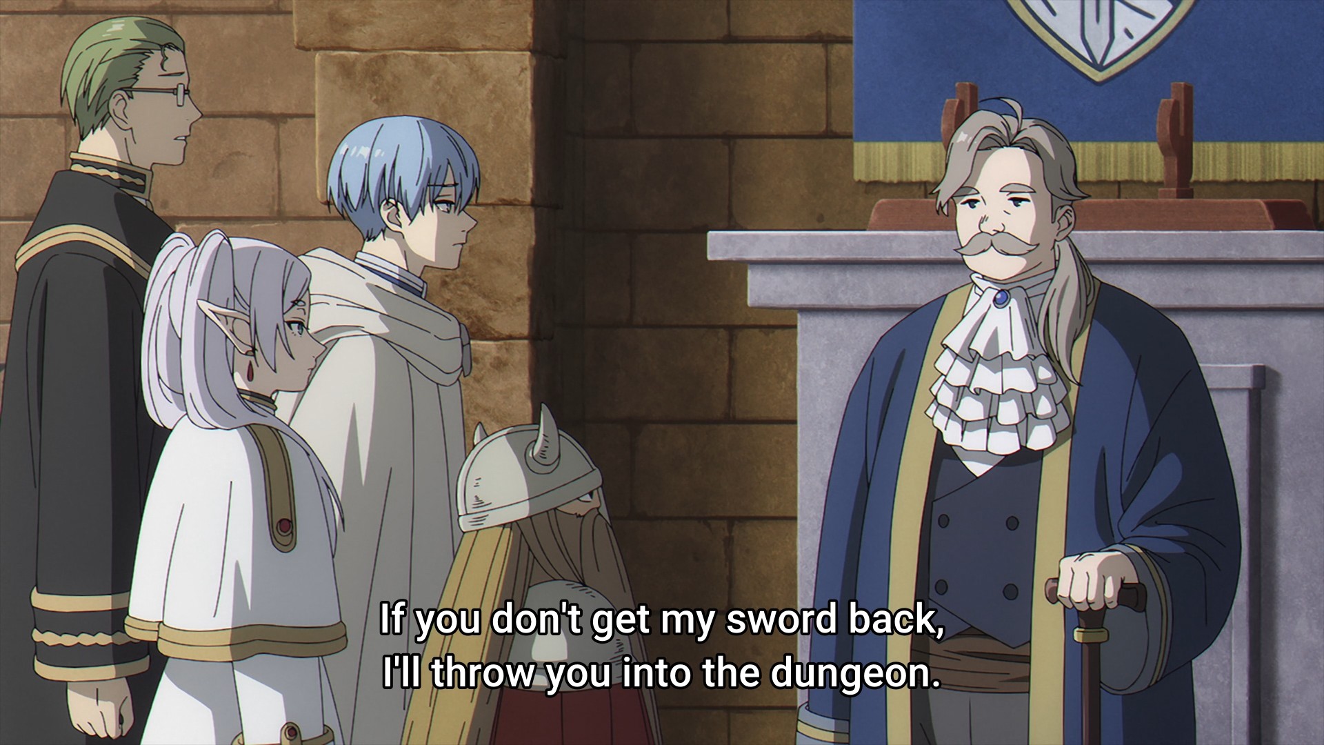 - If the sword keeps getting stolen, why not get rid of it? Frieren argues that you can’t let it fall into the hands of a demon. She then waxes poetic about how protecting the sword is now a responsibility of the entire city. Uh, sure, but why not get rid rid of it? Y’know, destroy it. I guess we just have to assume that they can’t. There’s no Mount Doom to throw the sword into.