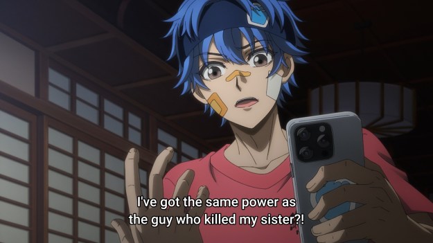 - Of course Enishiro sucks for ragebaiting (that’s the word I know). There are plenty of ways to make money, so why did he have to choose the one that made people miserable? But nobody even pities the fact that if he fails this test, he will probably die. Nobody pities the fact that he’s just been plucked from his everyday life while still grieving his sister’s death. There’s no humanity in this show. There’s no heart. There’s no one that I can point to and say, “Okay, this shit sucks balls, but at least I kinda like this character.” Even the teachers — the adults in the room — are just so blasé about the possibility of some kid dying. So I don’t respect the villain, because it’s just some boring-looking, blue-tinted kid. But I can’t even respect the good guys because they all fucking suck. They’re legitimately bad people.