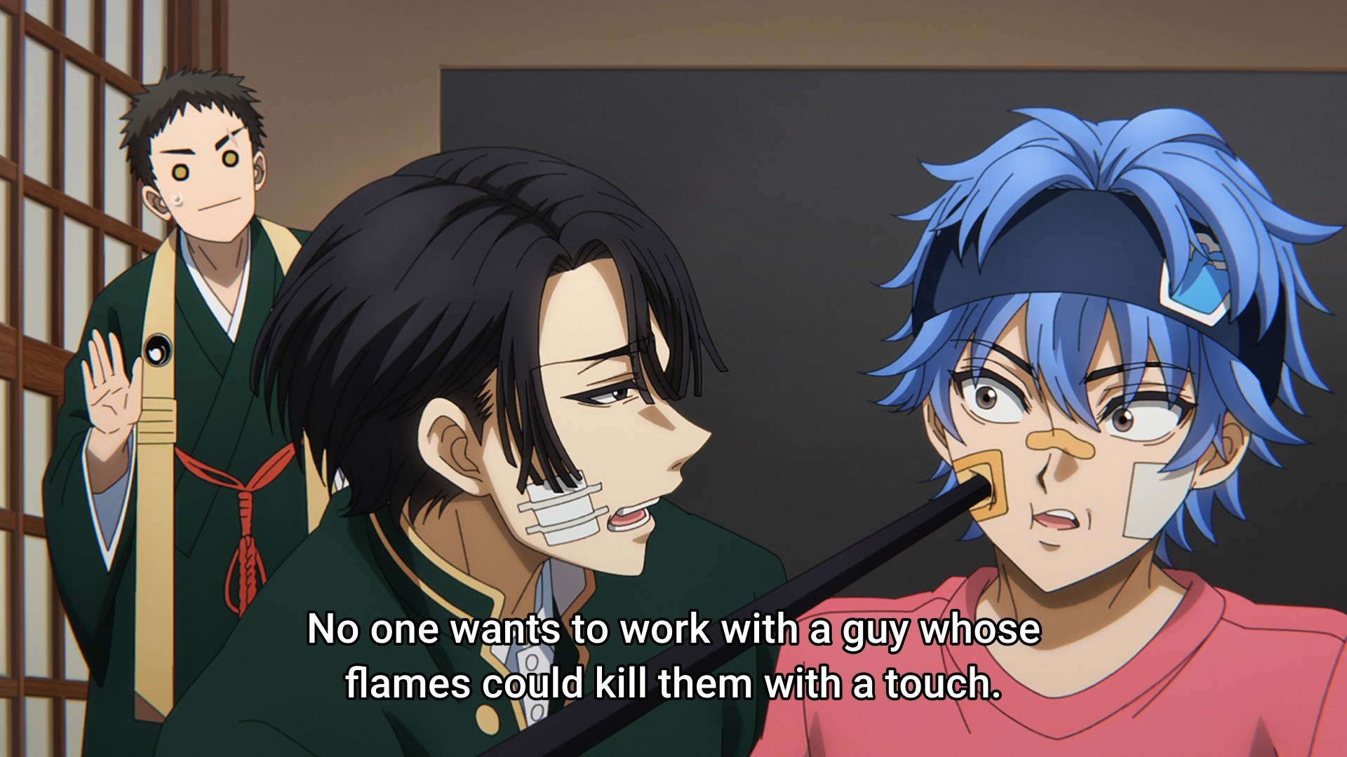 - According to Azaki, his teacher, a lot of people at this school already assume he’s working with “sad boy k” just because they share the same blue flame. Like with most enforcement orgs, the folks here are dumb as bricks.