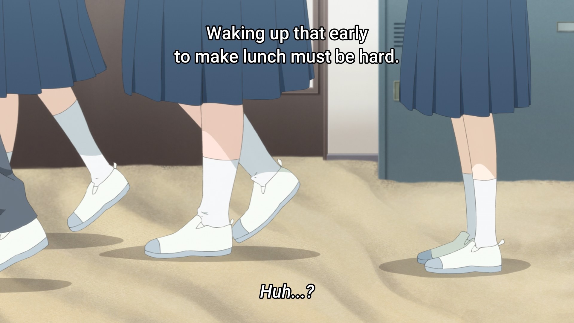 Even though Asa didn’t want anyone to know about her parents’ death at her middle school graduation, she immediately goes and tells her new high school friends about it. Apparently, she wanted to stand out, but she ironically just made herself feel isolated all over again. After all, most people can’t relate to her situation. All they can really say is, “Sounds like a movie plot.” Nevertheless, she tells Makio about it afterwards, expecting advice that would’ve come out of her own mother’s mouth. But Makio, stumped on what to say or how to react, simply tells the girl to go wash her hands so she can start eating. Sheesh. Whether or not Asa wants Makio to be her mom, every kid wants a mom. I can’t tell if Makio can see that, and is just refusing to even acknowledge it.