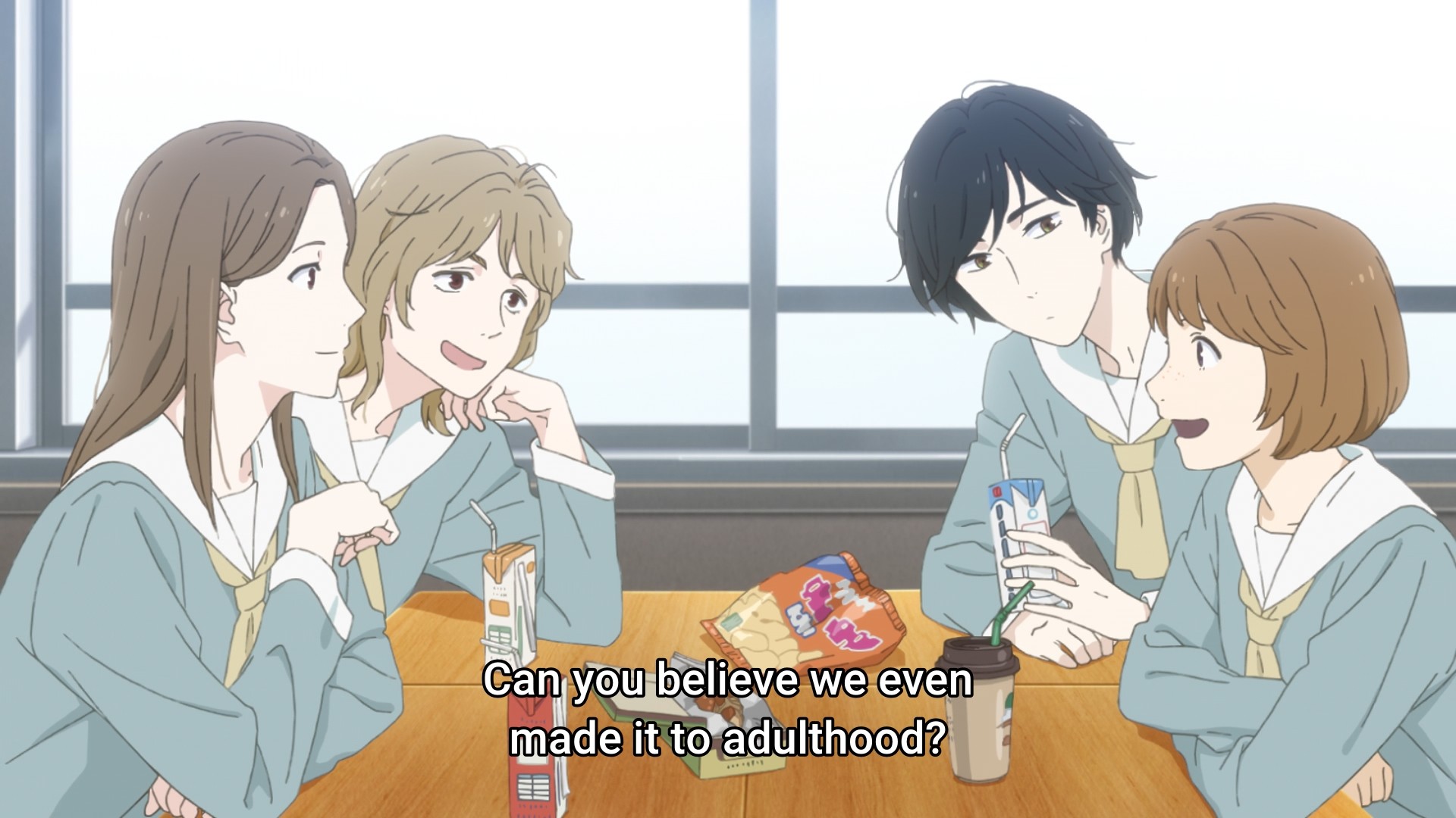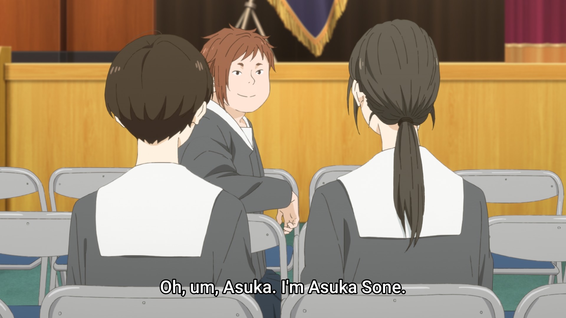 Even though Asa didn’t want anyone to know about her parents’ death at her middle school graduation, she immediately goes and tells her new high school friends about it. Apparently, she wanted to stand out, but she ironically just made herself feel isolated all over again. After all, most people can’t relate to her situation. All they can really say is, “Sounds like a movie plot.” Nevertheless, she tells Makio about it afterwards, expecting advice that would’ve come out of her own mother’s mouth. But Makio, stumped on what to say or how to react, simply tells the girl to go wash her hands so she can start eating. Sheesh. Whether or not Asa wants Makio to be her mom, every kid wants a mom. I can’t tell if Makio can see that, and is just refusing to even acknowledge it.
