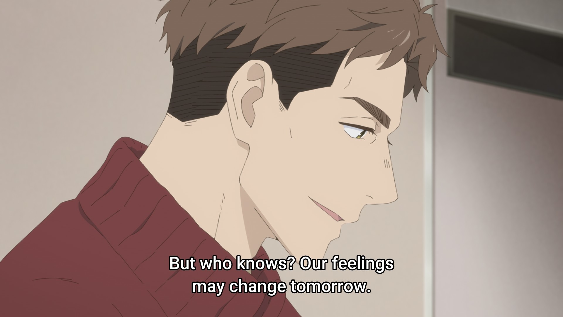 - Is Shingo holding out hope or what? Sounds like he still has lingering feelings for Makio. But unless they fix the problem that separated the two of them in the first place, I wouldn’t have too much hope for the second go-around.