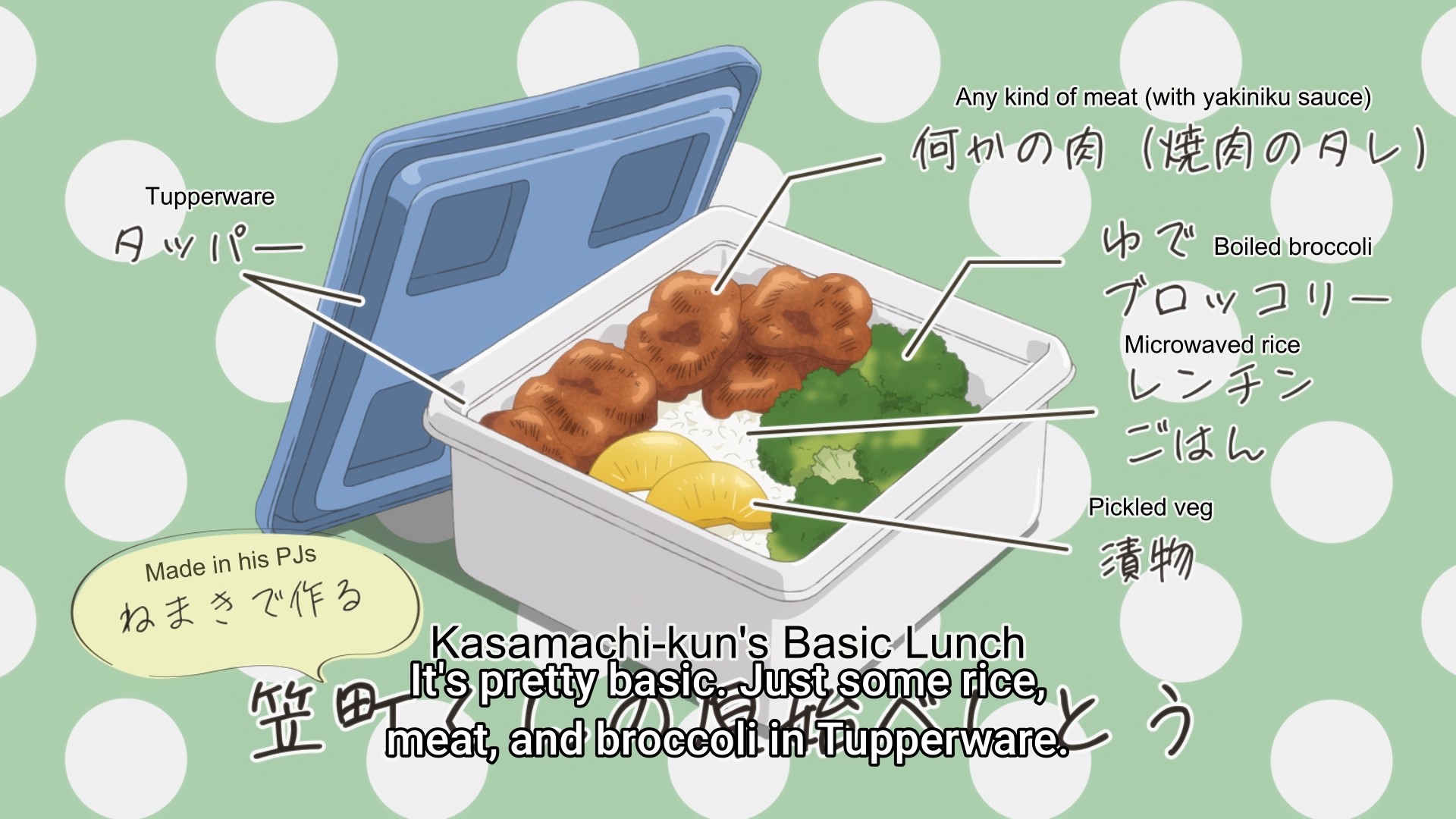 - I like how the speech bubble has to specify that Shingo meal-preps in his PJs. So do I. I’m not getting dressed to cook in my own home.