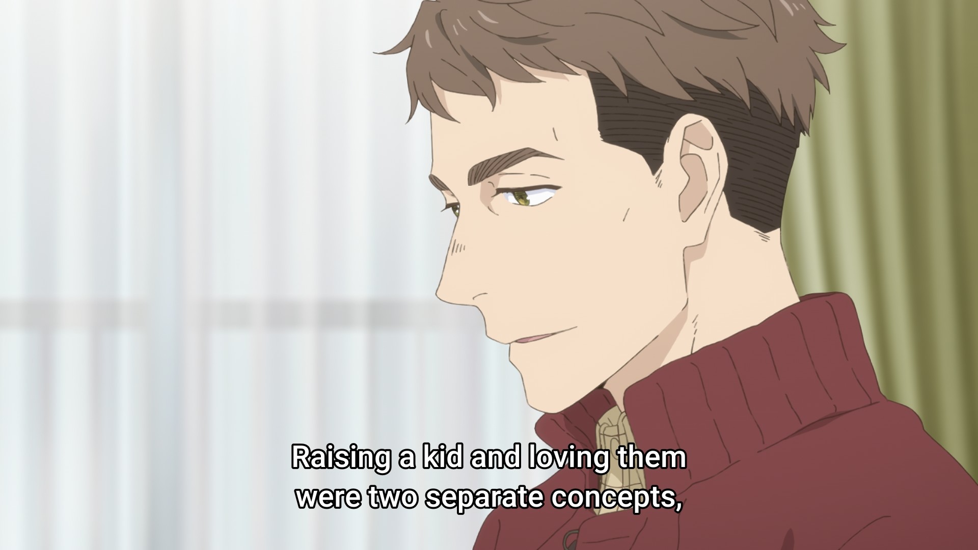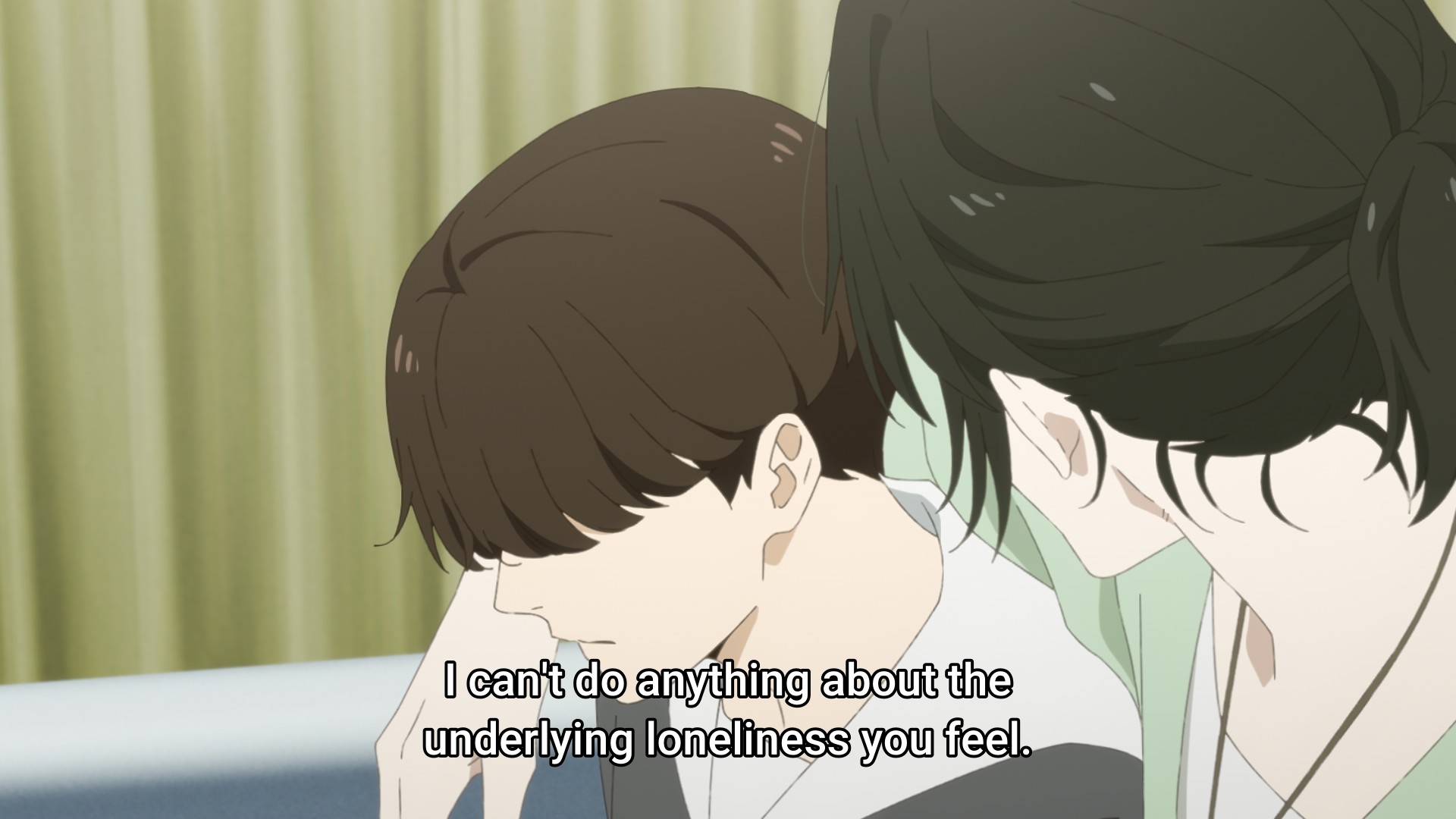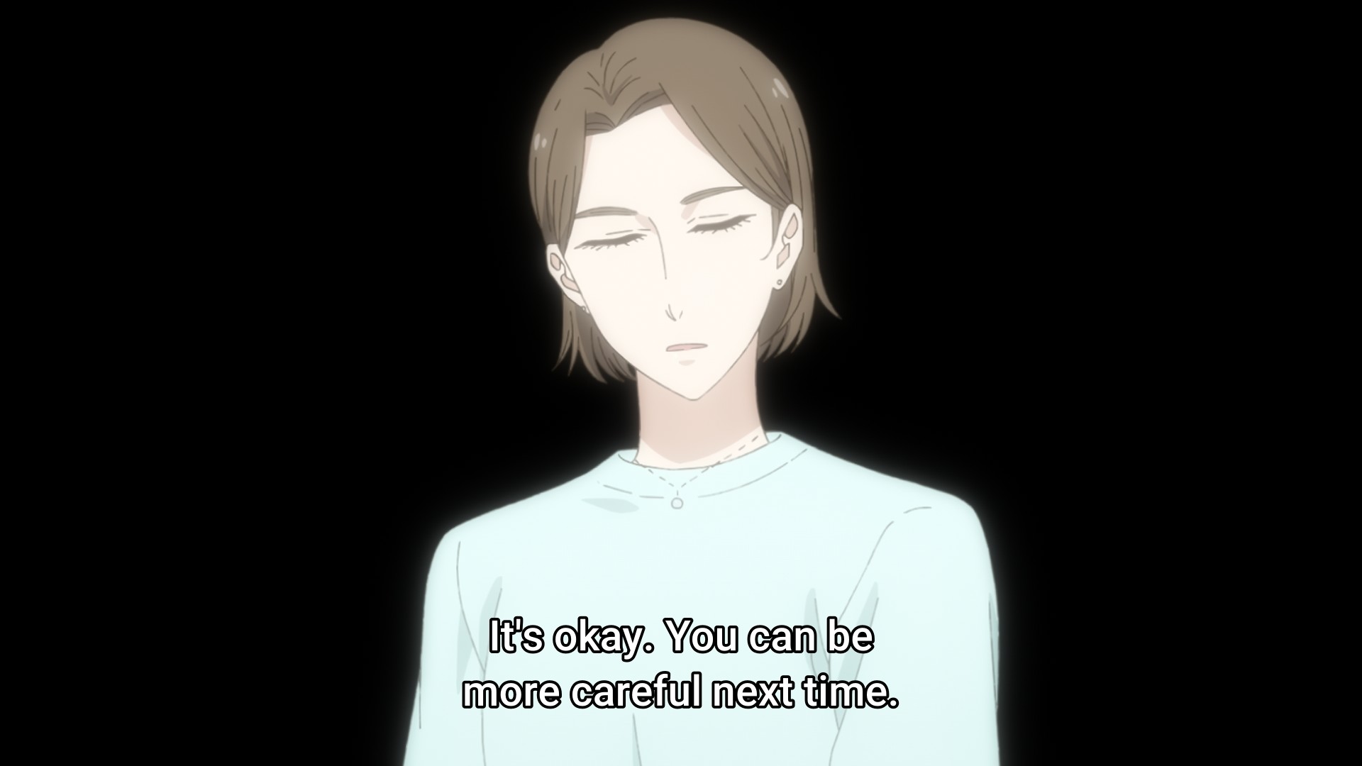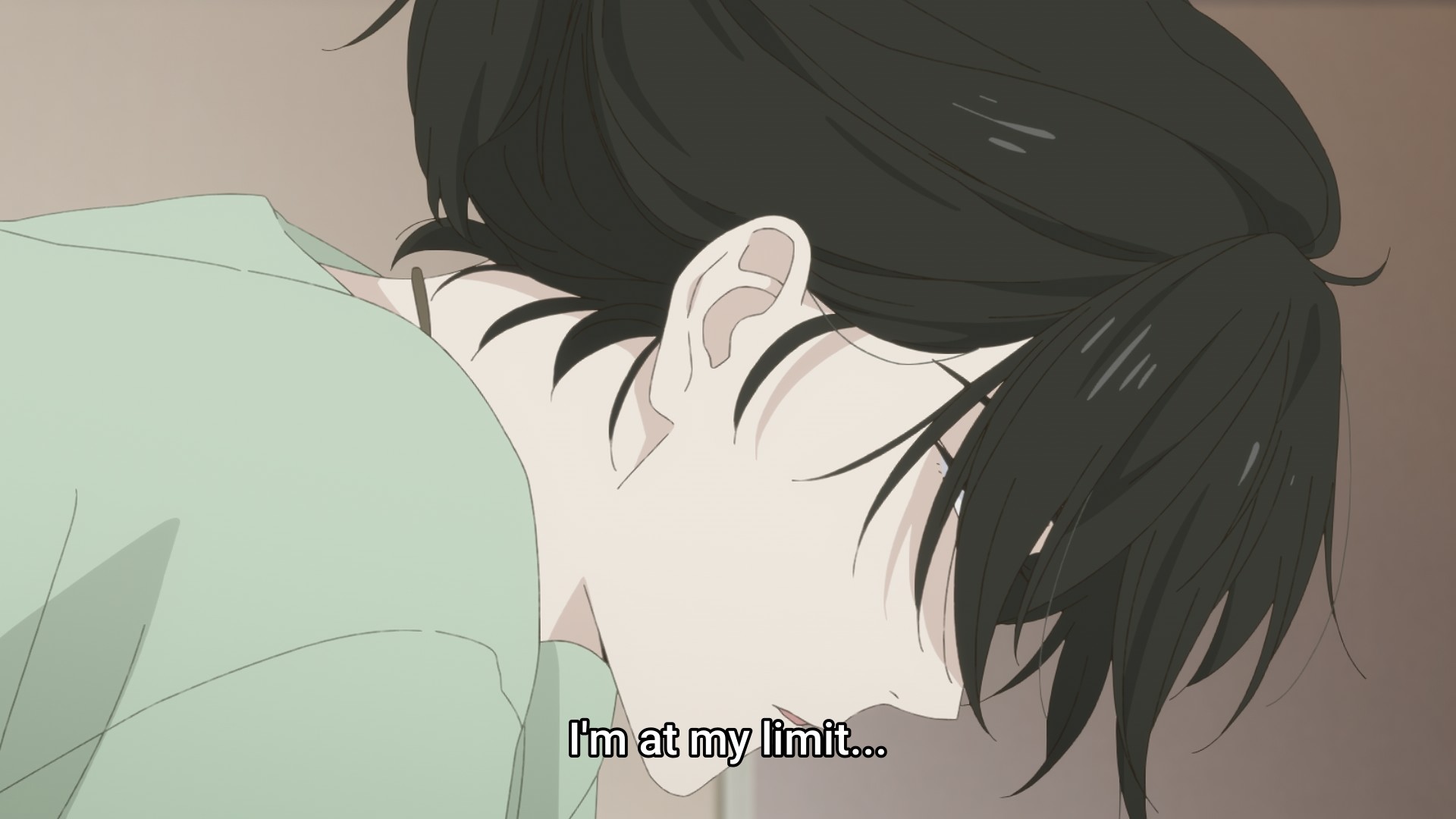 After this point, Makio isn’t even trying to hide her feelings anymore. When Asa finally invites Emiri over, Makio’s discomfort is in full display. The way she’s stooped over the sink, how her body tenses up, how she tells Emiri that she absolutely won’t even entertain the thought of being nice with the girl’s mother… man, I don’t know. It’s a bit pathetic. I just think an adult should be a little more composed than this. These are children you’re talking to. If you wanna be mad — if you’re frustrated about how suffocated you feel — then go yell at the rest of the family that has been a complete no-show since the funeral. Unfortunately, Asa is left to eat her dinner alone. She’s left to process her feelings alone. The girl is so mentally exhausted that she randomly passes out in the middle of the day. She needs someone to talk to. Only when she starts outwardly sobbing — ’cause let’s face it, she’s been sobbing internally — does Makio finally step up to the plate. I mean, great, it’s progress, but it shouldn’t have gotten this far. But better them talking now than never, I suppose.