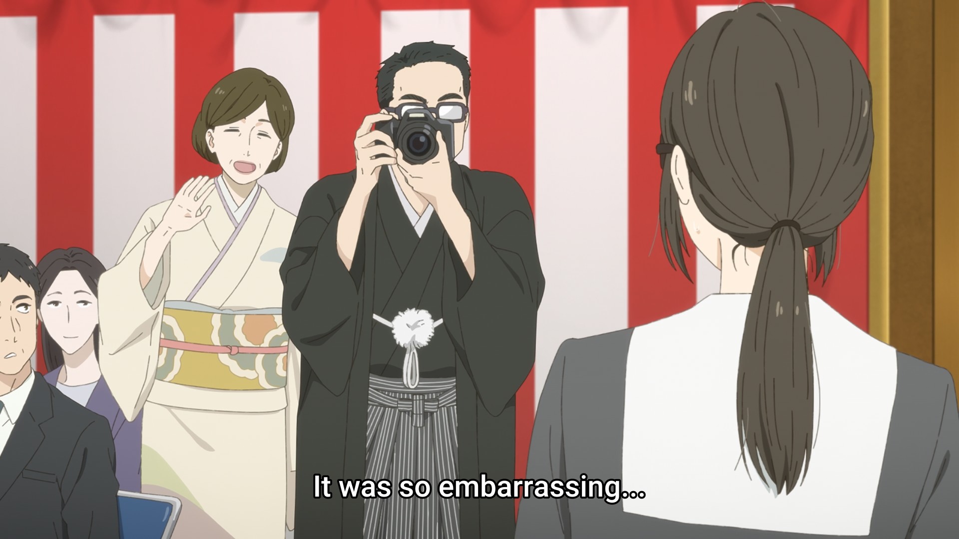 At the same time, I guess we need to be a little more charitable to Makio. After all, she’s her own person. Even if she were to take on mom responsibilities in the future, she’s not her sister so she would never give Asa the same advice or lectures. Asa should expect Makio to do things like attend an entrance ceremony, but she shouldn’t expect Makio to have the same reactions as her mother.