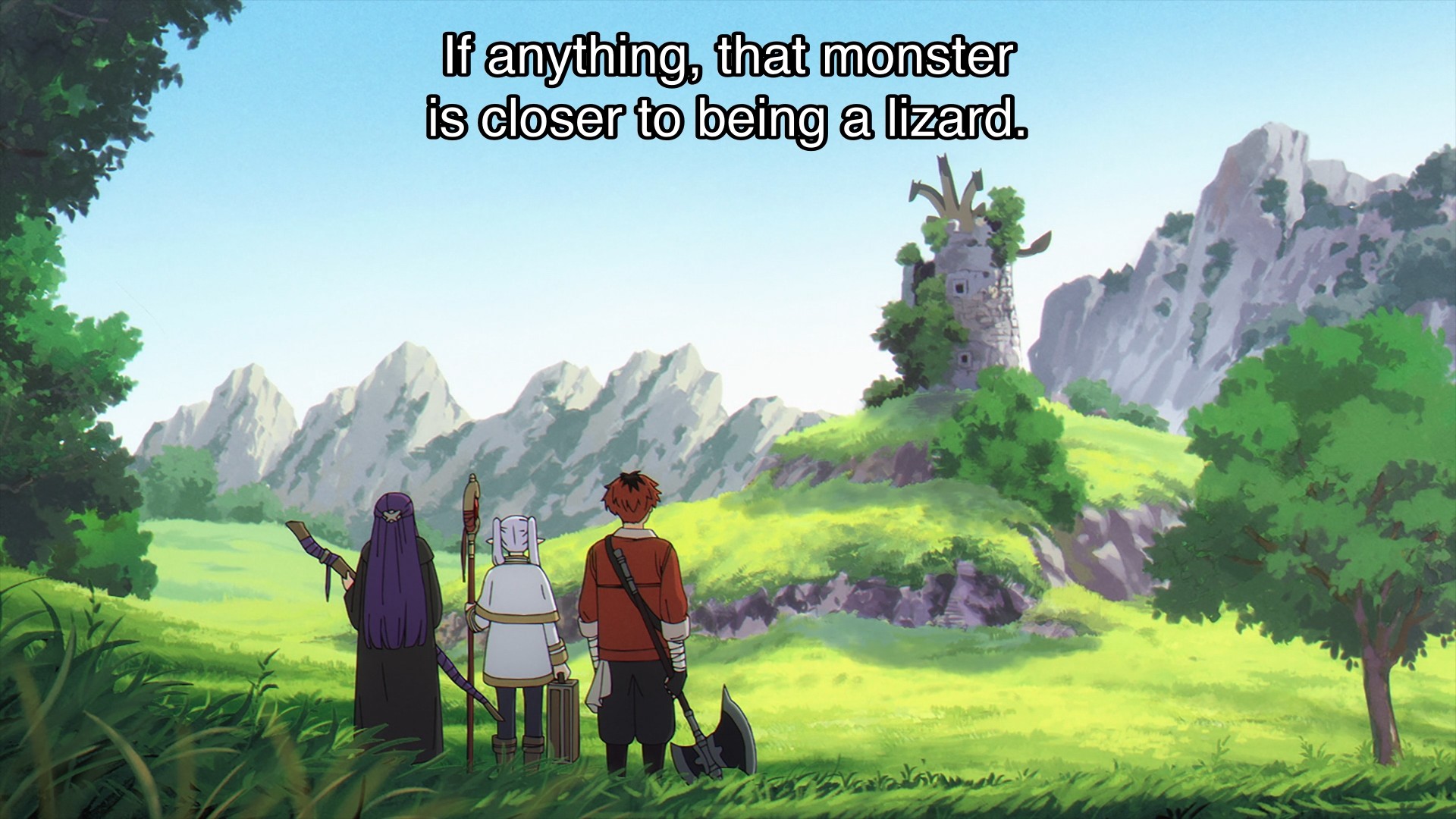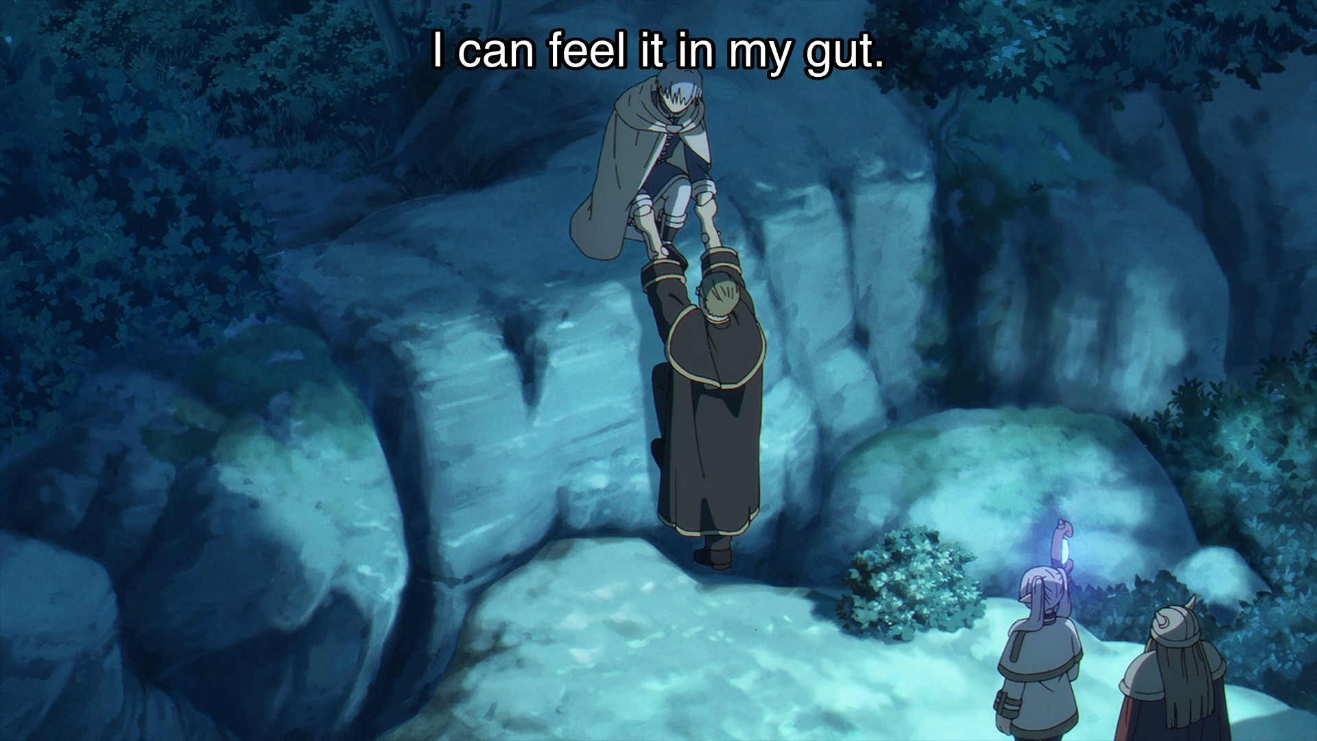 But the flip side is true as well. Even Fern has to ask Frieren what she should do about her upcoming date with Stark. These kids have no one else to turn to, so they keep going to the one elf who doesn’t really understand relationships. Frieren claims, however, that she has been on a date. Spoiler: she hasn’t; she was just doing a quest alone with Himmel. Nevertheless, she goes on to elaborate, “[W]hen two close friends of opposing sex go out with each other and nobody else, that’s a date.” This kinda implies that men and women can’t hang out one-on-one without strings attached. Nah. Hard disagree. By that logic, she just went on a date with Stark. But Frieren doesn’t actually know anything. This is just what her master told her. And that’s the recurring theme in this week’s episode. Nobody knows if there’s a hot spring in them mountains, just what their grandpa used to tell them. No one in this party knows what Fern really likes, just what Heiter used to tell Frieren. And Frieren certainly doesn’t know what a date is, just what her master told her. Nobody actually knows anything. They just know what they’ve been told. But we make it work.