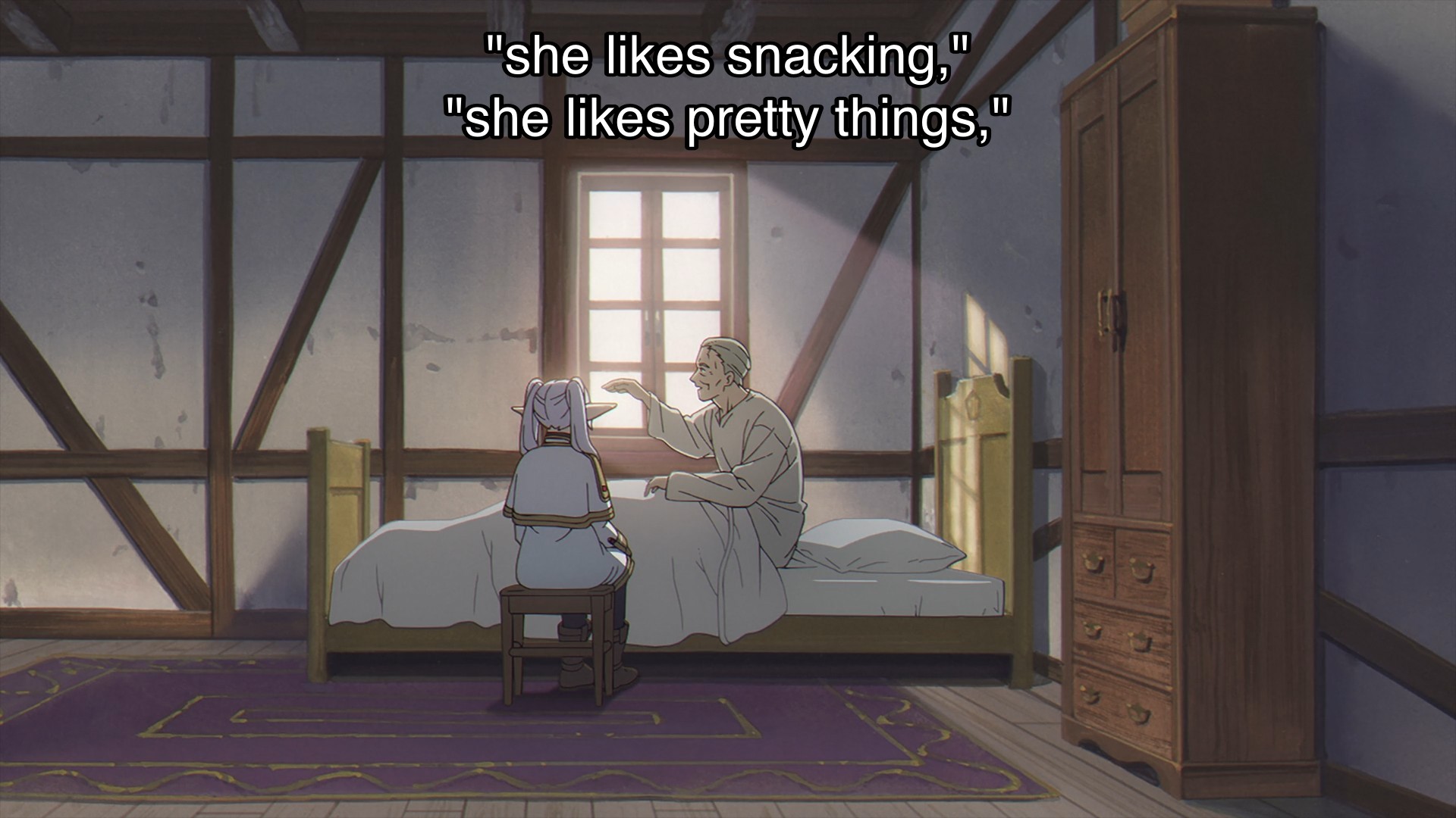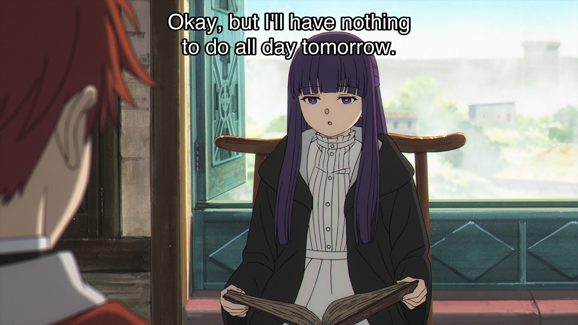 - Even time is warped for Frieren’s tantrums. Three whole days? Is she keeping herself hydrated so she can keep crying? How is her throat not completely obliterated from all the wailing?