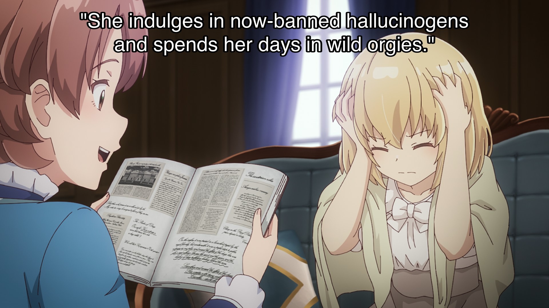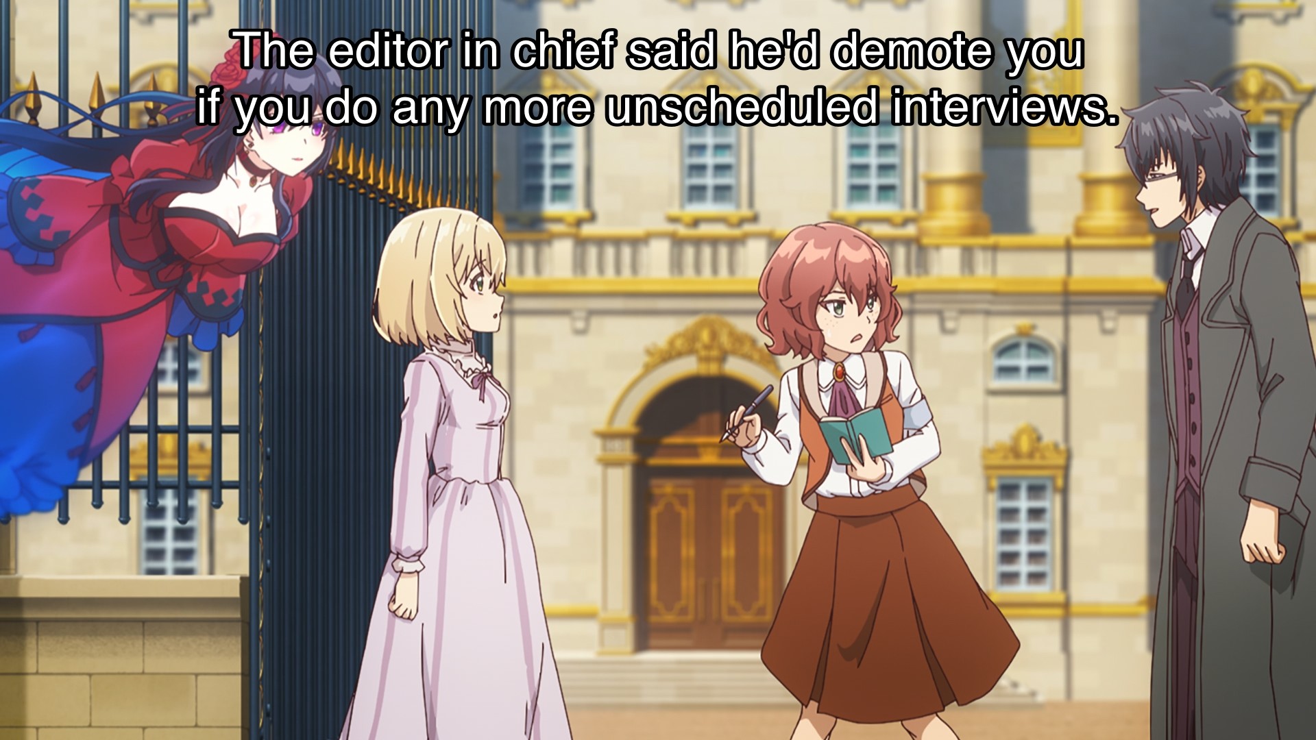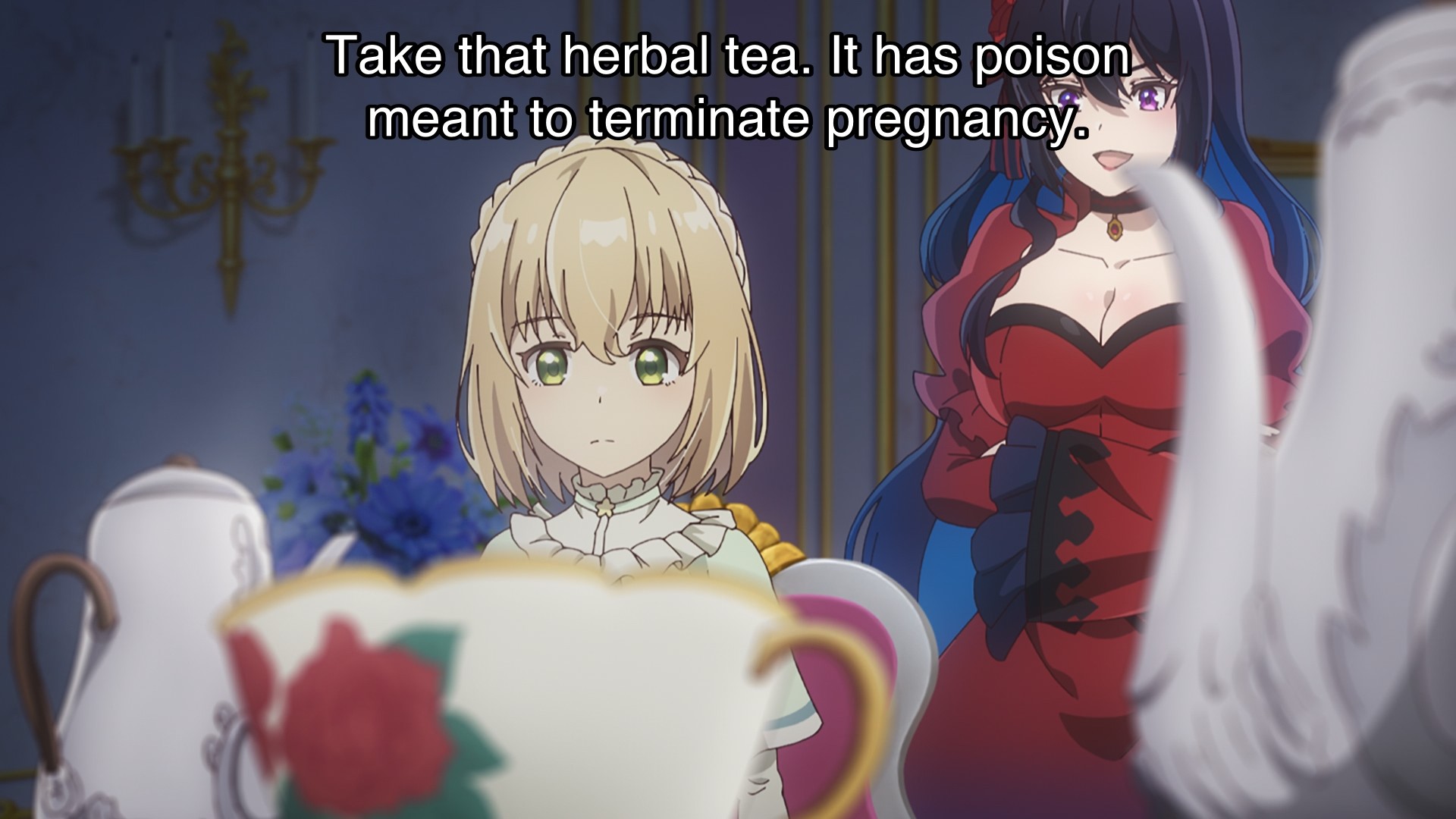 Take a deep breath, because we’re almost done. Finally, Constance hops onto a carriage which mysteriously stops in the middle of the street. All of a sudden, her driver’s voice is different. When she pulls back the curtains, she gets jumpscared by some dude who reacts violently to that phrase the orphans taught her: “Kiriki kirikuku.” And just like that, we end on a cliffhanger. Can you believe it? We just got all those events squeezed into one 24-min episode. And considering how we always leave room for both the OP and ED, the plot actually has less time to work with. Not only that, the tea party took up the first half of the episode, so everything else I just described had to be shoved into the other half. It’s ridiculous storytelling. Why would you do this? Slow down, smell the roses. It’s bad enough that we have to try and process this mystery on a week to week basis. But when the information comes at you like raging river, it’s just not fun anymore. I can’t play detective alongside Constance. Can I assume that the pacing is better in the light novels that this series is based on? Either way, I hope the story got that out of its system, and we can go back to slowing things down a bit after we resolve the cliffhanger. But if the pacing is still this bad, then I’ll just relegate the show to “Everything else” status. I wouldn’t mind freeing up my Thursday nights.