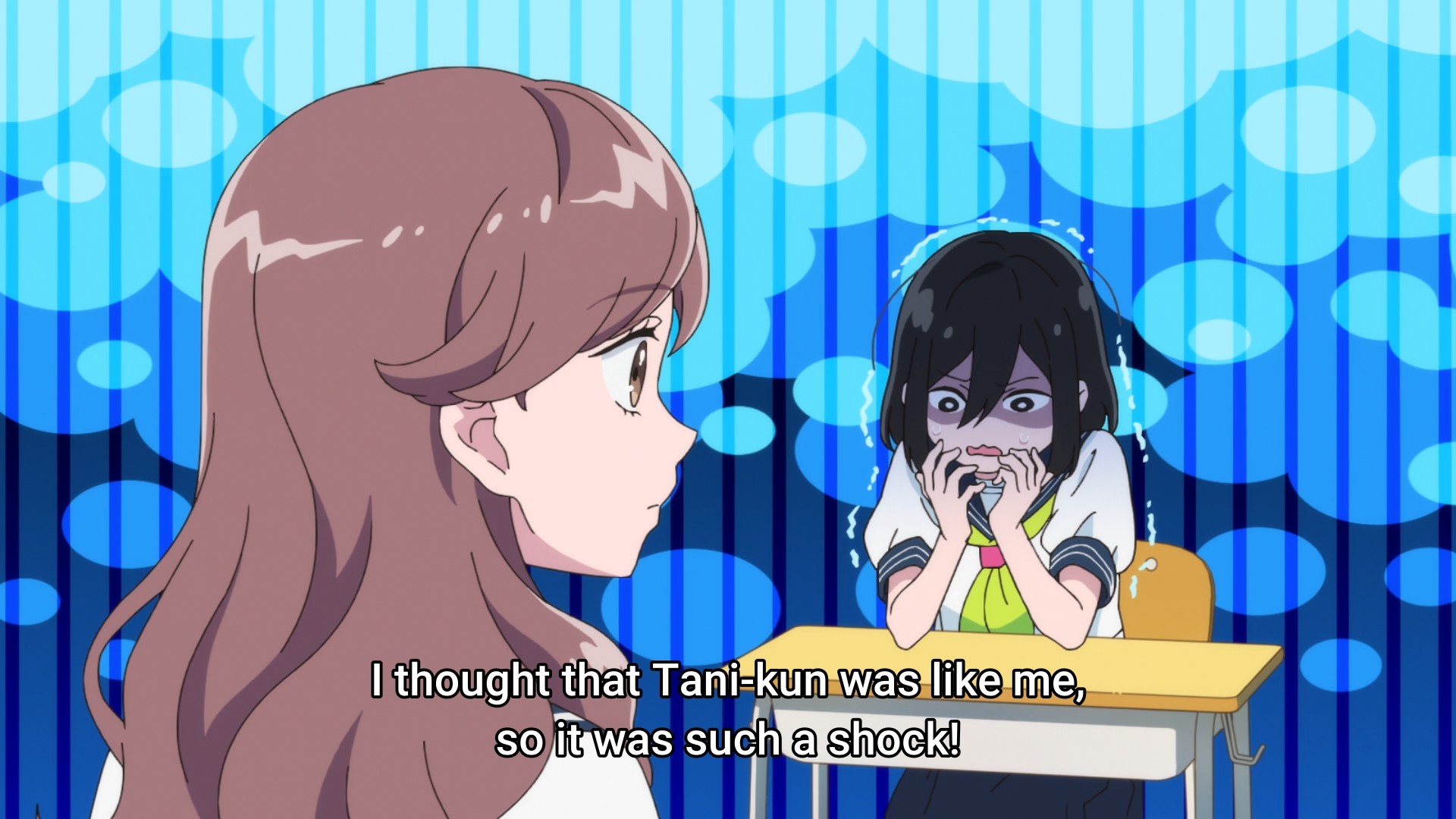 - When Nishi says she’s been thinking about Tani lately, it doesn’t mean she has romantic feelings for him. But this reminds me how people like to jump to conclusions. Friends? “I ship them!” Enemies? “Oh my god, I ship them even harder!” Glanced at each other once in like ten episodes? “S-H-I-P T-H-E-M!” I don’t want to rain on people’s parades, but something about shipping is just so annoying. I think it is mostly because people will ship two characters not because the pairing makes sense, but because the ship itself caters to their own kinks and preferences. As a result, it gets too personal.