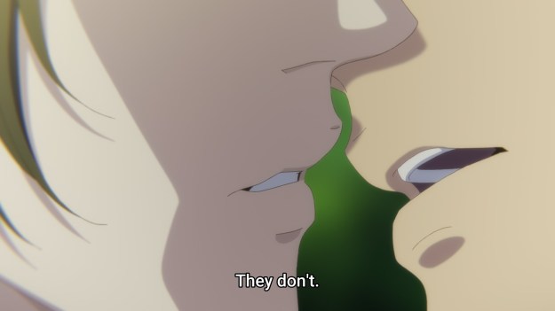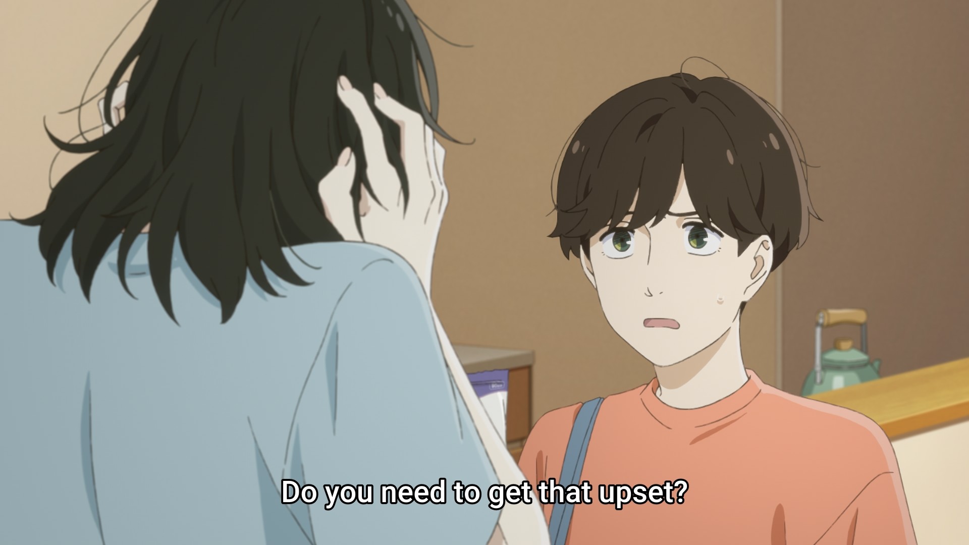 Asa’s reaction to her aunt is interesting, because it suggests that she expects and accepts a baseline of conflict. In other words, it’s okay to argue like this and not get upset. This is normal for her, so she doesn’t get why Makio would have her head in her hands. Asa might look and sound mad, but it’s not that serious. She’s used to a certain dynamic from being raised by her mother, and she’s only now learning that it’s different with everyone. I wouldn’t have a mini-breakdown like Makio, but I also don’t tolerate any form of yelling in my home. If you can’t discuss things calmly, then we can’t live together.