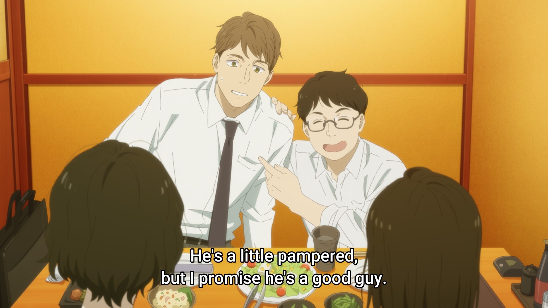 My parents can’t keep a place clean either and it is frustrating for me to see, when there are strategies to overcome the executive dysfunction that can come with ADHD. I was able to learn these strategies for free during Uni as there were groups that helped with it. I assume like with mental health, it may be less common in Japan to talk about and address these things. It is possible to figure out the strategies herself if she does a lot of reflection and trial and error about different ways she can achieve a tidy place. So I do hope Makio can work it out over the years. I don’t expect to see it in the course of this show but I still appreciate Makio a lot as a character as someone who can prompt reflection about my own life.