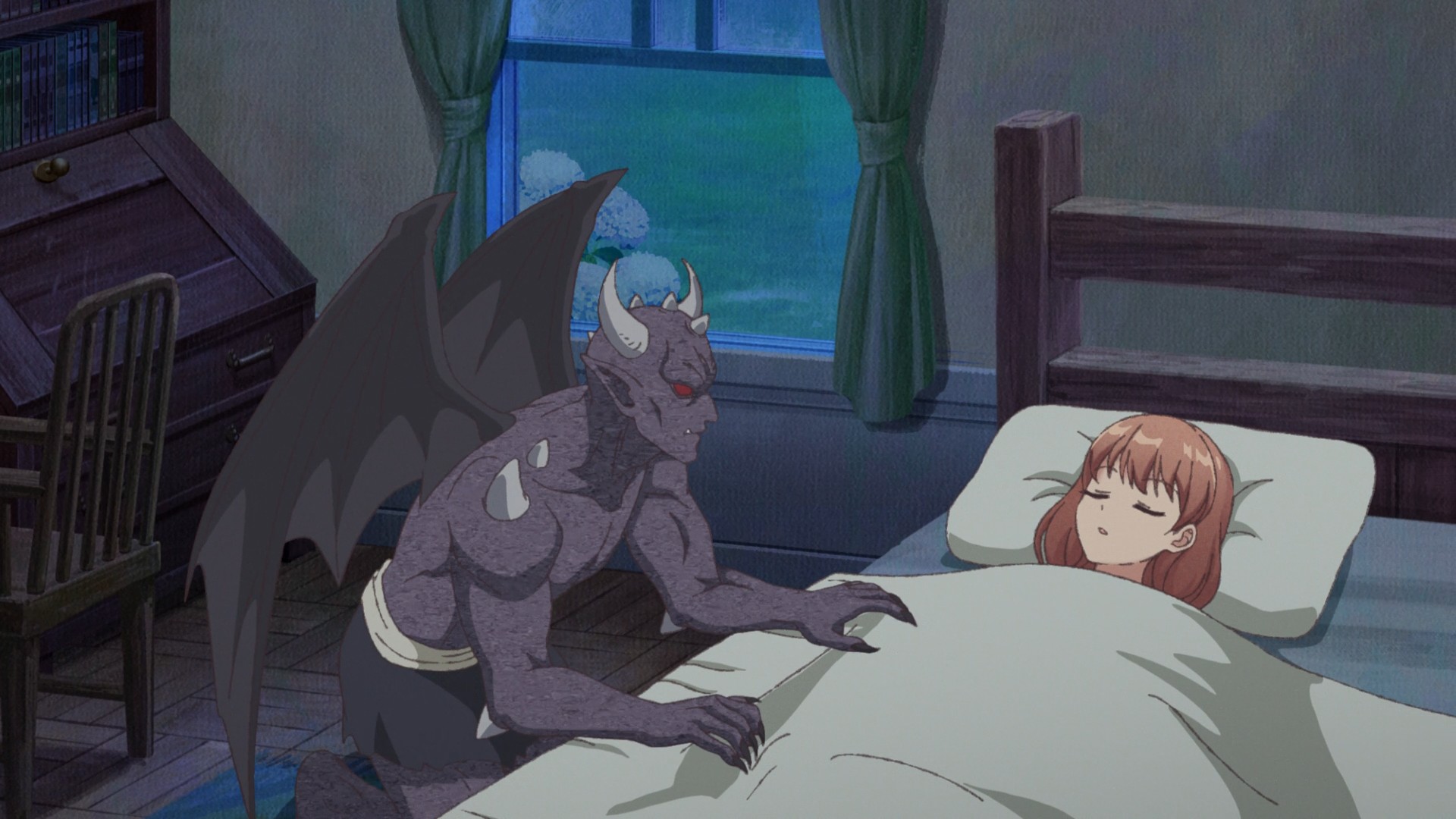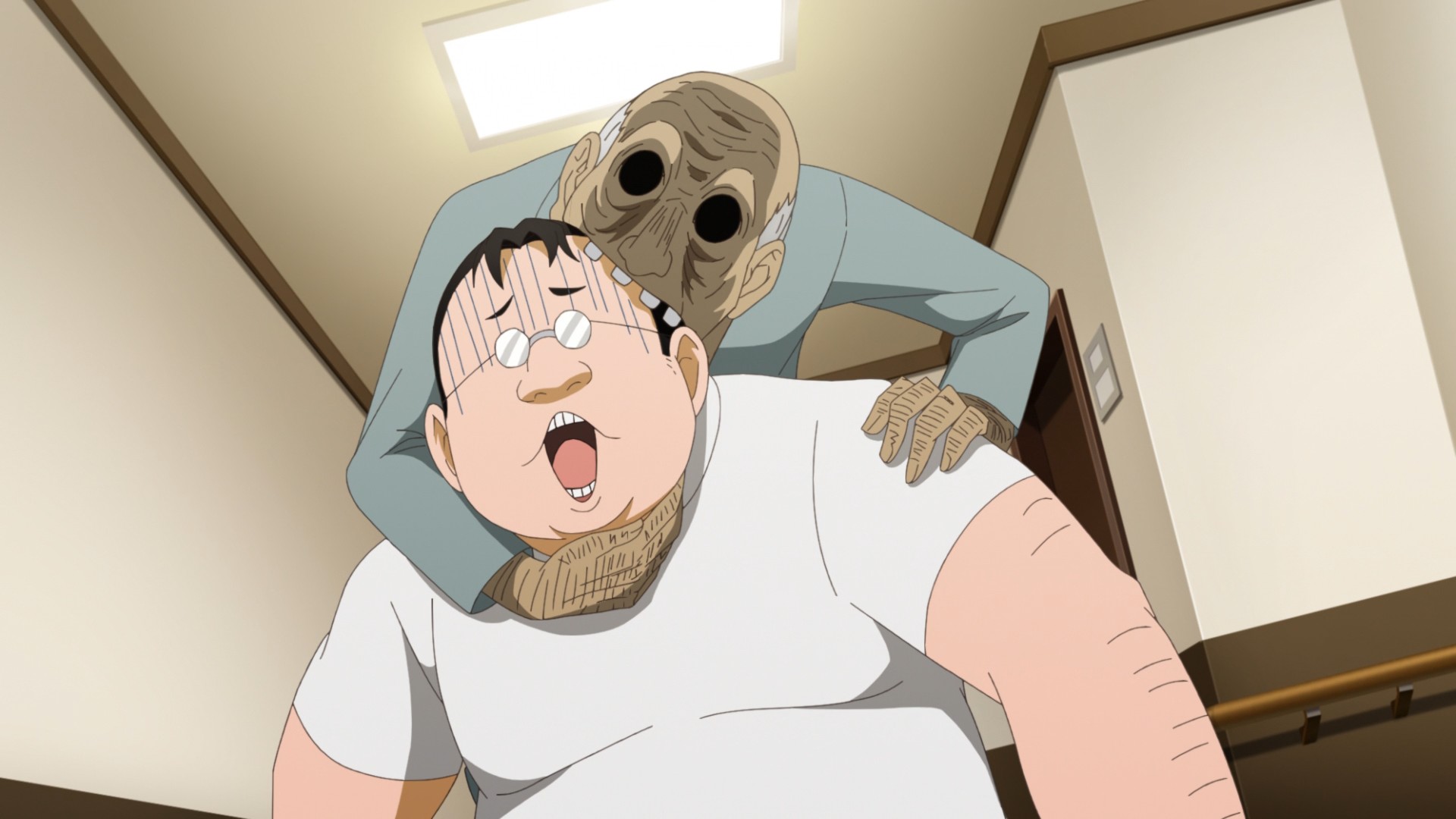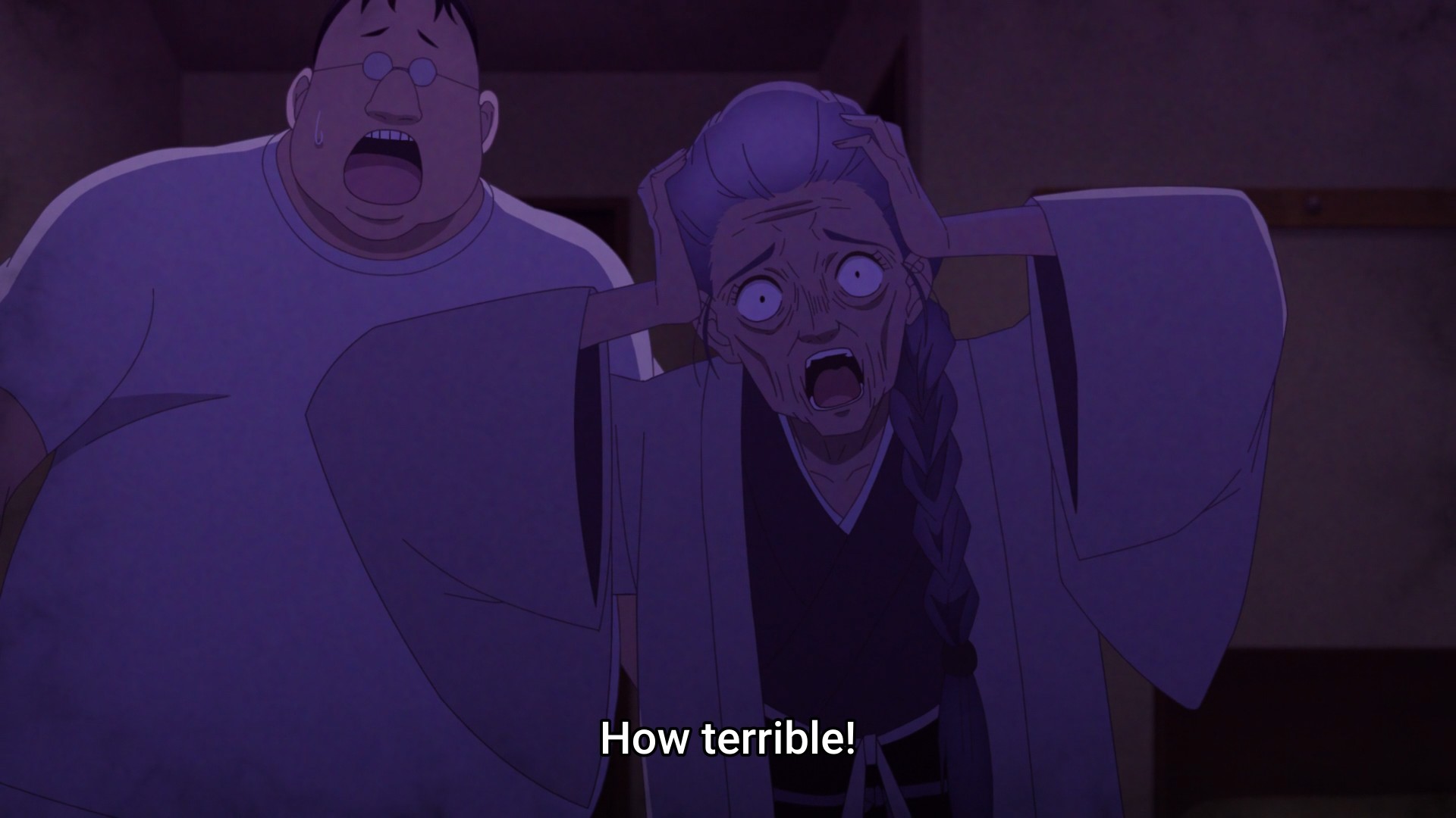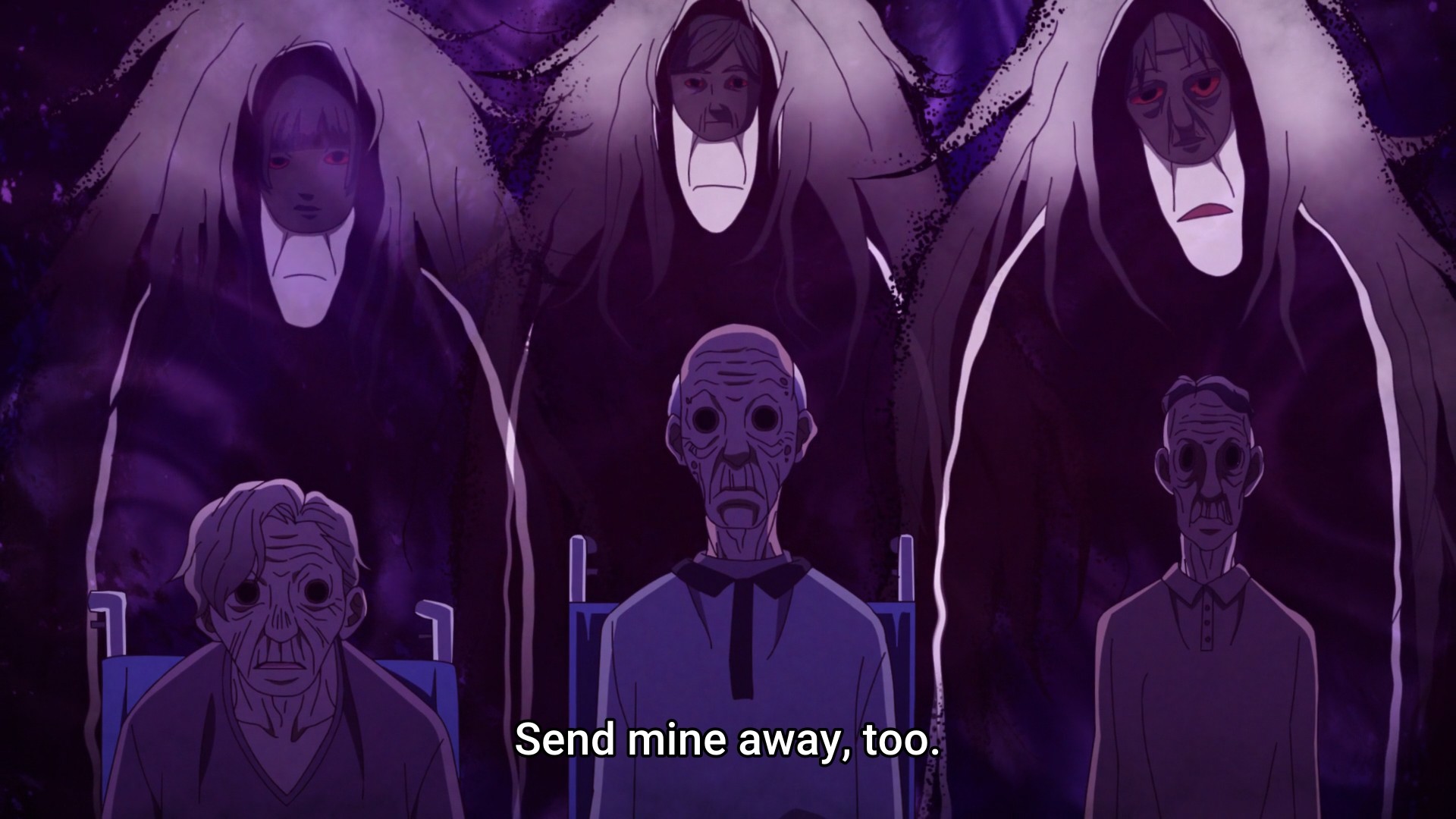Finally, we meet Kaya’s maternal grandmother. She doesn’t get to meet Kaya, though. When she sets her gaze upon the little girl, she sees someone or something else instead. I think the anime wants to suggest that the evil spirit haunting her mother is somehow here, possessing Kaya. But how did it know that the little girl was about to see her grandmother? Ah well, ghosts aren’t logical. They’re not even real!