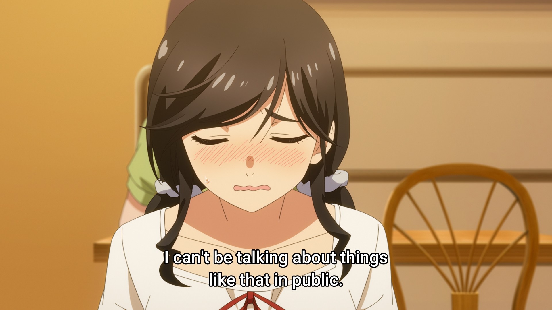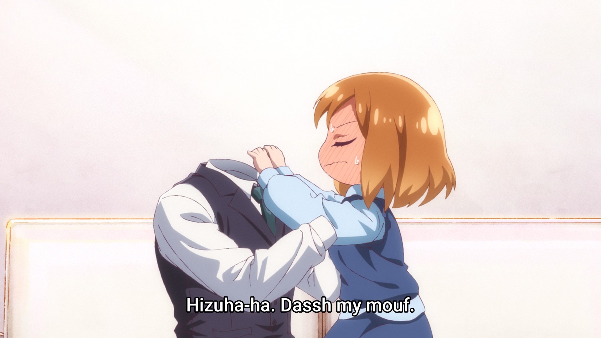 We see a flashback of last week’s accidental kiss (even though the mask was on!) not once but twice. And why wouldn’t we? It’s just so interesting! Wow, an anime character fell onto another anime character and they bumped lips! Roll that footage again! Let’s go through it frame by frame like the Zapruder film!