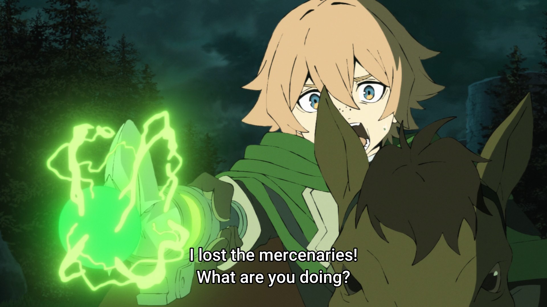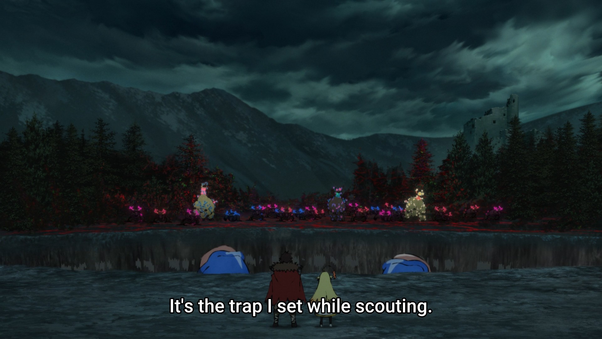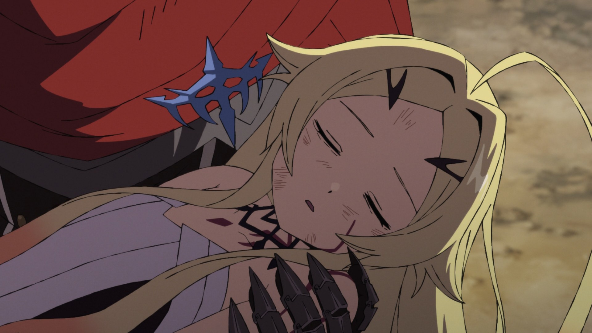 Well, no, that doesn’t happen. A series of individual events ensure that only a couple of faceless mooks bite the dust. For the most part, our heroes emerge from this harrowing encounter relatively unscathed. First, those reinforcements that Venetim mentioned in last week’s episode — the same soldiers that Xylo rejected — are like Chekhov’s gun. Of course they’re going to show up at just the right moment to lend a hand. Our protagonist will eventually have to pay the price for this and “unignore” a certain Franci Mastibolt, but this was always a foregone conclusion. But there’s also Dotta leading a bunch of mercenaries on a wild goose chase through the battlefield. Instead of buying the mercenaries’ services, he stole from them instead. I think he’s supposed to be the lovable fuck-up in our band of heroes, but in my eyes, he’s just a fuck-up. But one man’s fuck-up is another man’s treasure or something, so both Dotta and Venetim’s antics manage to confuse the Demon Lord long enough for Xylo to stick to the original plan.