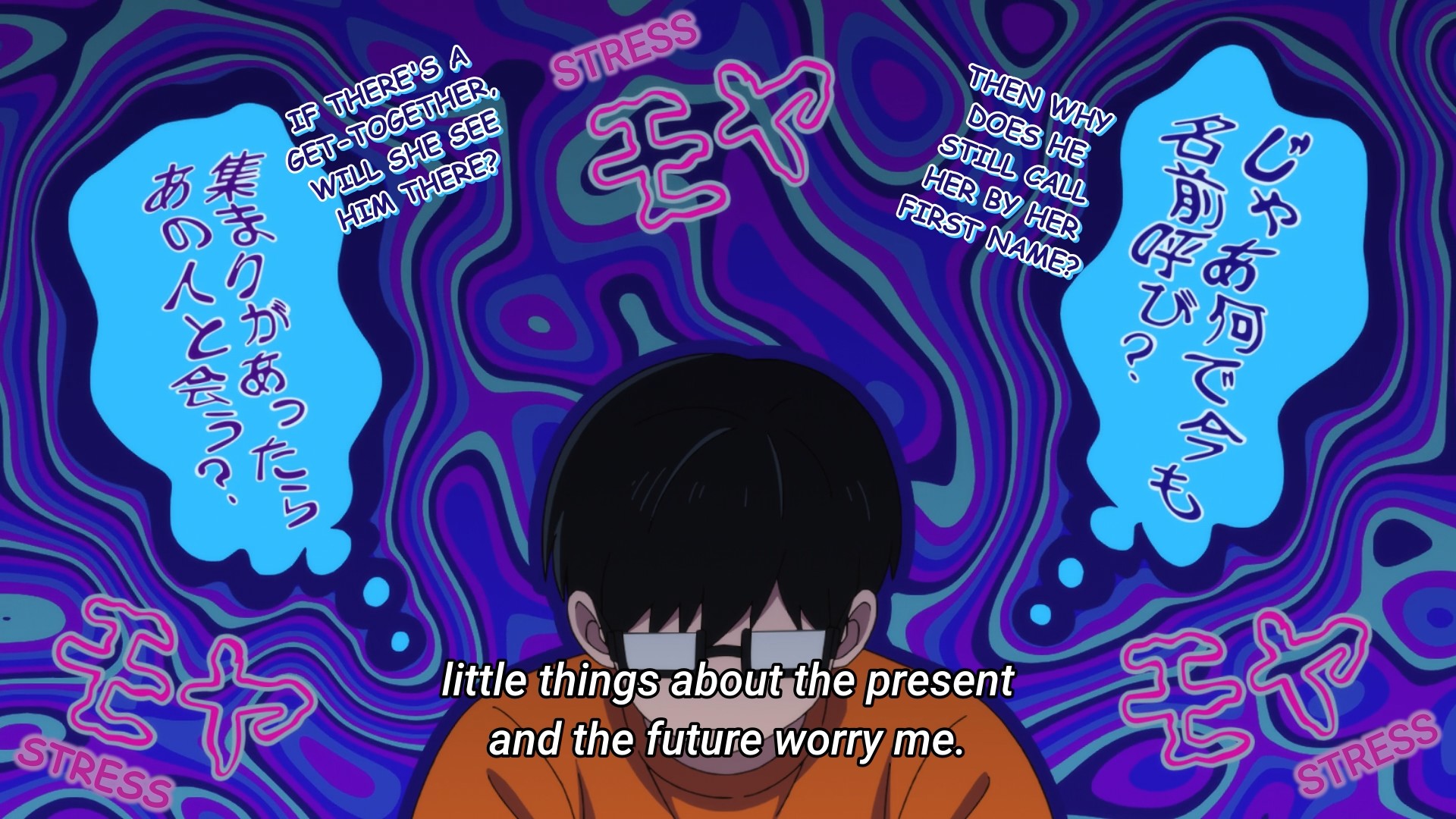 As for Tani, our feelings aren’t always rational. I thus can’t blame the kid for being bothered, especially since this is his first relationship. He even admits in this episode that he constantly doubts himself. After all, he doesn’t seem like the guy who would get a girl like Suzuki. There’s a reason why Honda keeps referring to him as the “light novel protagonist.” It’s the author being cheekily self-aware. So what do you expect a kid like Tani to feel when the tall and supposedly handsome “old flame” comes along and calls Suzuki by her given name Miyu. Whoa, her name? Her real real name? Of course, I’m being facetious. Even so, I can’t blame Tani for wanting to step away from the situation for a second. As long as he doesn’t take his frustrations out on Suzuki, then I think he’s in the clear. All he did was ask for space to sort out his feelings. He doesn’t lash out at her. He doesn’t ignore her the entire day. Upon reflection, he knows his insecurities are silly. What happened is that he got sucker punched by reality, and he just needs a second to recover. This is one of those situations where nobody’s at fault. Just take your time, communicate, then get over it.