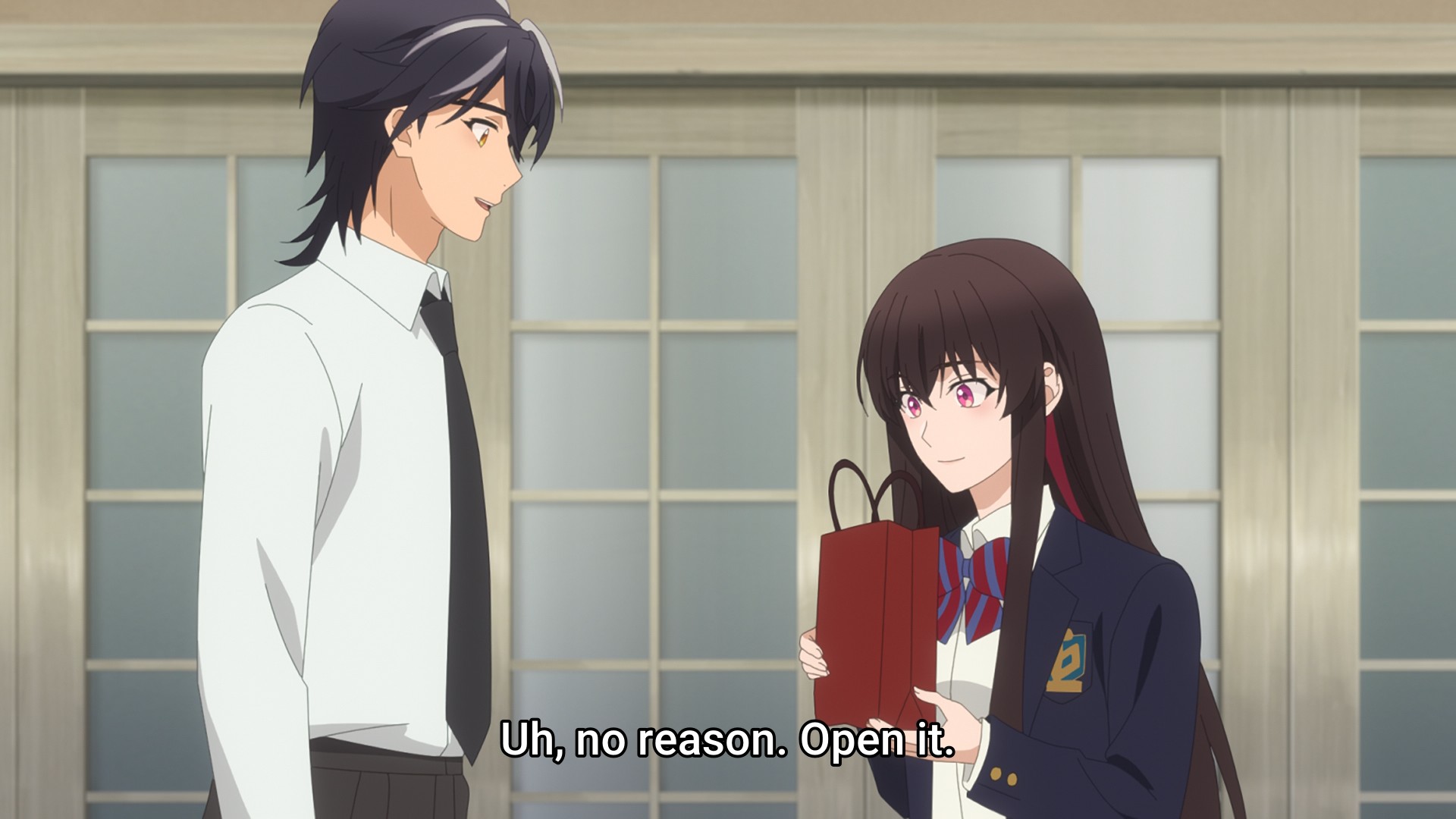 One of the wolfy boys hands Sooha a gift, which I find distasteful. Not the gift itself, but the act. It’s like when one kid has a birthday, but the parents has to give the other kid presents as well to make it “fair.” Well, Sooha is the only girl in this harem of dudes. She’s basically spoiled rotten already.