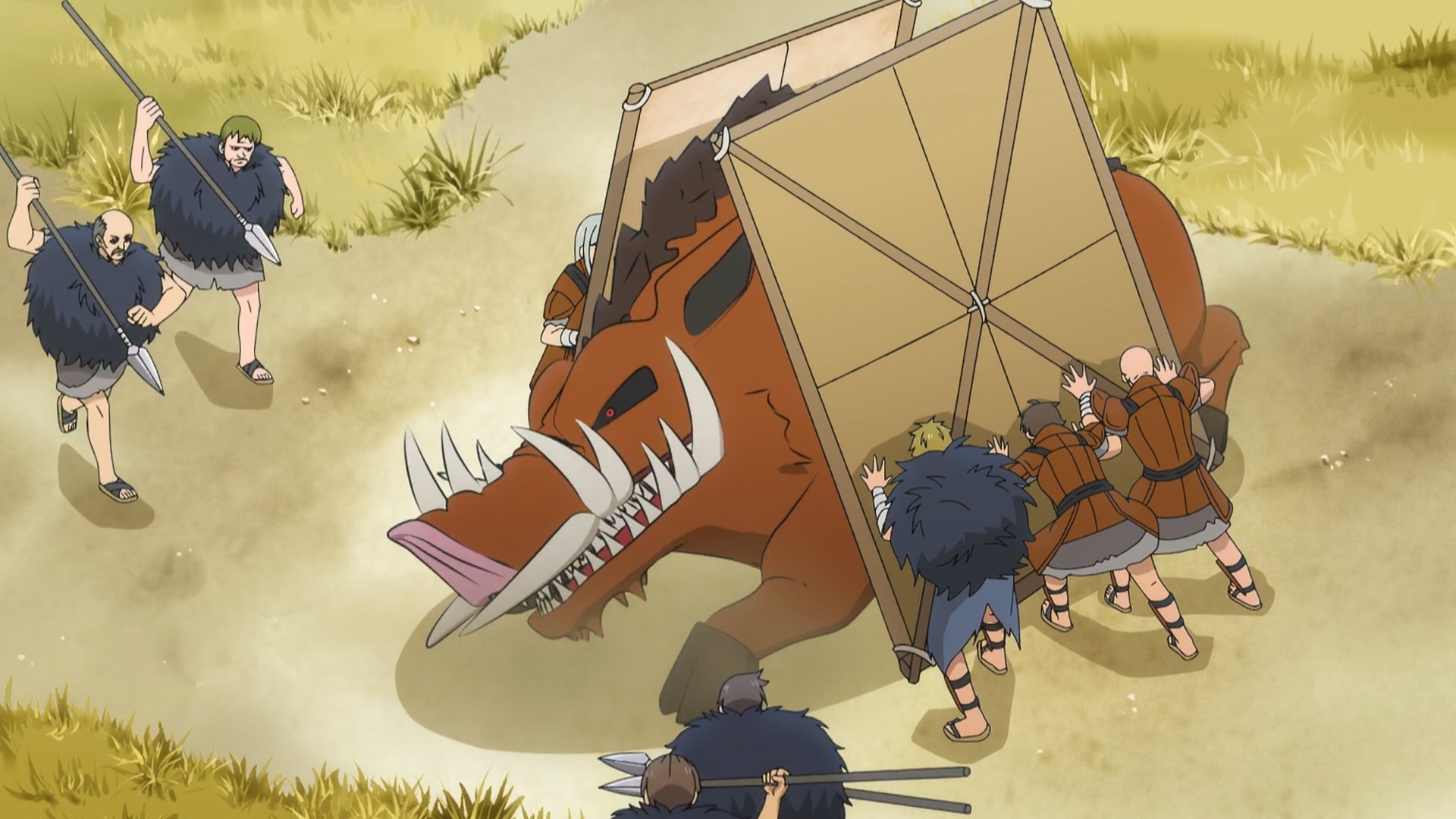 Right before the episode ends, a bunch of guards surround Flum. Dein obviously sent them. He’s probably going to accuse her of murdering his men even though they had attacked innocent villagers and were about to rape Milkit. I think the weird part for me is how there wasn’t any follow up to that incident. Hm, someone sent these men to attack my friend. Maybe I should do something about it. But then nothing happened, so Dein was basically free to cook up yet another scheme.