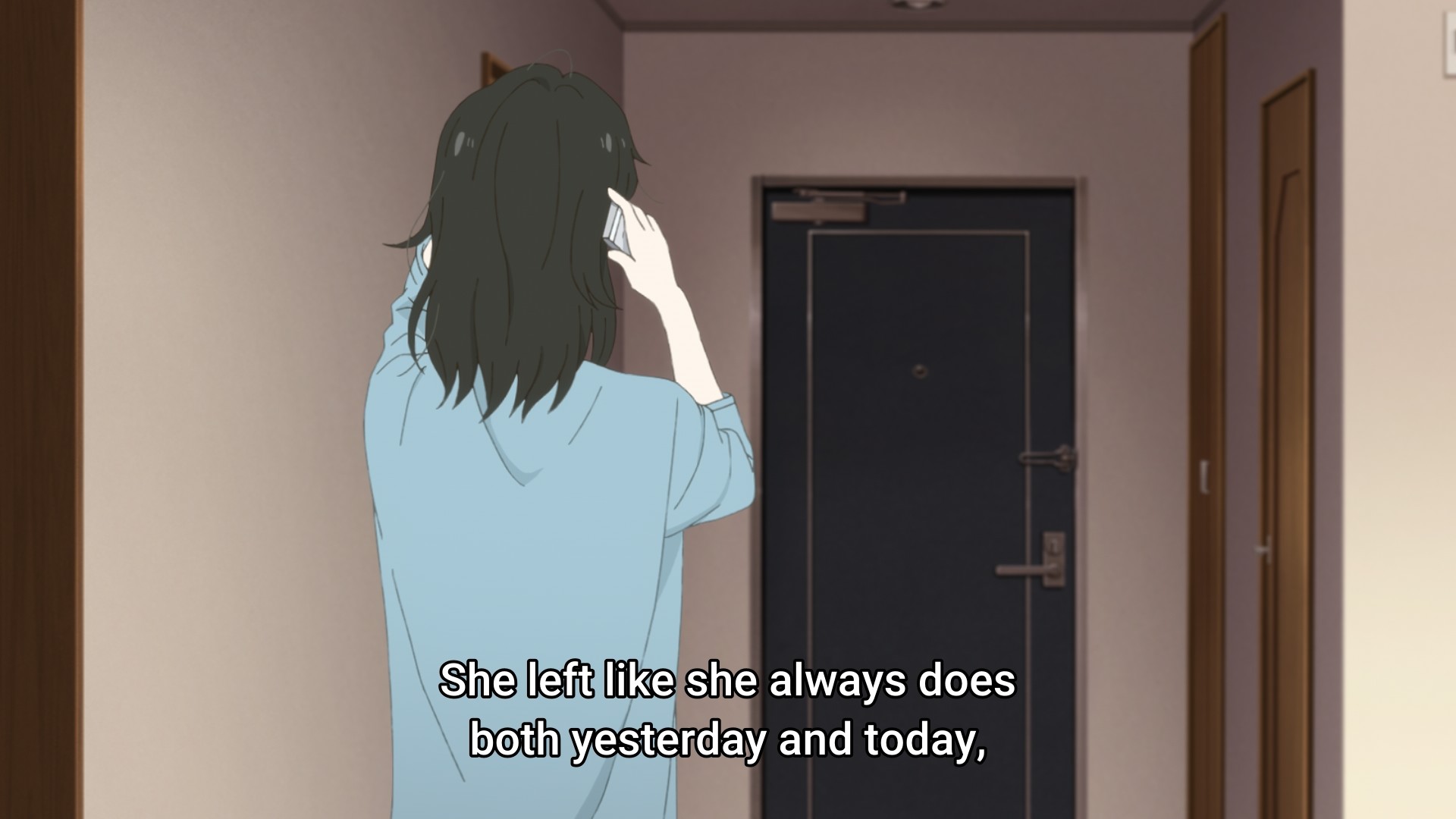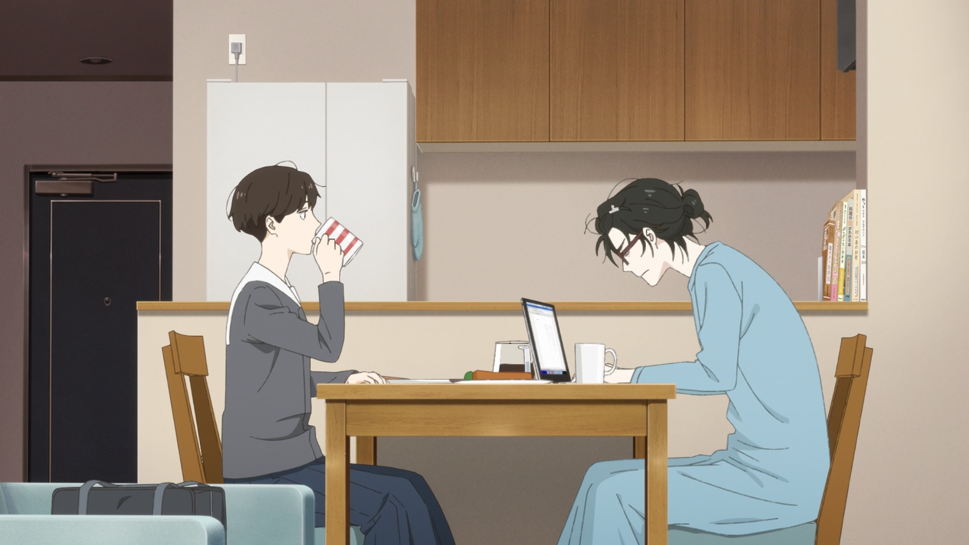 After everything that happened at the end of last week’s episode, Asa decides to go even further this week. And at such a precarious time, too. Her aunt has a deadline coming up, so she needs to focus. As a result, Makio starts neglecting her niece. She doesn’t say hi to Asa when the kid returns home from school. She doesn’t eat dinner with the girl either. How much can it hurt to just say hello? How much can it hurt to just share a 20-minute meal together? But a hello can turn into small talk, which can then turn into anything — a conversation, a full blown argument, debate, etc. Makio needs to keep her train of thought going, and we already know how she isn’t the most organized person on the planet. If her attention wavers even for just a moment, it might take her forever to get back on track. This excuse doesn’t really fly when you’re a parent, but as Makio has reminded us over and over, she’s simply Asa’s guardian and nothing more. The look Asa gives her aunt as the woman is pattering away at her laptop feels almost disdainful. She then does what a lot of teenagers in her position are wont to do: she starts acting up by skipping class. I mean, if she’s going to be invisible to the people around her, she might as well not fulfill her obligations, right?