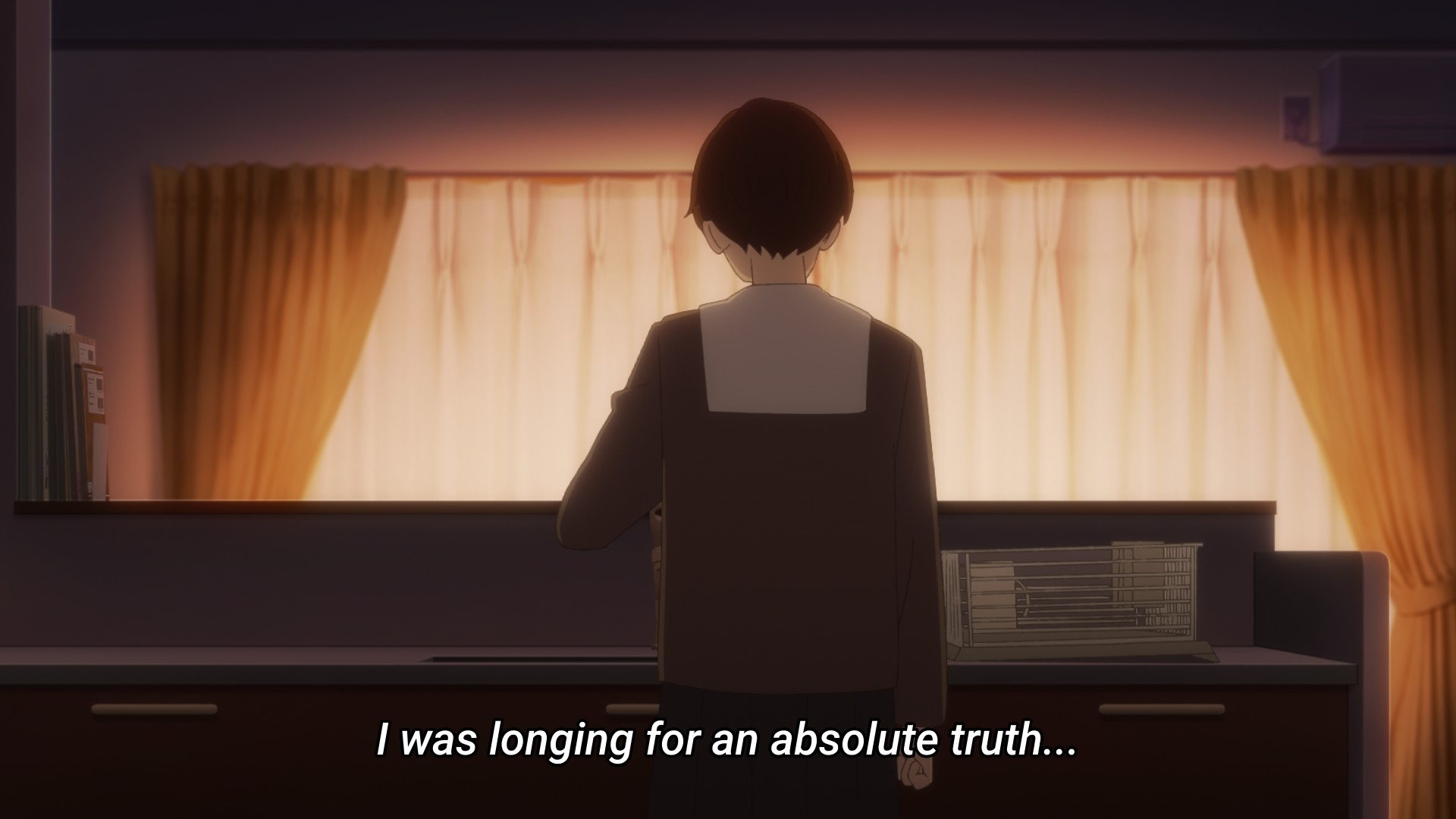 Later that night, Asa reads one of Makio’s novels. When the protagonist describes their intense sadness, Asa feels as though Makio should understand her. And if Makio should understand her, then she should also be able to give Asa what she desires most: a sweet-sounding lie disguised as an absolute truth. Tell me you know that my mom loved me. Or better yet, that you love me. Maybe the desert metaphor is more apt than we think. When Asa was skipping class earlier in the episode, we saw her environment change from the neighborhood to that all-too-familiar desert. She was putting herself back in that desert. This was all self-inflicted. At first, I thought she was taking every action she could to isolate herself from the people who care about her in order to punish them. But maybe she’s venturing into the desert because she’s looking for an illusion that no one wants to give her. But maybe because Makio understands precisely this sort of sadness is why she won’t lie — why she won’t pretend to know what she truly doesn’t know. Ultimately, Makio can’t and will never be Asa’s new mother. She can’t reassure her like her mother used to. She can only be there to support Asa as the kid works her way through her sadness on her own.