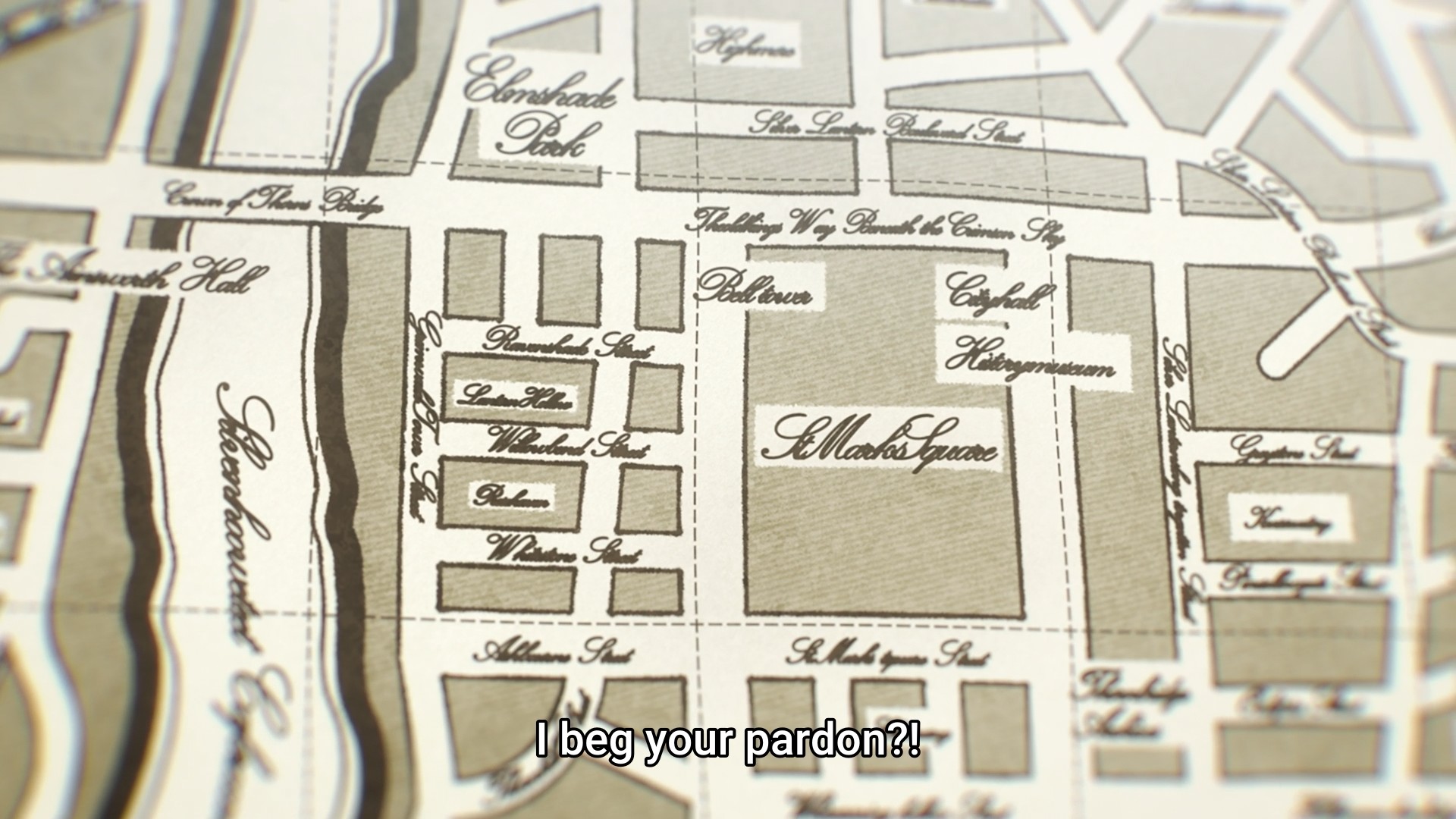 It always disappoints me when a mystery protagonist stumbles upon the solution through shear happenstance. Since the very second episode of the series, Constance has been trying to figure out the secret behind Lily’s key. We get two major developments in this week’s episode, and they occur practically back to back. The first 90% of the episode might as well be filler1. So what are these major developments? First, the key itself is no key. According to Randolph, it’s merely a decorative object with an important “key” engraved on it. Yes, this string of letters and numbers pinpoints the exact location you need to go on this map. And how does Constance suddenly manage to draw this connection? By randomly bumping into a seemingly lost stranger in the streets. Sure, our heroine still has to put two and two together, so bravo for that. But had Constance never met the woman with the big sword, we’d still be stuck at square one. I don’t need Constance to be as brilliant as Sherlock Holmes, but I dunno… the way this unfolded just feels unsatisfying.