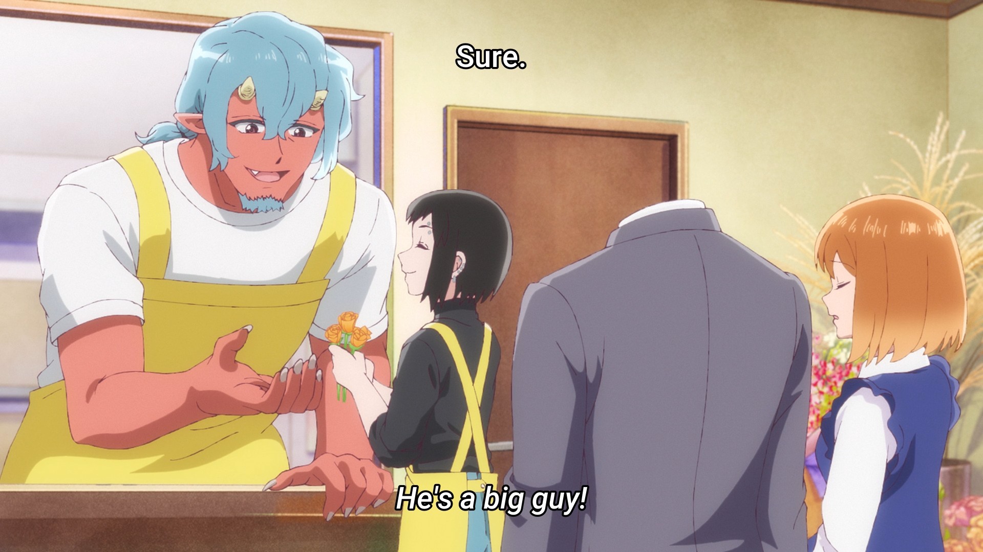 Speaking of intimacy, we are introduced to a human-oni couple in this week’s episode. Not to be crude, but how exactly do they handle intimacy? I mean, they have a kid, so something is obviously working.