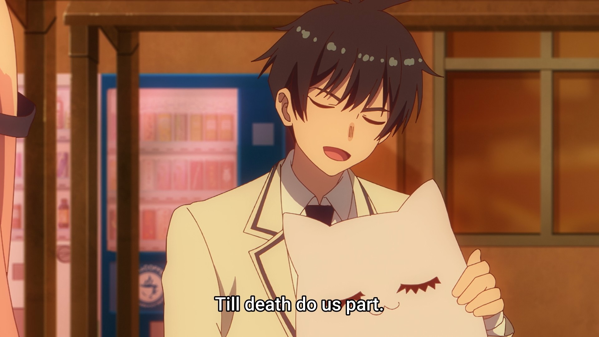 In the end, the other guy… Ouji? Yeah, him. He helps Takiguchi realize that she does like Ichimura. But even then, the show completely takes me out of the moment, because she still doesn’t send him a text to meet up. Finally, Ichimura is the one who sends a message, but she doesn’t respond. No, she just shows up at the festival in a kitsune mask to… what? Surprise him? Look at me, I’m here! Haha, the drama! So cool. Except she sees him with another girl, so she runs away when he calls out to her. So, y’know, more pointless fucking drama.