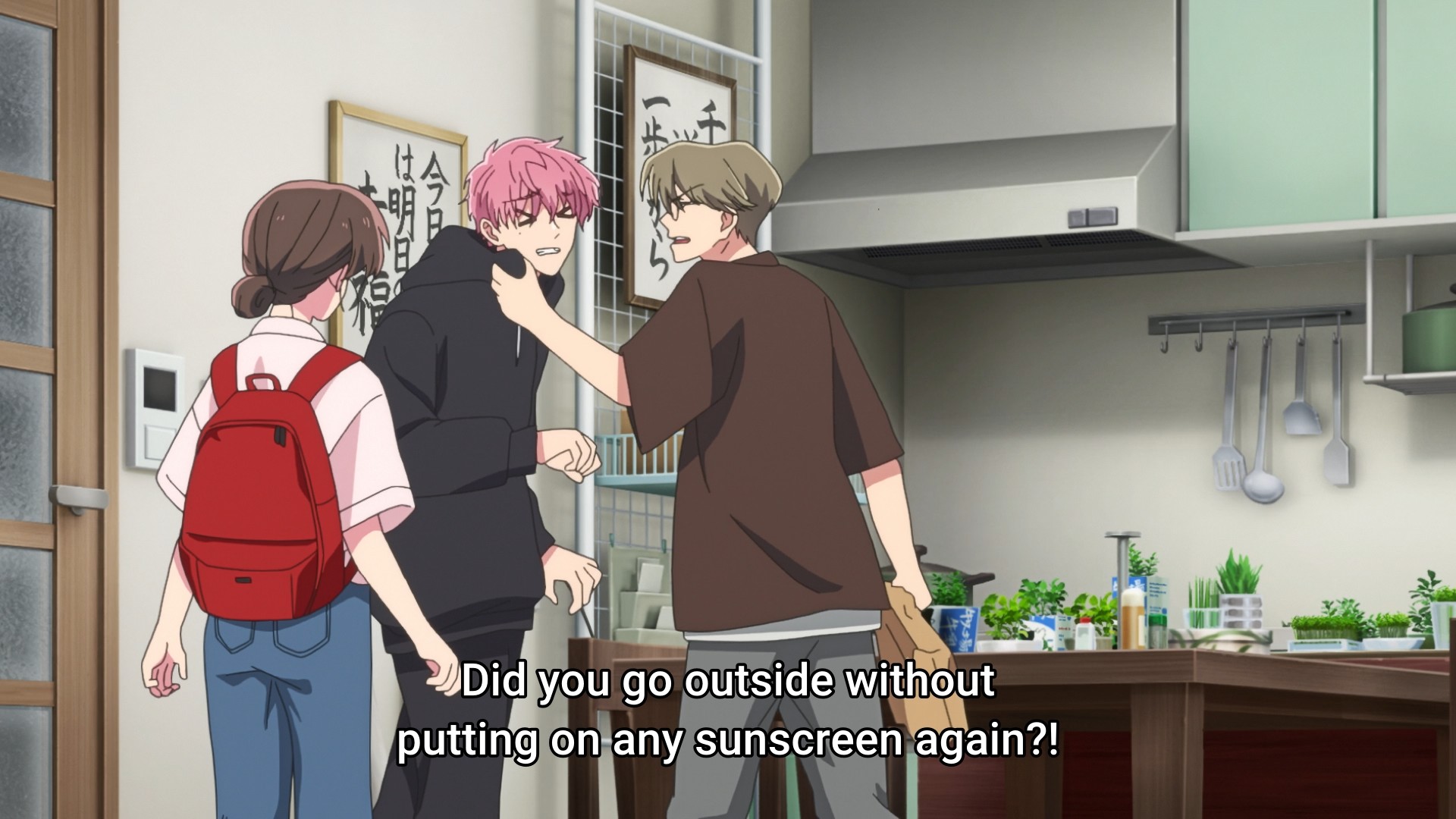 — Wait, Keito just handed Tamon a bottle of used coffee grounds because it’ll help with sleeplessness? Huh? I had to look this up. Apparently, it can help with those dark bags under your eyes when you don’t get enough sleep. Right.