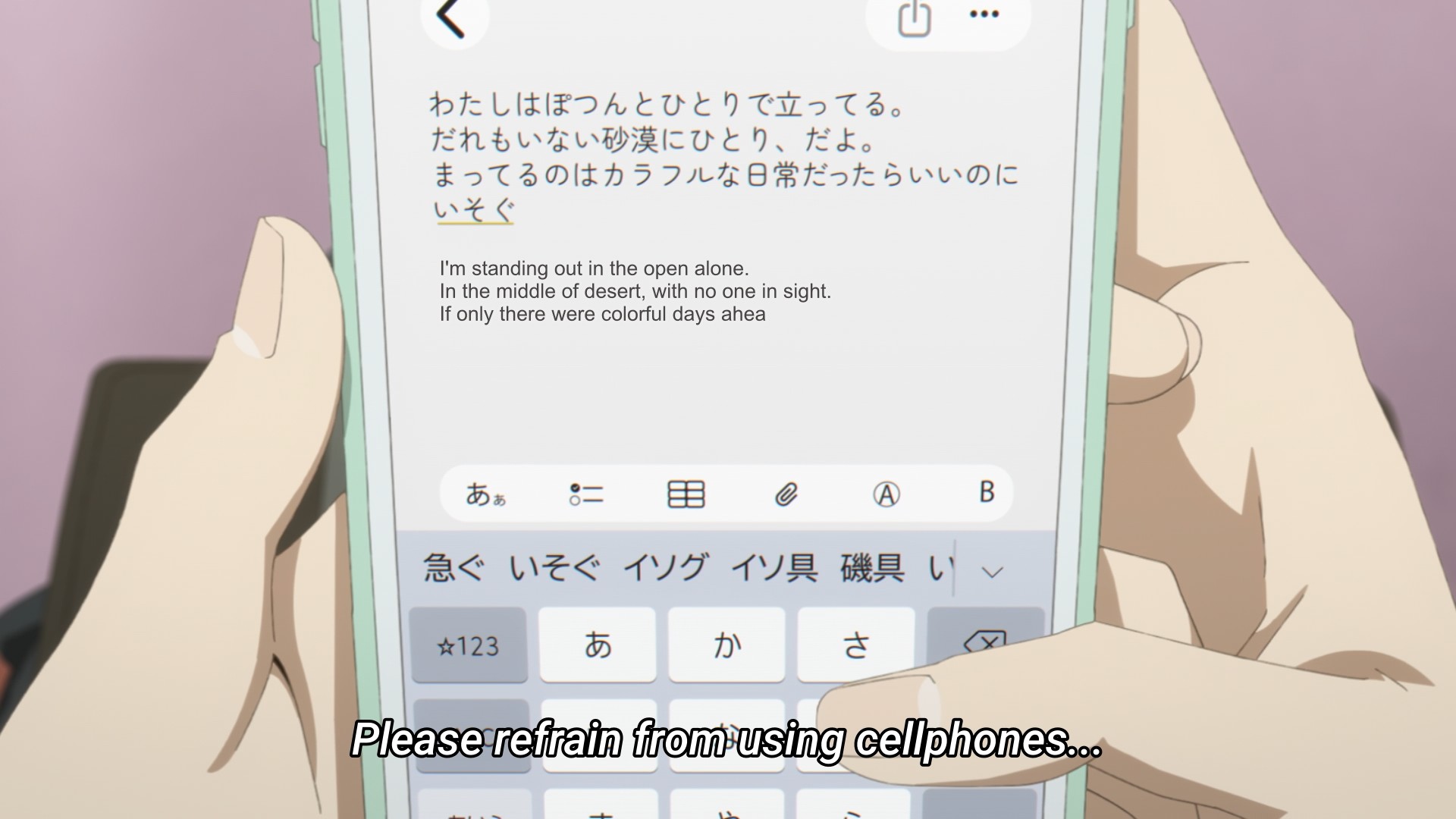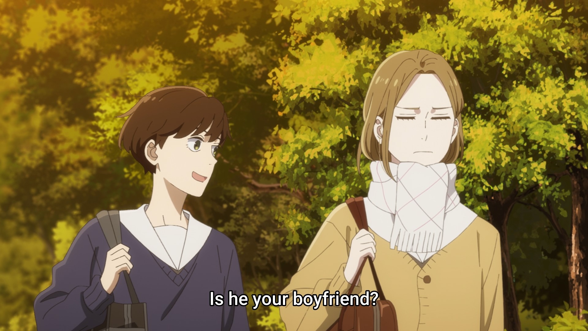 Later, Asa has Makio look over the lyrics to an original song, because she also wants to perform with the band. The woman turns bright red when she reads them. She says they’re “young and fresh.” I’m not sure what that means. When Asa presses for more advice, what Makio ends up saying seems pretty on point to me: be more specific, focus on a single topic, etc. But Asa is reminded of her counseling session, so she is dissatisfied. She presses Makio even further, so the woman gets a bit too metaphorical. It comes as weird, especially to a teenager. Asa struggles with the fact that she can’t channel her pain into anything specific. All she can do at the moment is write platitudes. She always feels like people are speaking a different language. In other words, they’re talking past each other. She doesn’t understand what the counselor wants from her. She can’t pick up on her best friend’s discomfort about her sexuality. She can’t grasp her aunt’s all-too-personal advice.