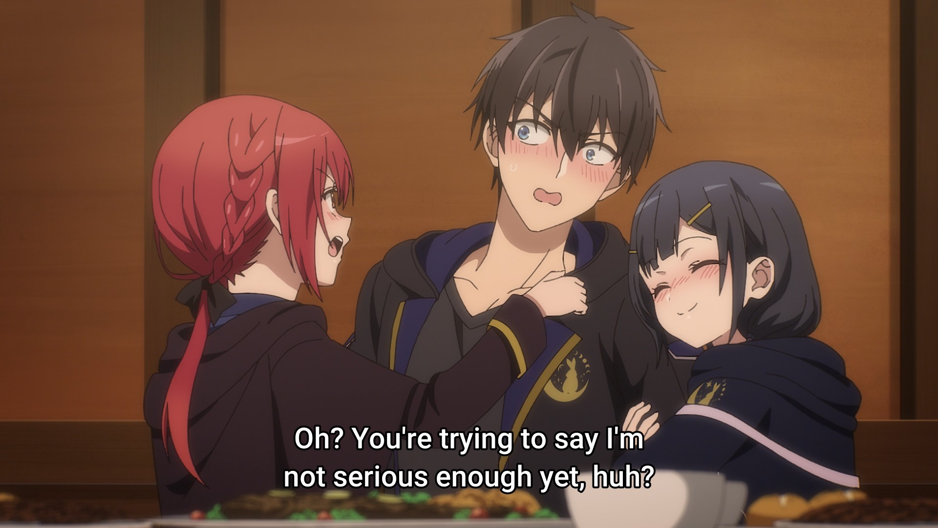 In the latter half of the episode, two of his new party members — Selma and Rain — get drunk and hit on him. Ladies, please, he literally just joined. Do we need to have a talk with the guild’s HR rep?