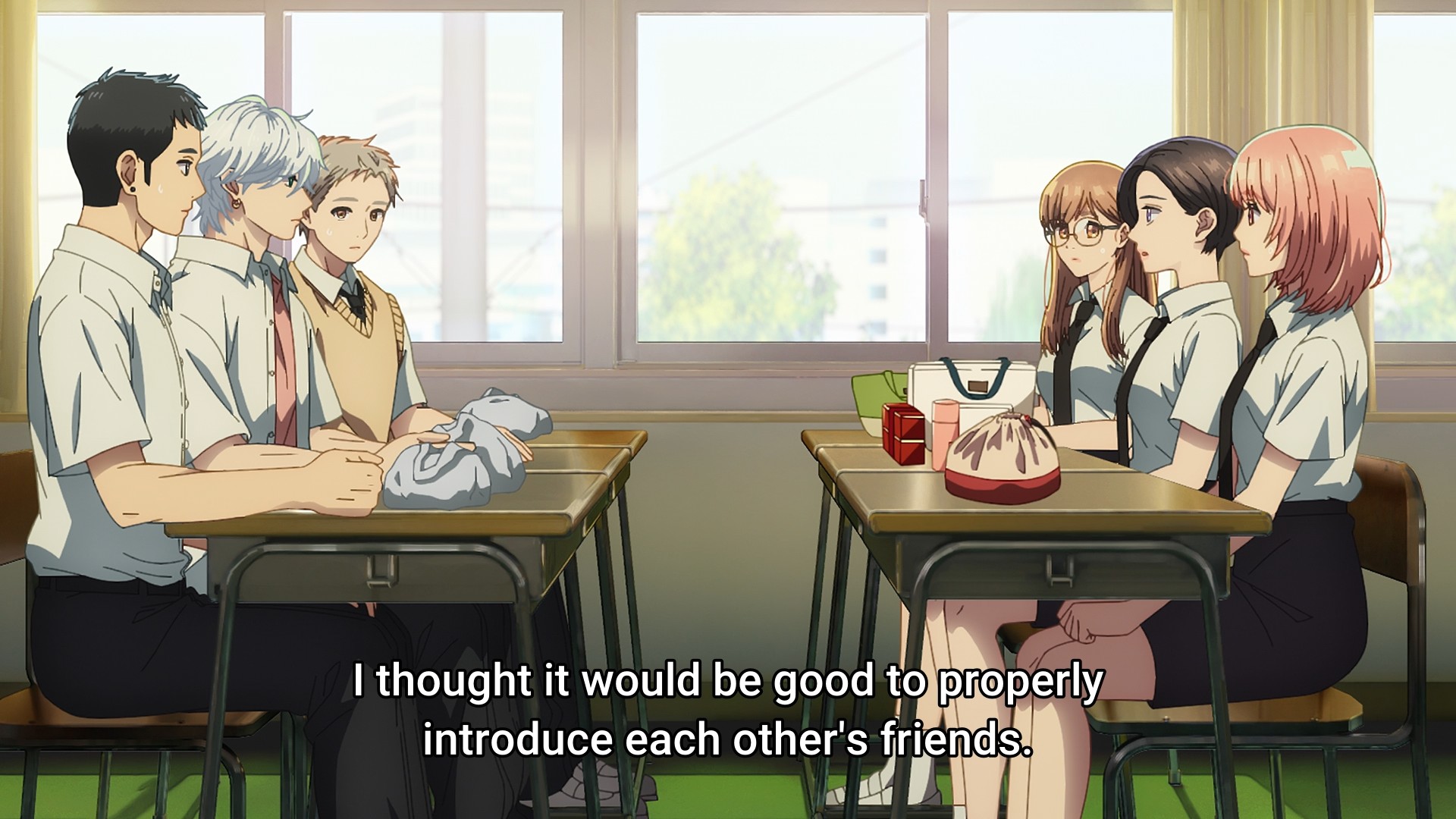 Takiguchi and Ichimura are now officially dating after the whole summer festival incident. Cool, we got over the first major hurdle. Unfortunately, they still seem so unrelatable. At school, Takiguchi suggests inviting all of their friends to lunch together. Ah, the classic merging of the friend groups. The more, the merrier, right? But in the middle of said lunch, she suddenly whips out her relationship contract with Ichimura and starts going over it point by point. For instance, while they’re at school, she and Ichimura need to maintain a minimum distance between the two of them. Takiguchi ultimately relents when she realizes she wants to spend time with her boyfriend — what a novel concept — but this whole thing still feels weird. Fine, she’s inexperienced, but even then, I’ve never seen anyone act like this. I don’t find it particularly compelling to watch either. And if Takiguchi is too uptight, then Ichimura is the direct opposite. They’ve only started dating, but he immediately invites her (and her friends) to go on a trip to stay at his fancy villa in Kobe. Oooh la la~ But seriously, pump the breaks, bro. Try to at least go on a couple of official dates before you plan a freaking trip. Ah well, if you want your uber-unrealistic romance with uber hot, model-like characters, then I guess this is the show for you.