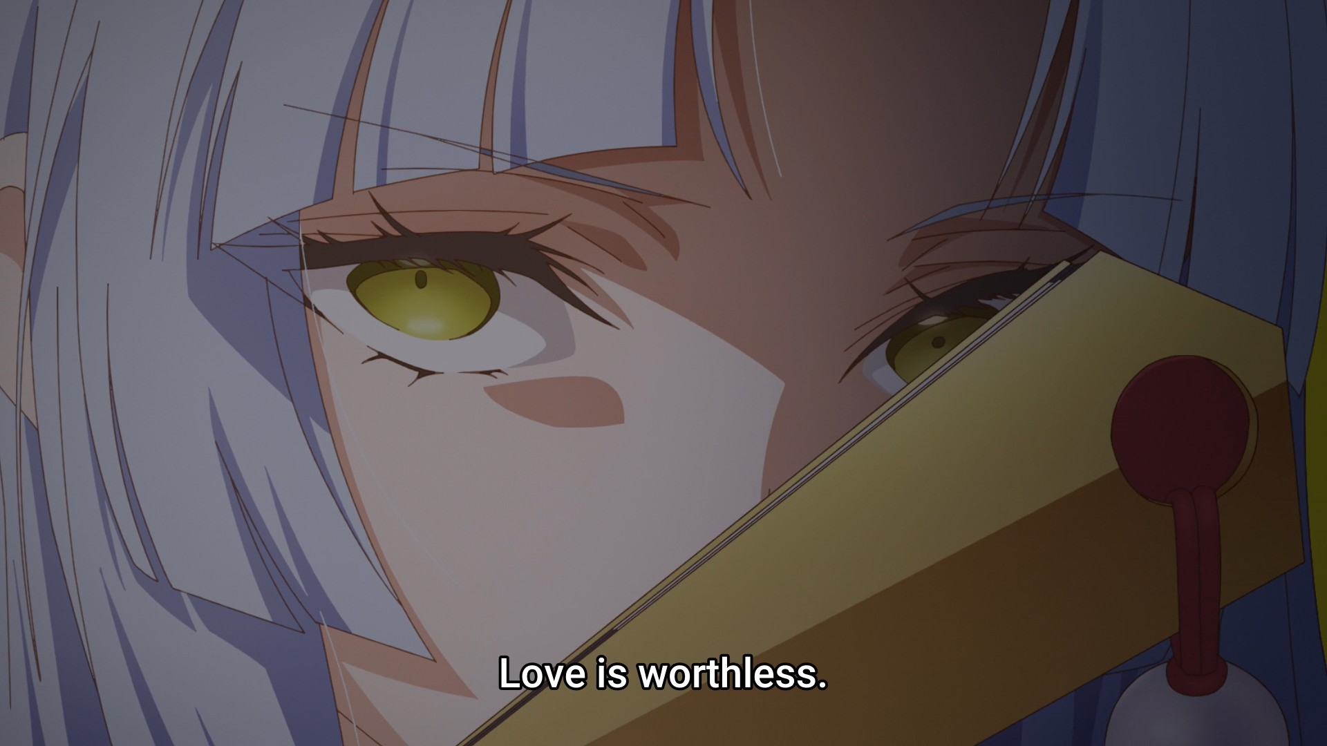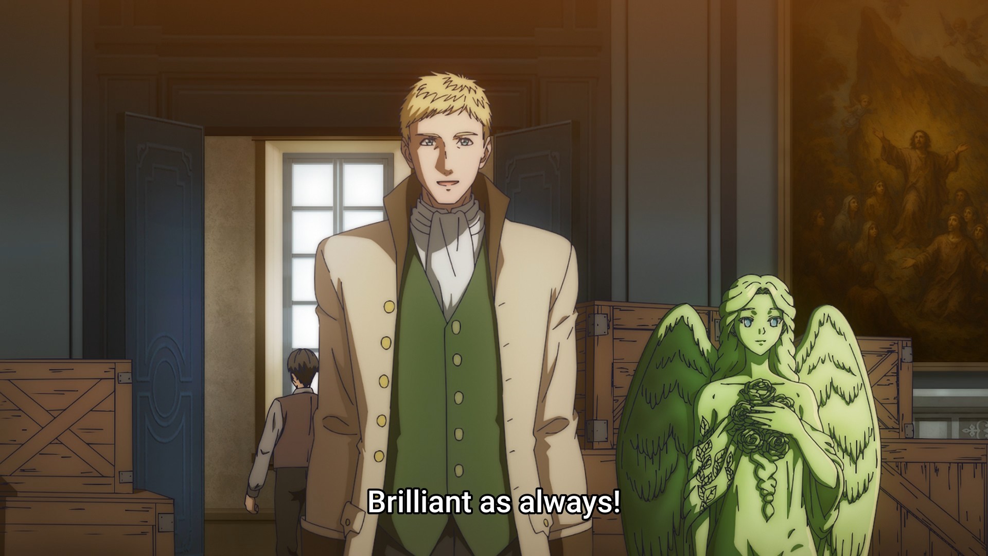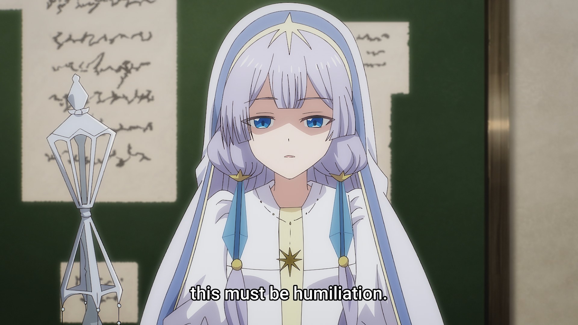 So the cat’s finally out of the bag: the Holy Grail of Eris is just an invasion plot. Preventing Scarlett from marrying Enrique meant Faris couldn’t turn Adelbide into a vassal state… at least, for about ten years or so. Basically, Scarlett’s own father had her sacrificed for the good of the country. He had no other choice! Killing her was the only solution! Well, Constance certainly doesn’t agree, so right before the episode ends, she goes and confronts the duke.