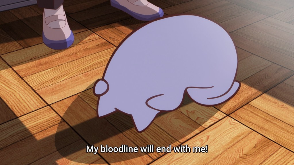 For the remainder of the episode, Kirino more or less bumbles her way to success with Yamabuki’s help. For instance, she bombs a gaming stream, but still goes viral because her audience thinks she pissed herself. She enters a competition where the grand prize is a collab with the aforementioned 3M subs vtuber, but she is eliminated immediately. Even so, the 3M subs vtuber calls her anyway. They actually cut to the person behind the 3M subs vtuber when she praises Kirino’s advisor (a.k.a. Yamabuki). So great, I guess she’s also an important character. But how is she even related to Yamabuki? Bah, probably also listened to that dumb radio show.