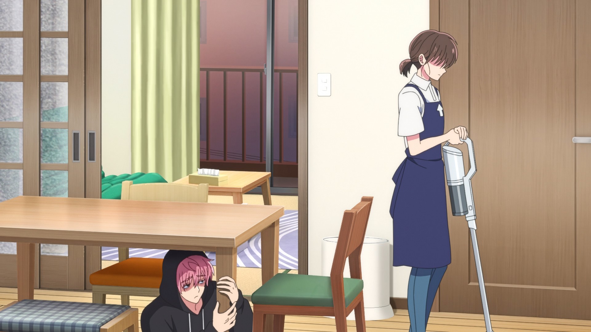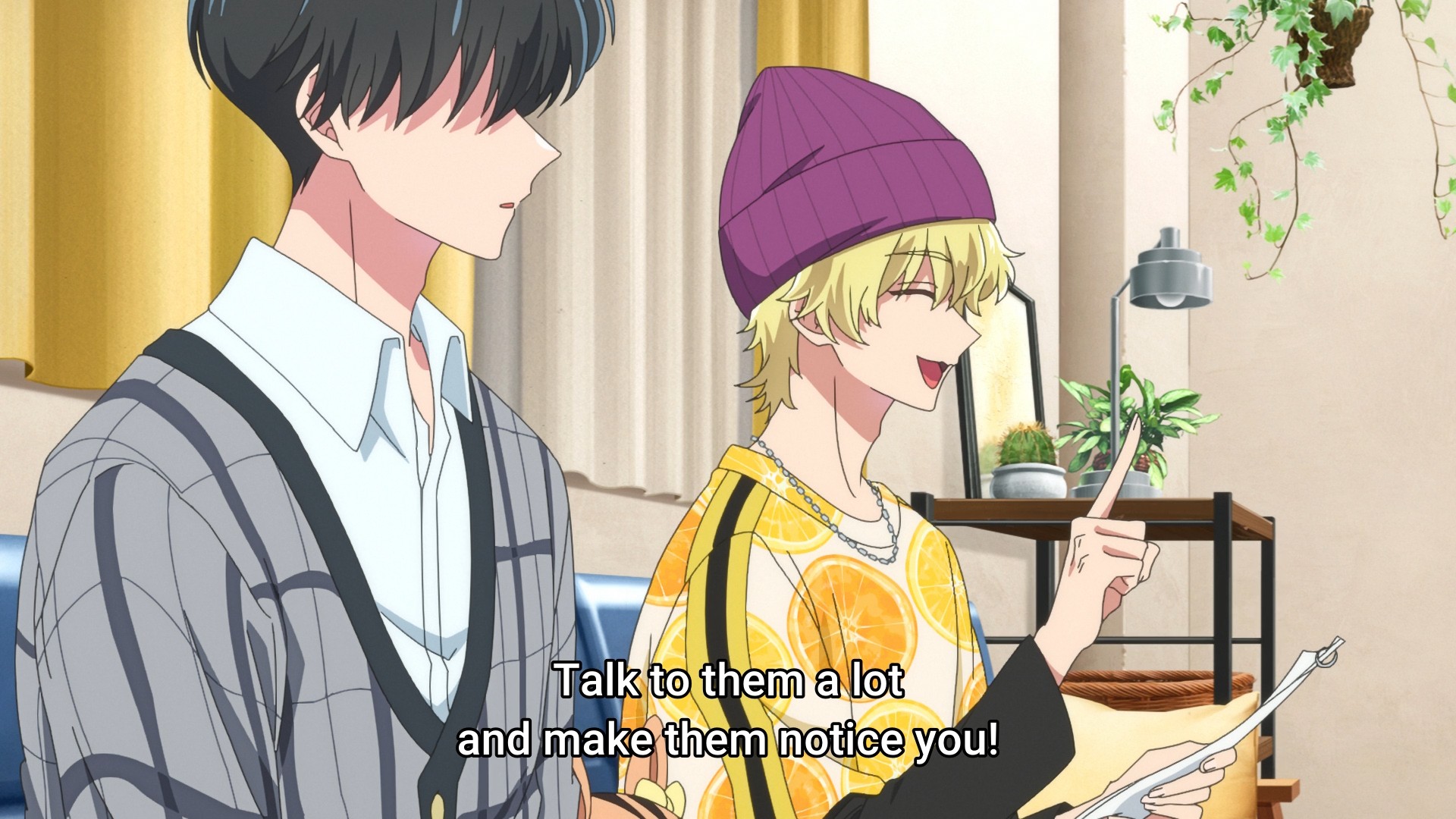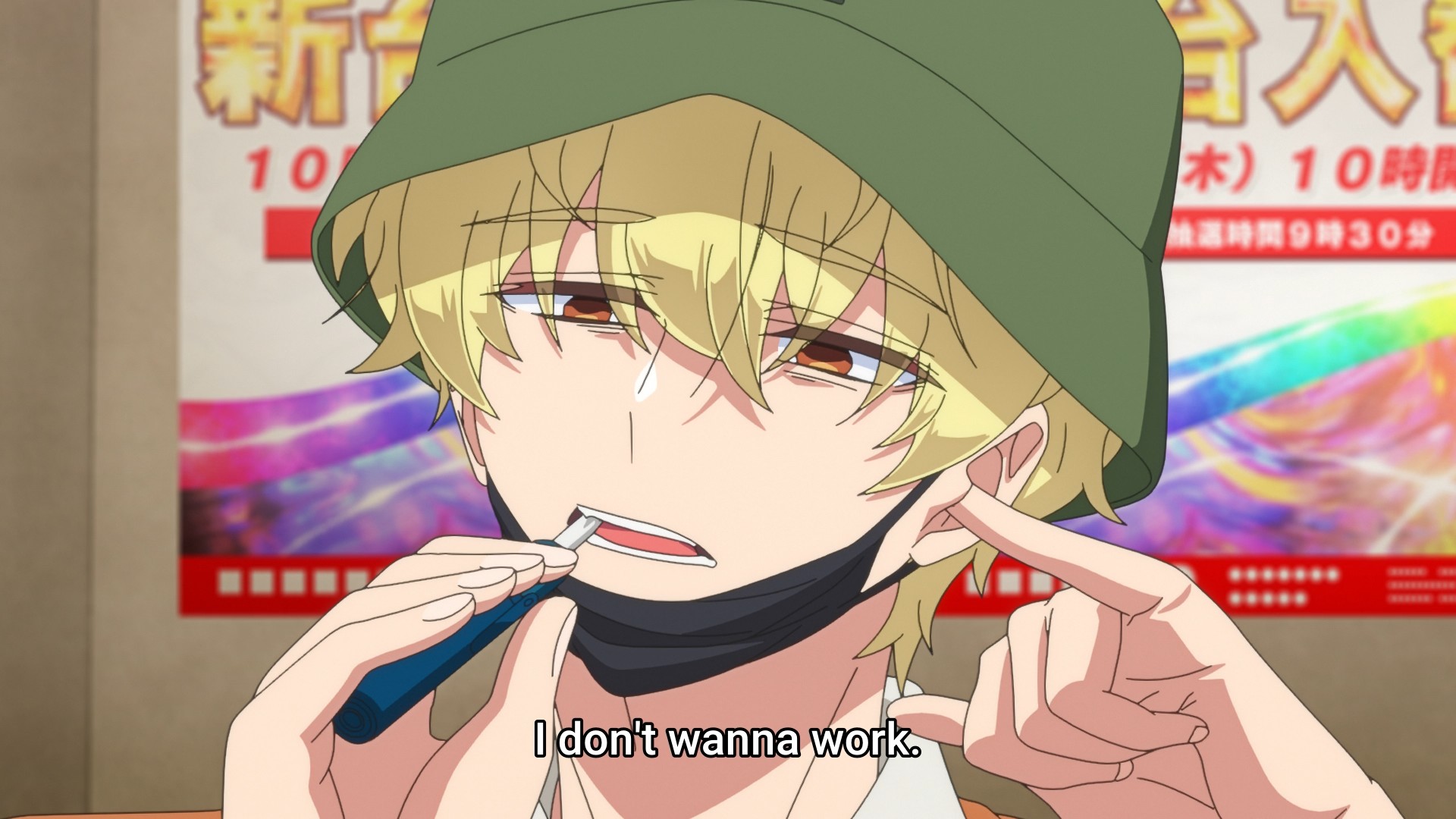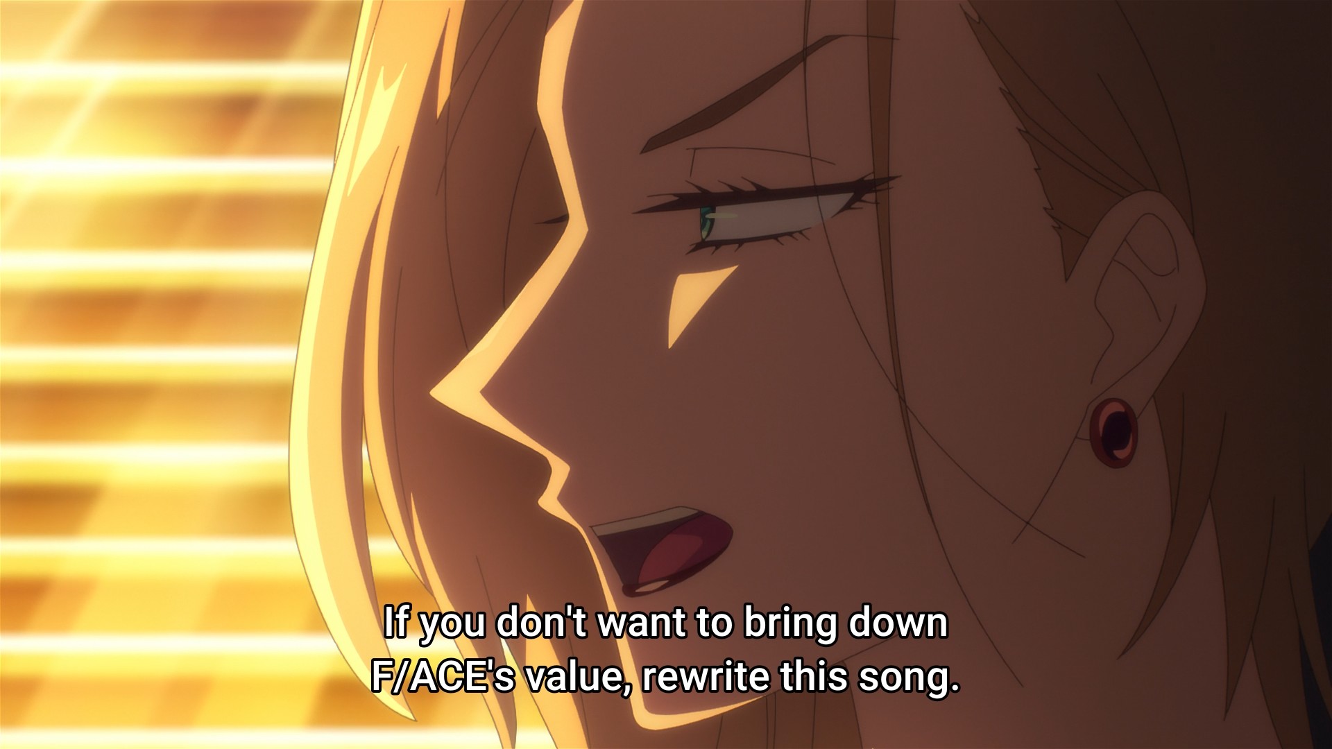 Remember how these boys’ B-sides are just the opposite of what they portray on camera? Sure enough, we cut to Natsuki in his element: a dude who just wants to play pachinko while vaping and picking out his earwax. In public? Gross. Then when Utage and company do finally find and drag him home, he endangers their lives with secondhand smoke. Doubly gross. Who the hell wants to be a superfan of that? On the other hand, he has a reasonable take on his songwriting responsibilities. Dude, that’s what I’m saying! Why is the agency behind F/ACE so goddamn cheap? You gotta invest in your product to make money. There’s no way some young guy who doesn’t even want to do the job can write better songs than an actual industry professional who’s been in the game for decades.
