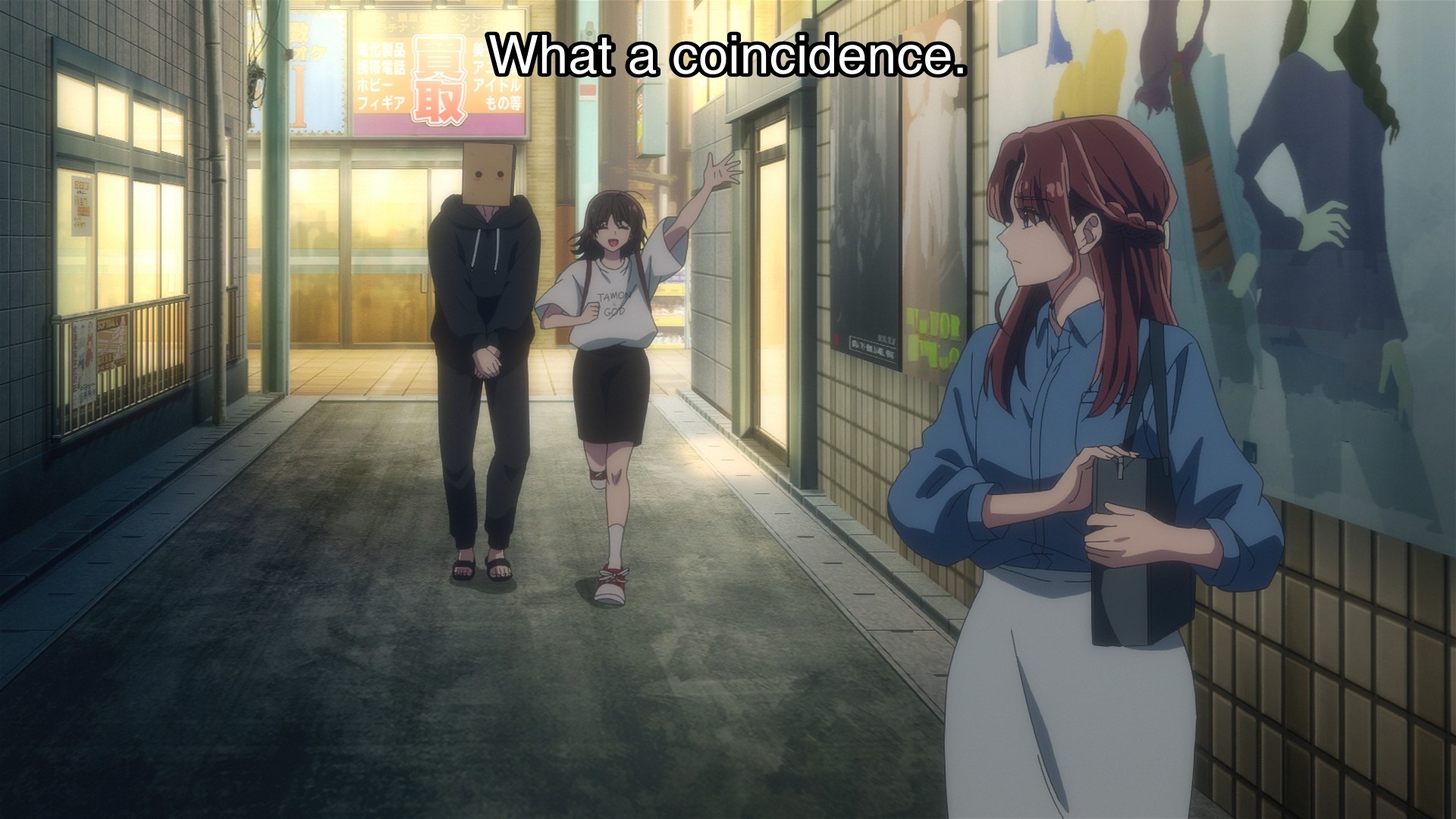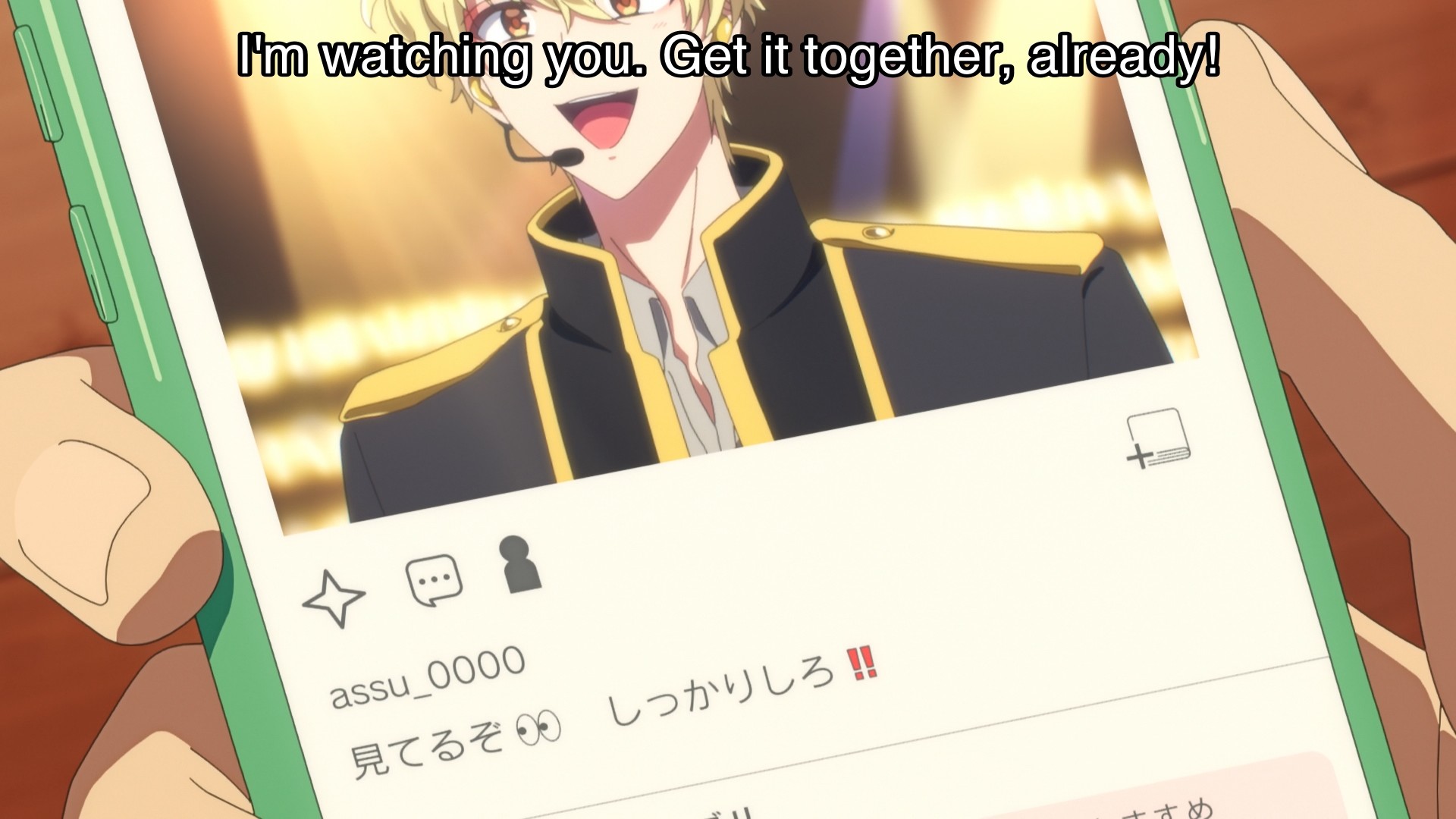 Utage and Tamon want to get Asuka’s side of the story, so they quickly find her wandering around on the streets. It’s that easy to stumble into people you know in Japan. But jokes aside, she’s much like Utage; she reveals that she only pretended to not know Natsuki, i.e. she and her oshi must never interact because they exist in different worlds. Even though she might still have lingering feelings for him, she dares not intrude into his life and potentially ruin his dream. But I don’t think being an idol is his dream. Natsuki just stumbled into this lucrative position through his sheer talent. Tamon also adds that idols are still people, so they have flaws and, yes, real feelings as well. They’re not meant to be put on a pedestal, isolated from everyone they care about. What Tamon’s saying to Asuka is essentially what he wants to say to Utage. Sure, these boys’ careers as idols might fall to pieces if crazy fans knew they were dating someone. But what are they supposed to do? Never ever have a personal life? This simply is not healthy.
