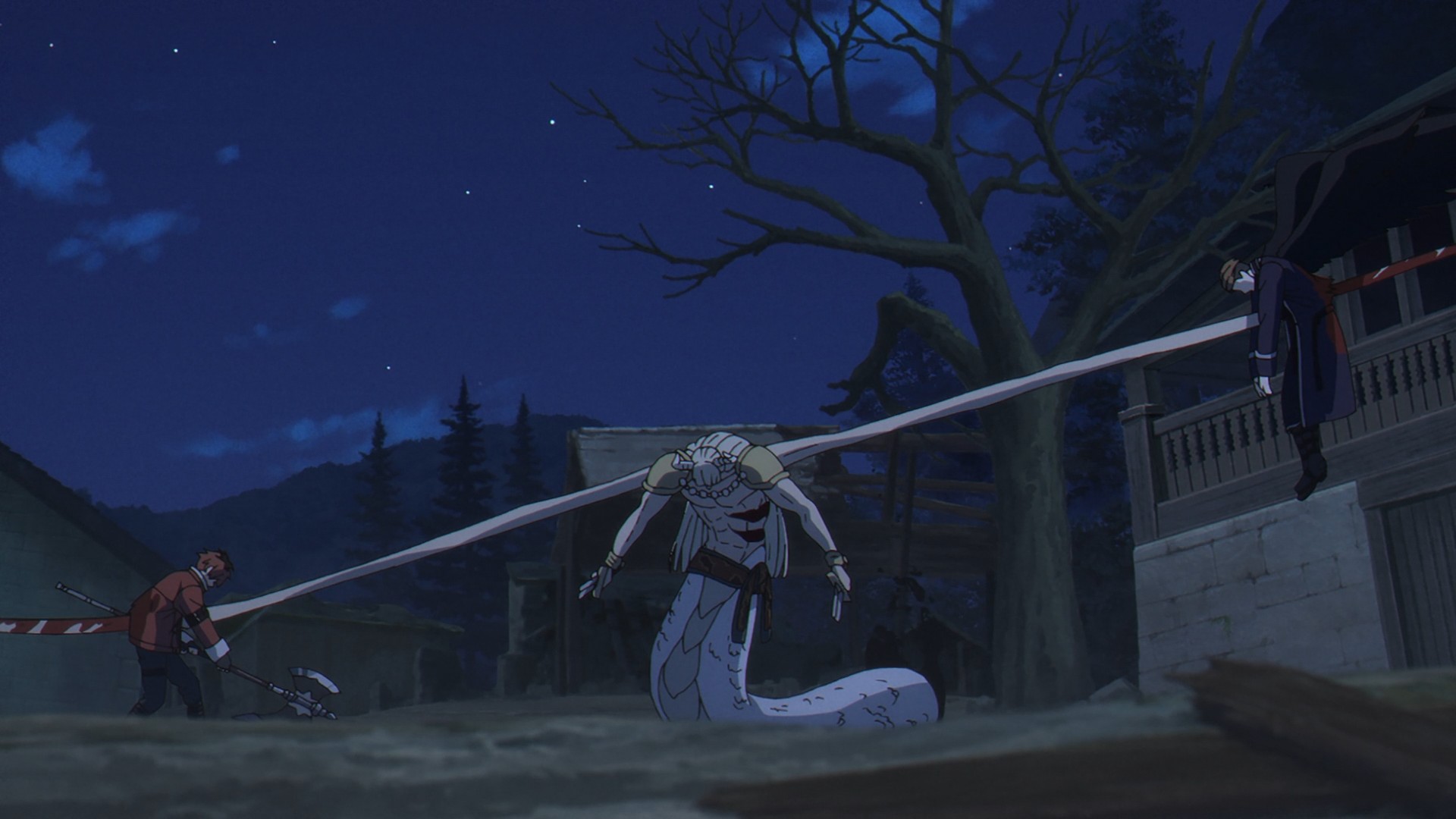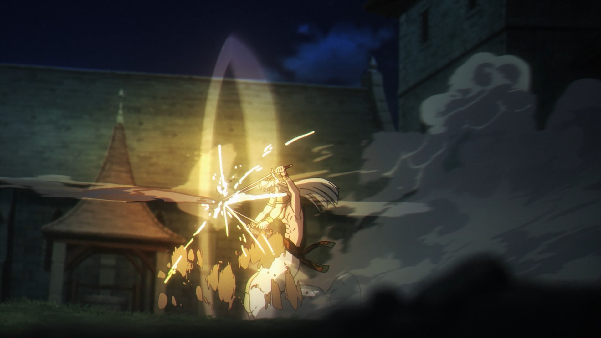 Even with his fancy niello wings, Genau still has to get up close and personal against a demon armed with four swords. Sure, the mage starts the fight off with a few projectiles, but what happened to the rest of his spells? Didn’t he nuke a demon a couple of episodes ago with a ranged attack? Meanwhile, Stark can’t keep up with Revolte, so he falls back on a familiar strategy: taking a direct hit to distract his opponent. In fact, he later invokes the same exact lesson that helped him overcome Linie back in season one. The more things change, the more things stay the same. There’s always a bigger fish out there, though. At some point, he’s going to meet someone who can take him down in a single blow. You can’t meat-tank everything. But I guess in that scenario, he’d probably just run.