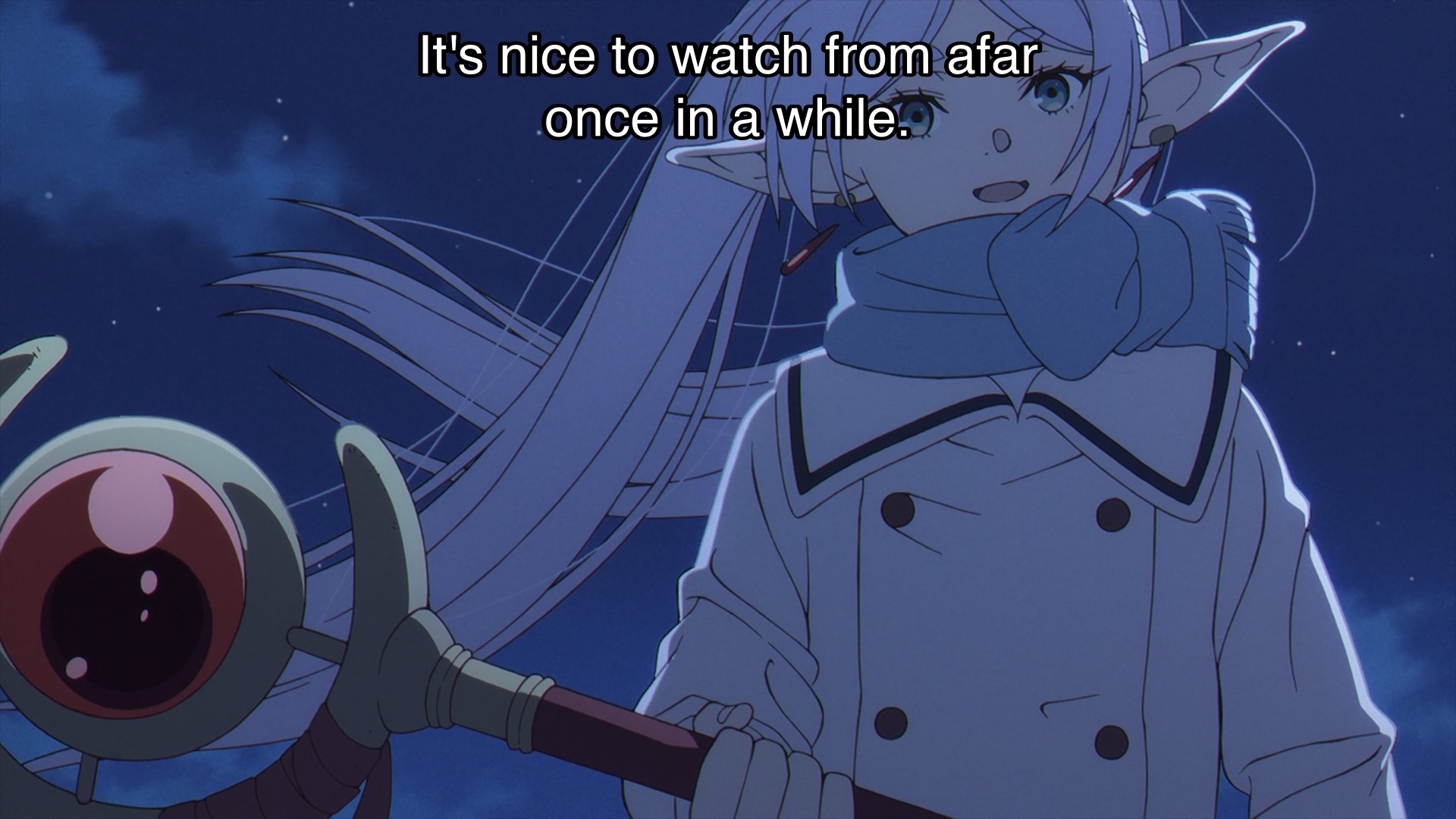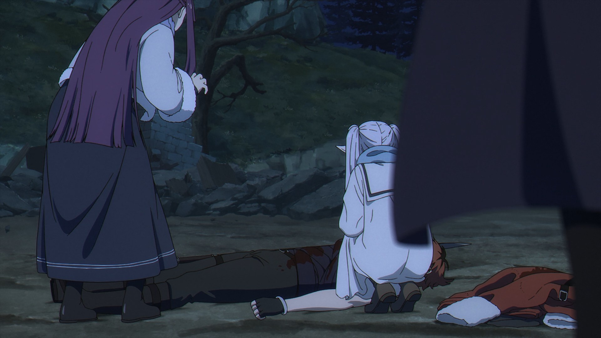 On the other front, it’s life or death for Fern. Meanwhile, Frieren is just casually observing the fight from hundreds of yards away. Sure, she has supreme confidence in her own student. But people slip up. What if Fern needs help? Can Frieren respond quick enough to save Fern’s life? I just think back to her initial reluctance at the start of the series. She insisted that she couldn’t possibly Fern with her because mages-in-training would die all the time. Yeah, maybe if you keep floating this far back! Still, it’s kinda funny how giddy she was in last week’s episode when she realized that these demons had combat experience. I thought she was excited to fight them, but no, she was excited for her student.