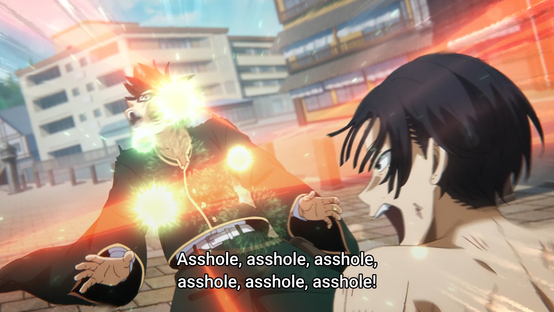 — Back in the present, Kasubata finally admits that he needs to, uh… embrace his punk side to achieve greater powers. And this is all thanks to Enishiro. Welp, so much for redeeming yourself to your mother. I kid, I kid. If he uses his newfound flaming hammer to save people, then whatever. But I’ll never like Kasubata.