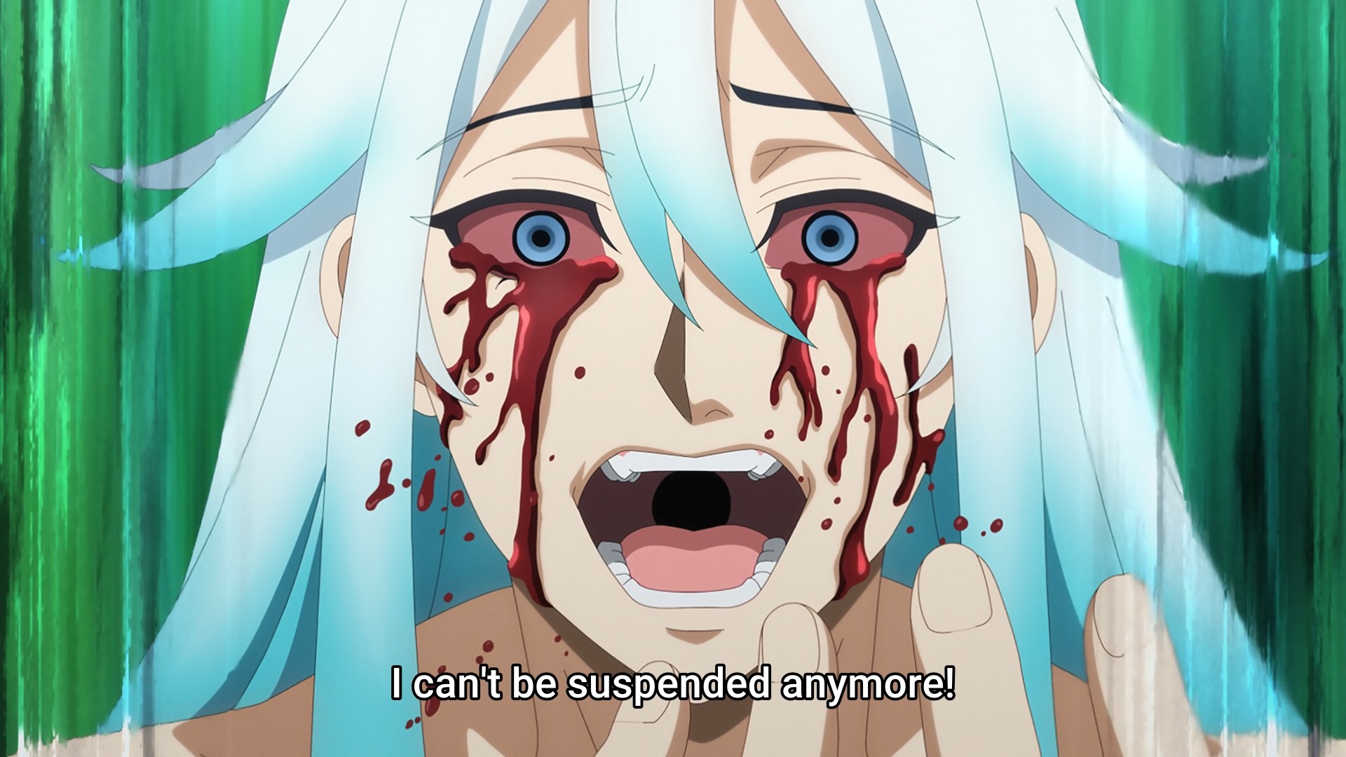 — Naturally, we gotta interrupt the fight for more boring ass backstories. As we already know, Kasubata was a punk on the streets. Hell, this is the primary reason why Wagari despises him so much. Kasubata initially resisted becoming an exorcist, but that all changed when he found out his sickly mom had died. Unlike the rest of his family, she never hated him. All she wanted was for him to be a good person. Well, guess what? Someone filmed Kasubata doing punk things, so at his mother’s funeral, his father blamed him for killing his mother. Kasubata finally relented on the whole exorcism thing, because he wanted to redeem himself.