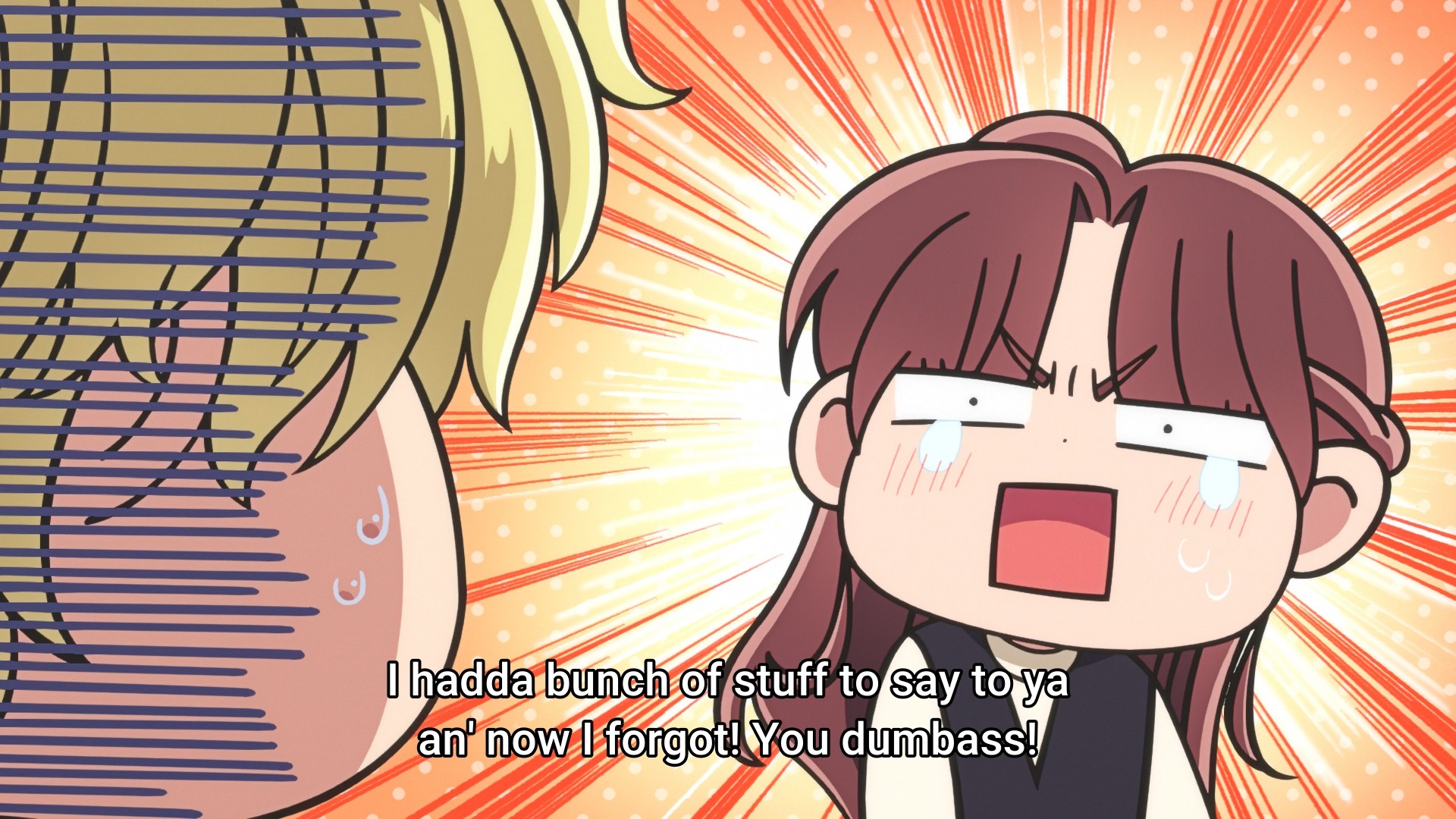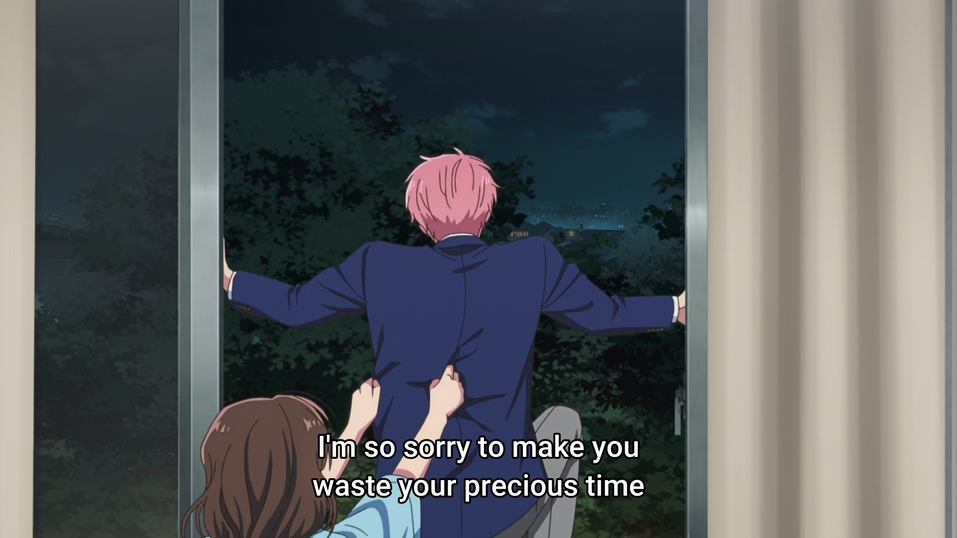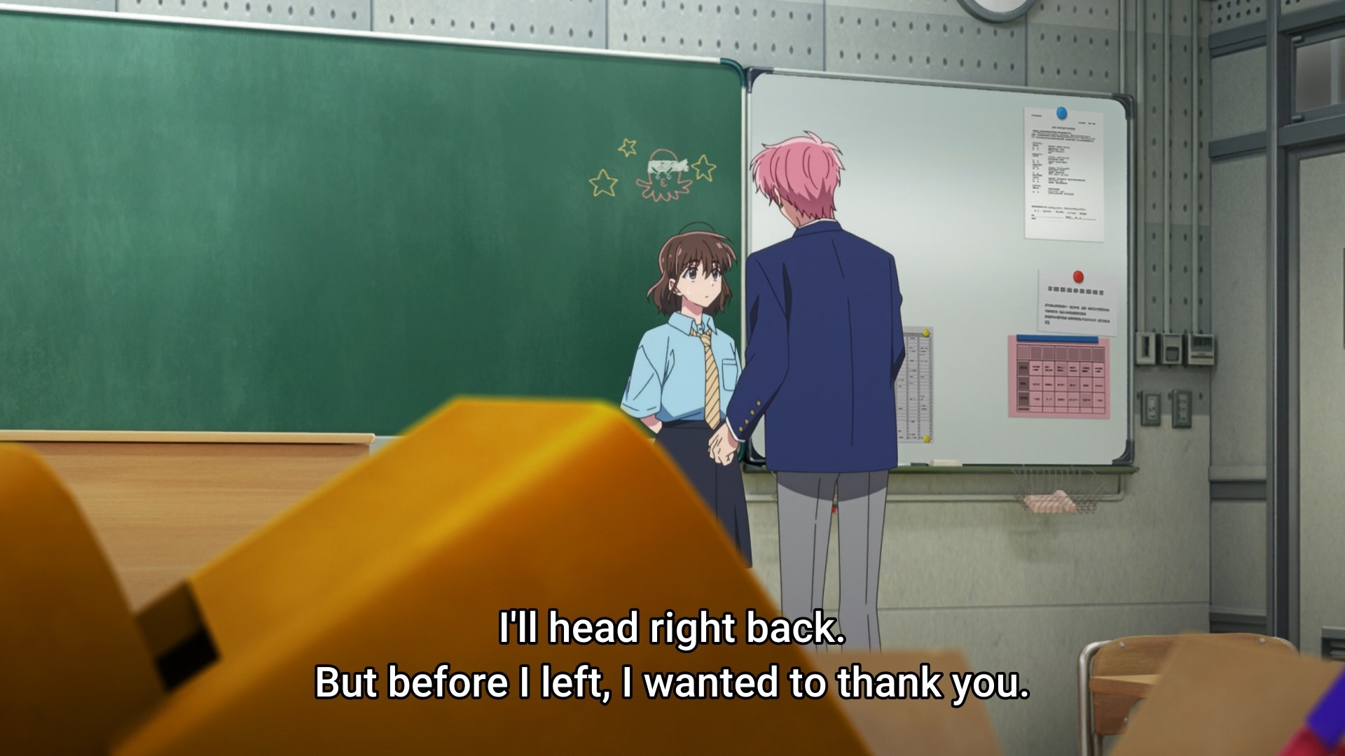 Of course, Tamon wants Utage to confess her explicit feelings, but of course, they get interrupted. Utage then runs off. Sure, she later admits that she loves him in a different way, i.e. not just as a fan, but she does this all to herself with no one around. So big whoop. Nevertheless, that’s the “progress” that they expect you to be satisfied with. Right before the episode ends, the story tries to hit us with an oh-so-big shocker: Utage submits her resignation letter. A bit formal for a part-time housekeeping job, no? I would just tell my manager that I quit. In any case, I can only shrug at our heroine’s latest attempt to distance herself from her idol. Maybe in the next episode, Tamon will perform some grand gesture to show Utage that he needs her. Well, whatever happens, I expect the season finale to hit big ol’ reset button.