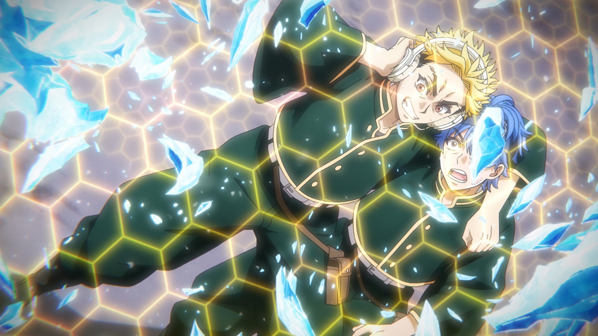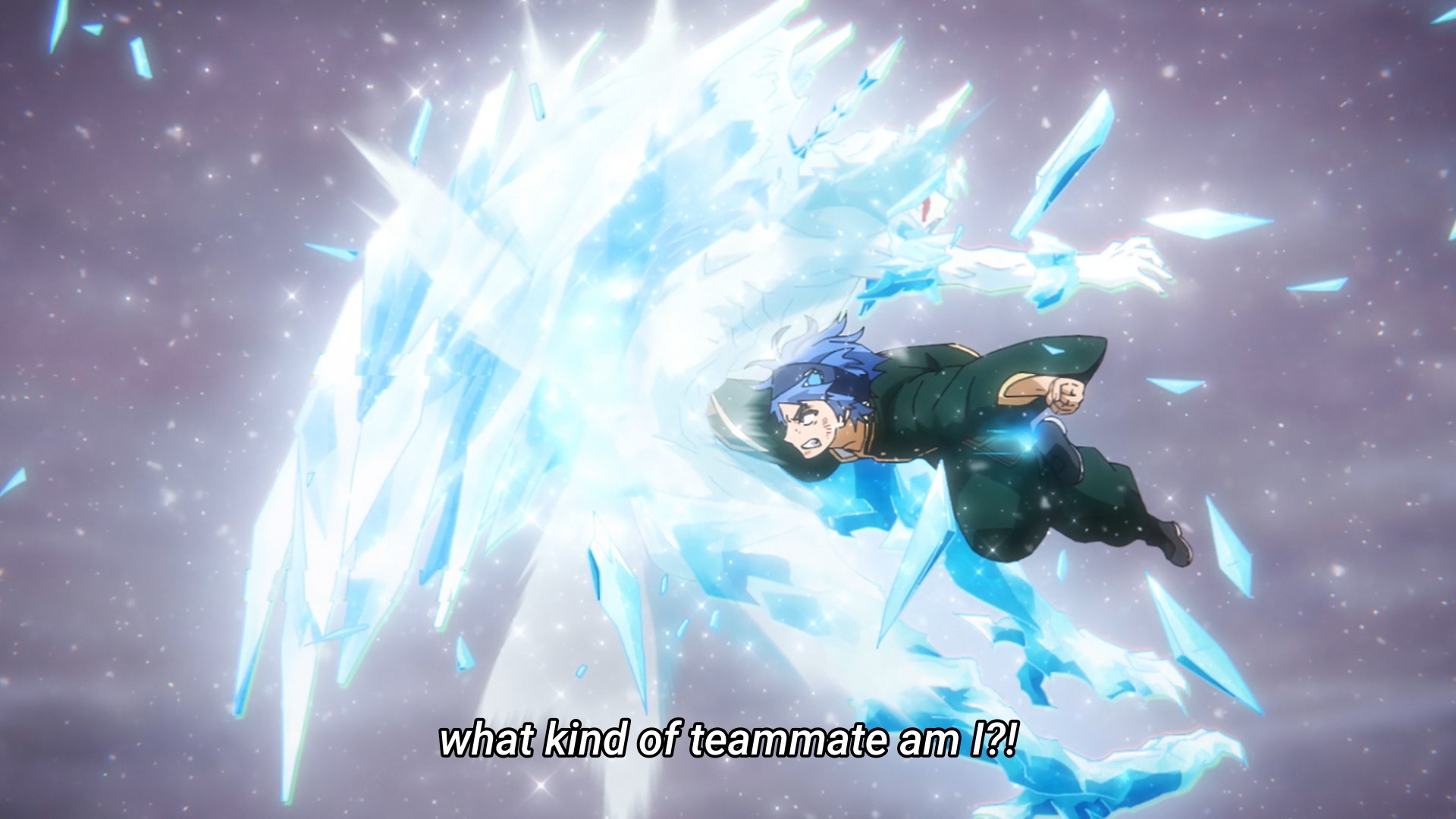 — Again, animating is hard: instead of showing this huge ice… thing shatter upon impact, we’ll just have bits of ice fly out instead. You can infer that the thing broke when it touched the coward’s shield. I forget his name, so he’ll just be the coward from here on out.