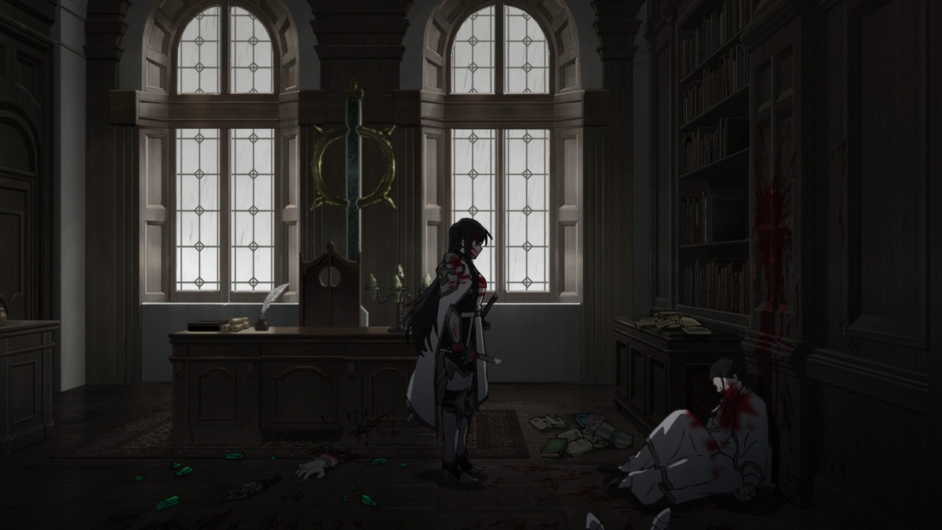 Elsewhere, the captain of the Thirteenth Order has her worst fears confirmed by Frenci: her uncle is a filthy coexister. As a result, she tries to have him arrested, ’cause she probably still assumes that this is a just world. She assumes that she can convince him to atone. To put it another way, this confrontation is the real climax of the show. After all, I would love to know what deeply motivates folks like Marlen to betray their own kind. Sure, you can toss out one-word concepts like greed, but I expect a compelling conversation — a battle of opposing worldviews, if you will — between a man of the cloth and the niece who once looked up to him as if he had been her own father. And at first, we kinda get that…? Like Shiji Bau, he claims to be doing all of this in order to the protect the people he cares about, including his own congregation. But immediately, alarm bells should go off, because what sort of religion are you preaching if you’re willing to abandon “complete strangers?” That certainly doesn’t sound like any religion I want to follow. As a result, Marlen’s next move doesn’t surprise me: he immediately tries to murder his own family, which calls into question whom exactly he actually cares about. But that’s how it always is with the hopelessly immoral.