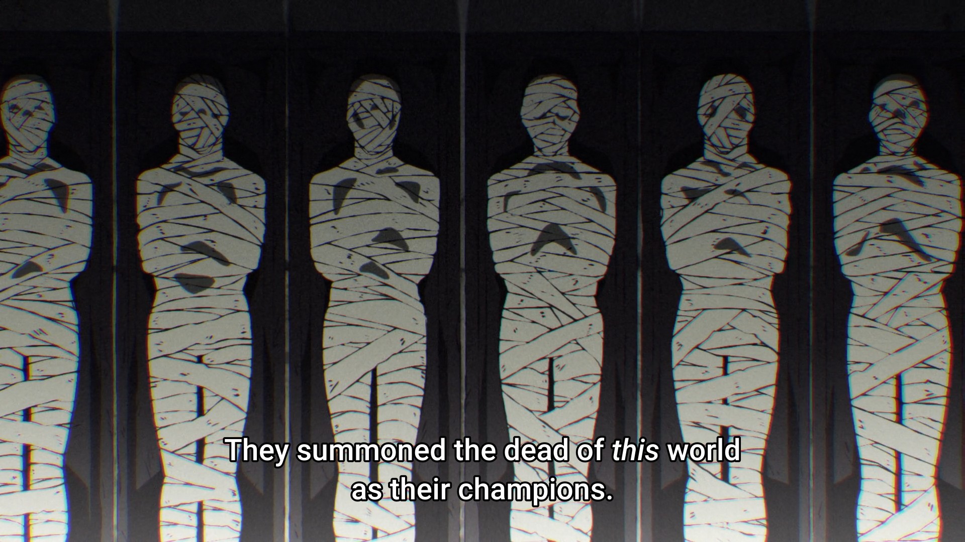 — So who wants an info dump before the season finale comes to an end? Oooh, I do, I do! Initially, the powers that be tried to isekai people from other worlds, but naturally, folks don’t want to be plucked from their homes to fight for a world they know jack fucking shit about. So instead, the powers that be started summoning from the dead instead. Morbid.